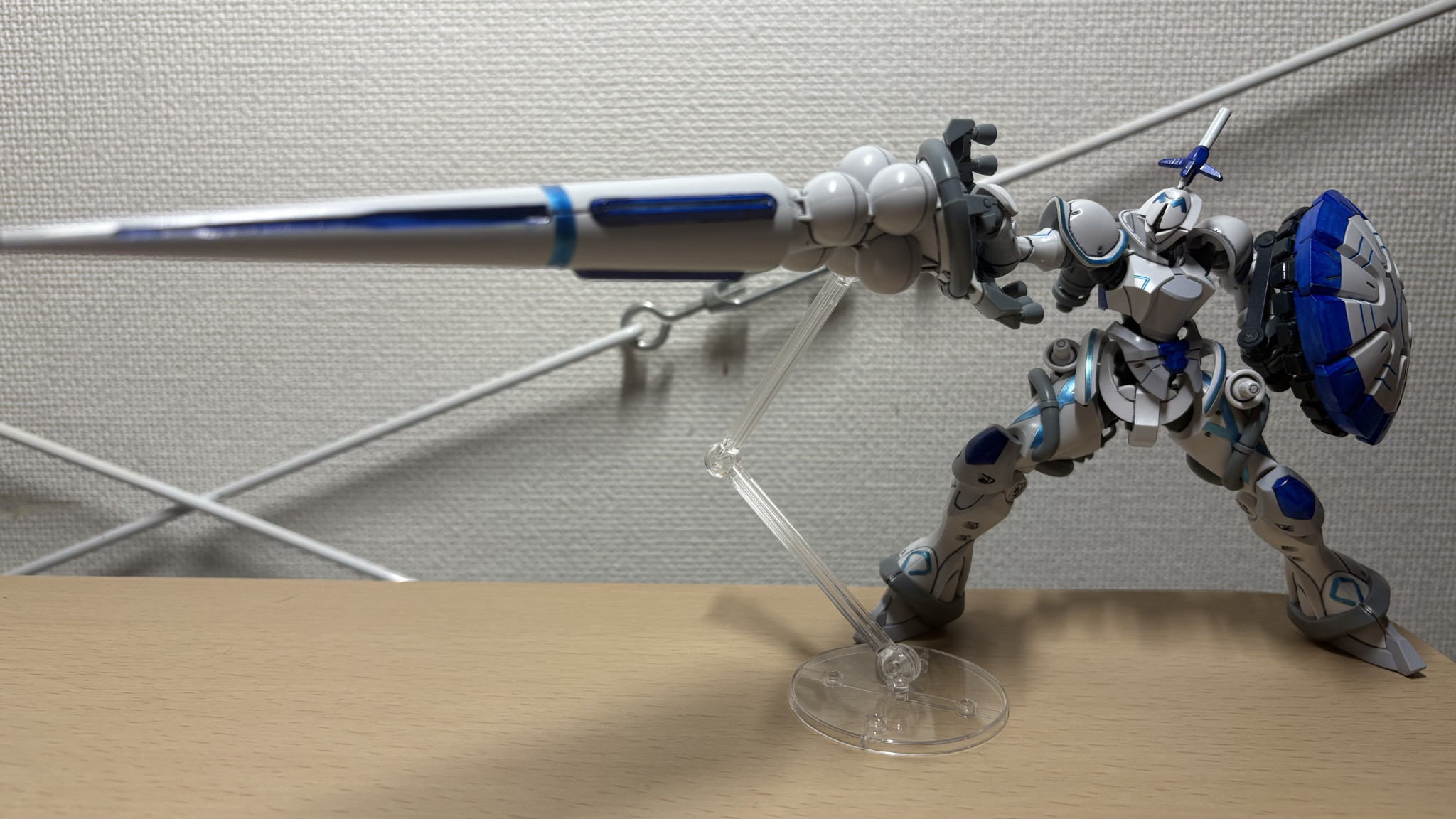 右手にランス、左手にミサイル内蔵シールド、アタマに刺突武器の射出機能…ギアスのパーシヴァルみたいだなって後から思いました。