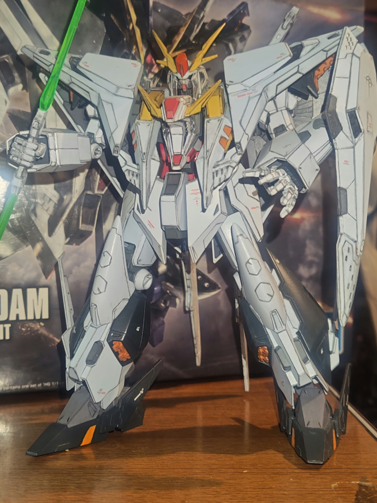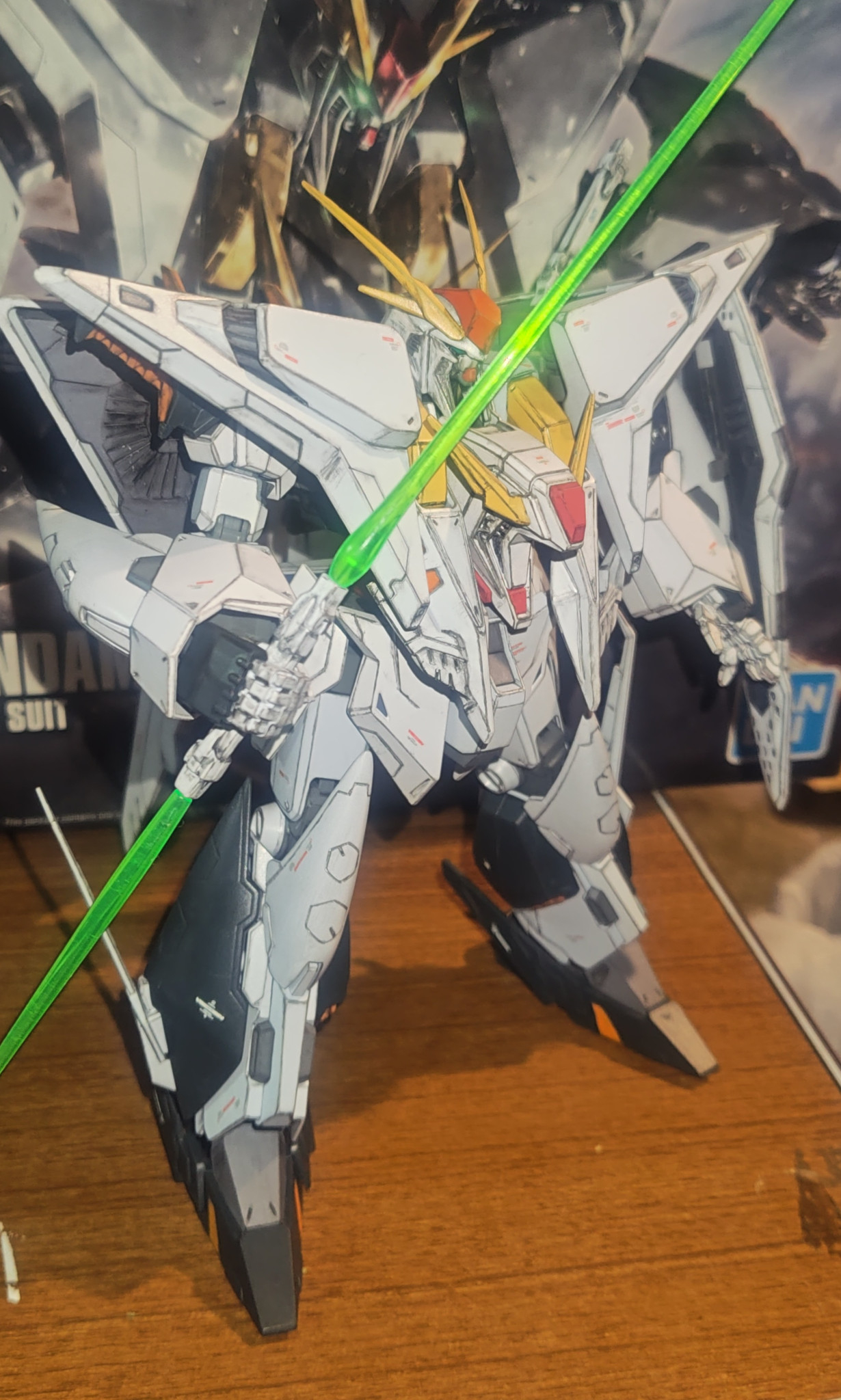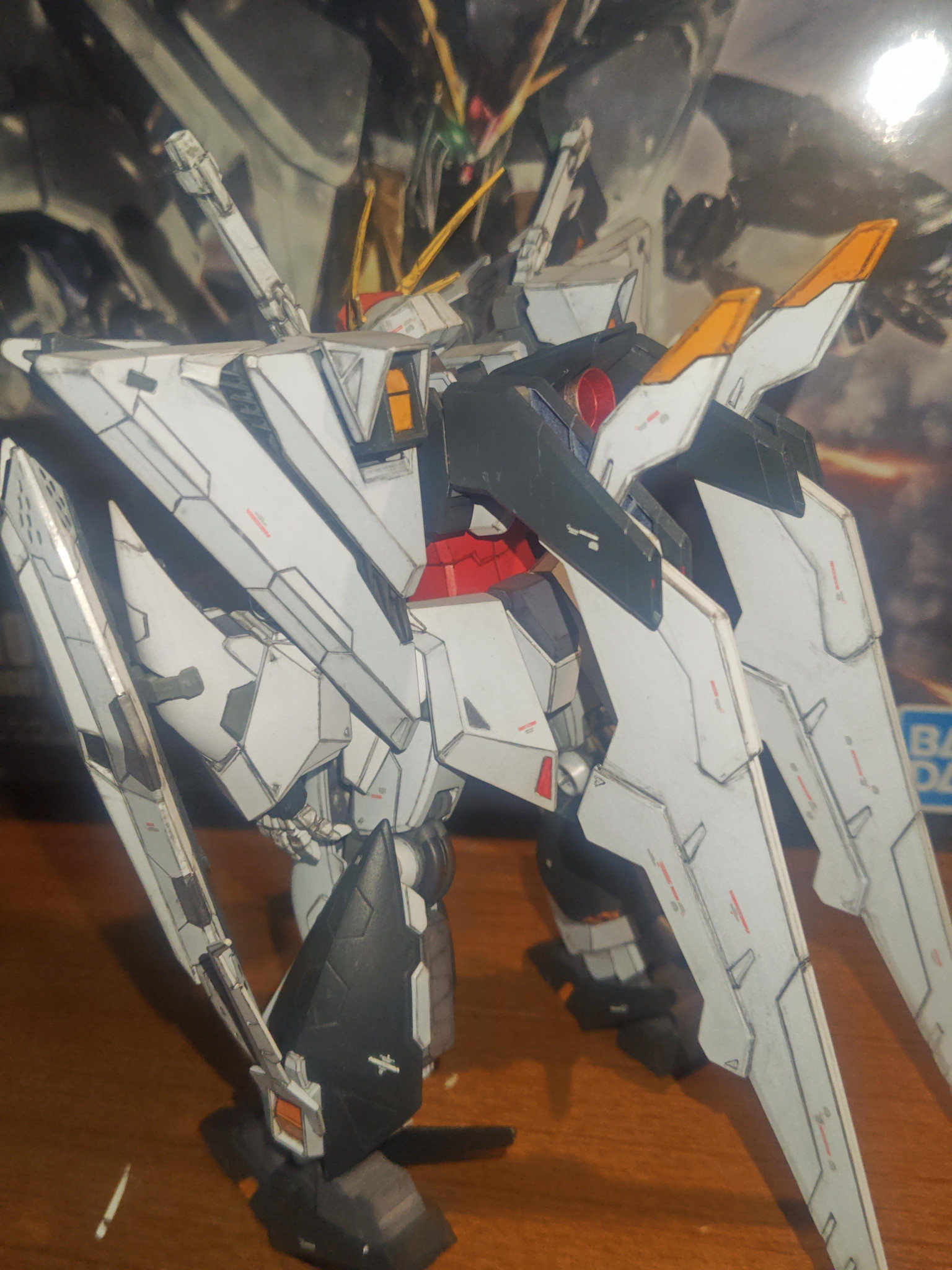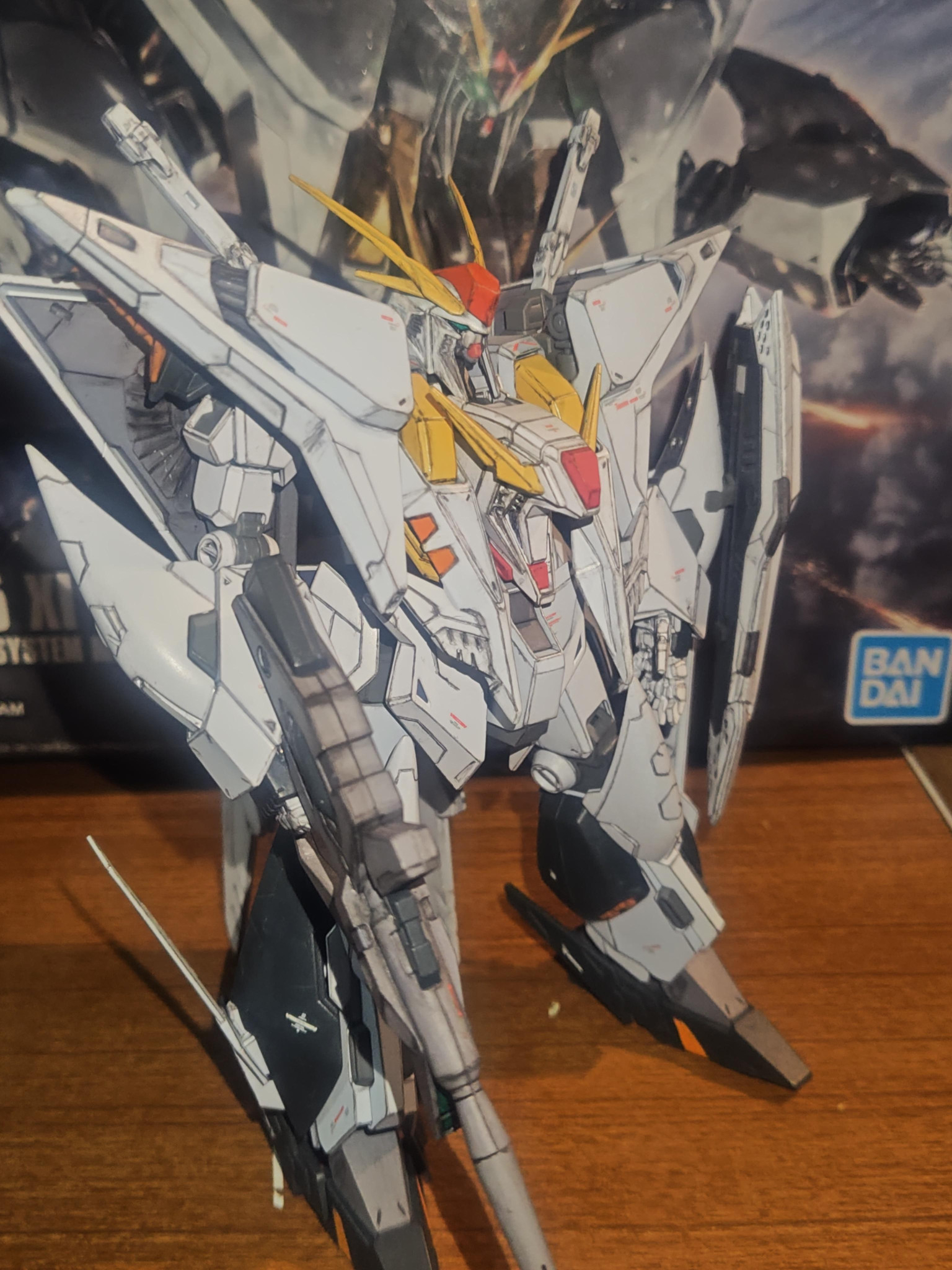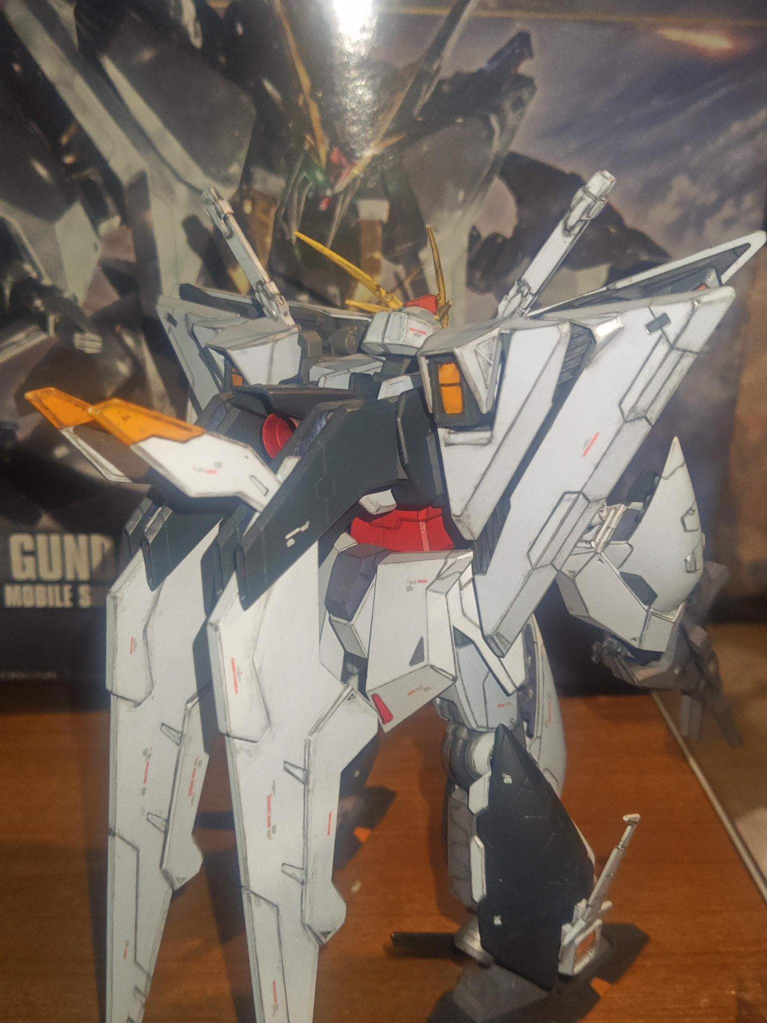 そして、別売りの閃光のハサウェイ用の汎用水転写デカールを貼って、つや消しトップコートを吹きました😊