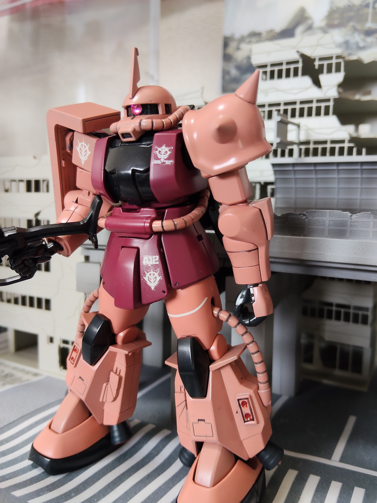 新人メカニック HG 2026.01/15更新 シャア専用高機動型ザクII 216 91 いいねしたモデラー(91) 0 0 作品を共有 新春一発目はやっぱりシャア専用 去年塗装したっきり全然手をつけてなかったシャア専用高機動型ザクIIです! ジョニーライデンのキットの塗り替えで製作しました。結構塗装の間が空いているのでこれから勘を取り戻していきます コメント コメントをして応援しよう コメントにはログインが必要です 新人メカニック 特撮SF大好き!!ひっそりと素組みでガンプラを作っていることが多いです。 一番初めに作ったガンプラは、小学生の時に作ったHGのガンダムデスサイズです。 小五でMGのサザビーを買って貰ってからは地道にプラモを作ることを続けてきました。 基本的にジオニズムな傾向が強いので、モノアイ系(ジオンMS系譜...ジオンだけとは言ってない)の製作が多いです。 塗装を始めたのは数年前からで、頻度も少なくまだまだ練習あるのみの腕前ですがよろしくお願いします。 視聴したロボットアニメ 機動戦士ガンダム 機動戦士Zガンダム 逆襲のシャア ガンダムビルドファイターズ ガンダムビルドファイターズトライ 鉄血のオルフェンズ コードギアス 復讐のルルーシュ 天元突破グレンラガン ダーリン・イン・ザ・フランキス 異世界の聖騎士物語 マクロスF アルドノア・ゼロ 交響詩篇エウレカセブン SSSS.グリッドマン 機動警察パトレイバー フルメタルパニック トランスフォーマー ロストエイジ 新人メカニックさんがお薦めする作品 R-ジャジャ Twilight AXIS ver ザクⅠ THE ORIGIN モビルワーカー ランバ・ラル専用機 THE ORIGIN 4 ザクⅡA型 旧ザクの面影を残すザクⅡの最初期型です。丸形のアーマーを旧ザ… 5 ジョニー・ライデン専用ザクⅡ 前回投稿のシン・マツナガ ザクと同様に最初期にジョニー・ライ… 4 シン・マツナガ専用ザクII シン・マツナガの最初期の機体を再現してみました。頭部と肩のみ… 4 ガンダム ジオン鹵獲機 初めてガンダムの塗装をしました。 最新のHGキットを使ったの… 新人メカニックさんのページ この作品をお薦め作品に設定する Please login to update your profile! Please login to update your profile! Please login to update your profile! Please login to update your profile!