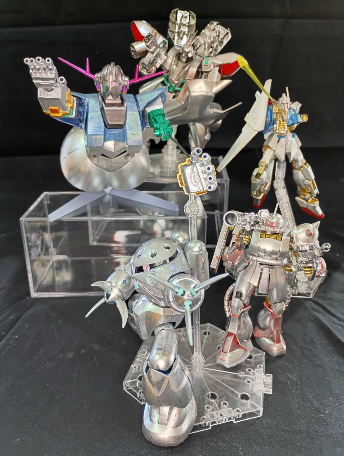 ジオングと百式のボディの青が、銀で引き立って素敵です😊