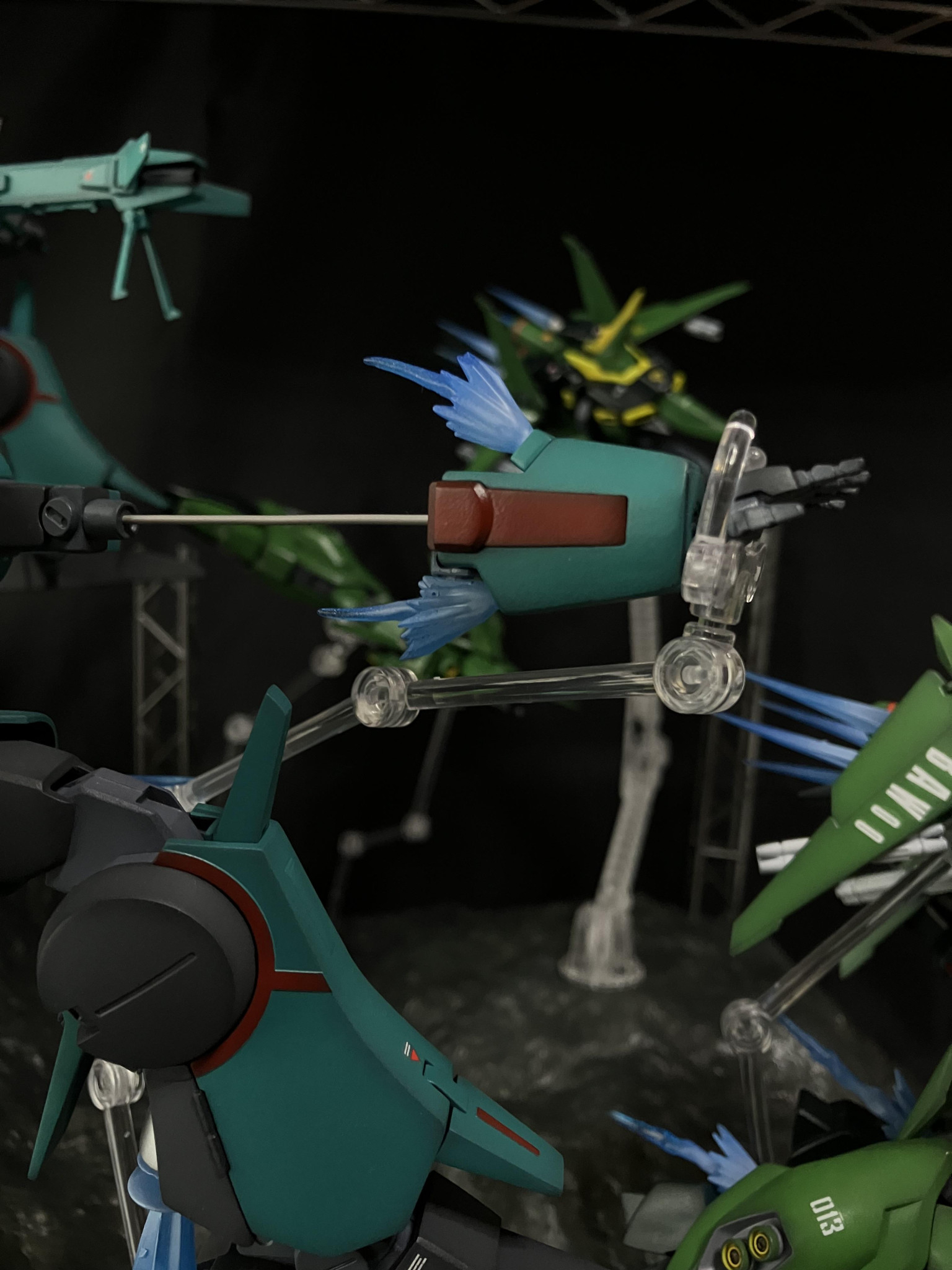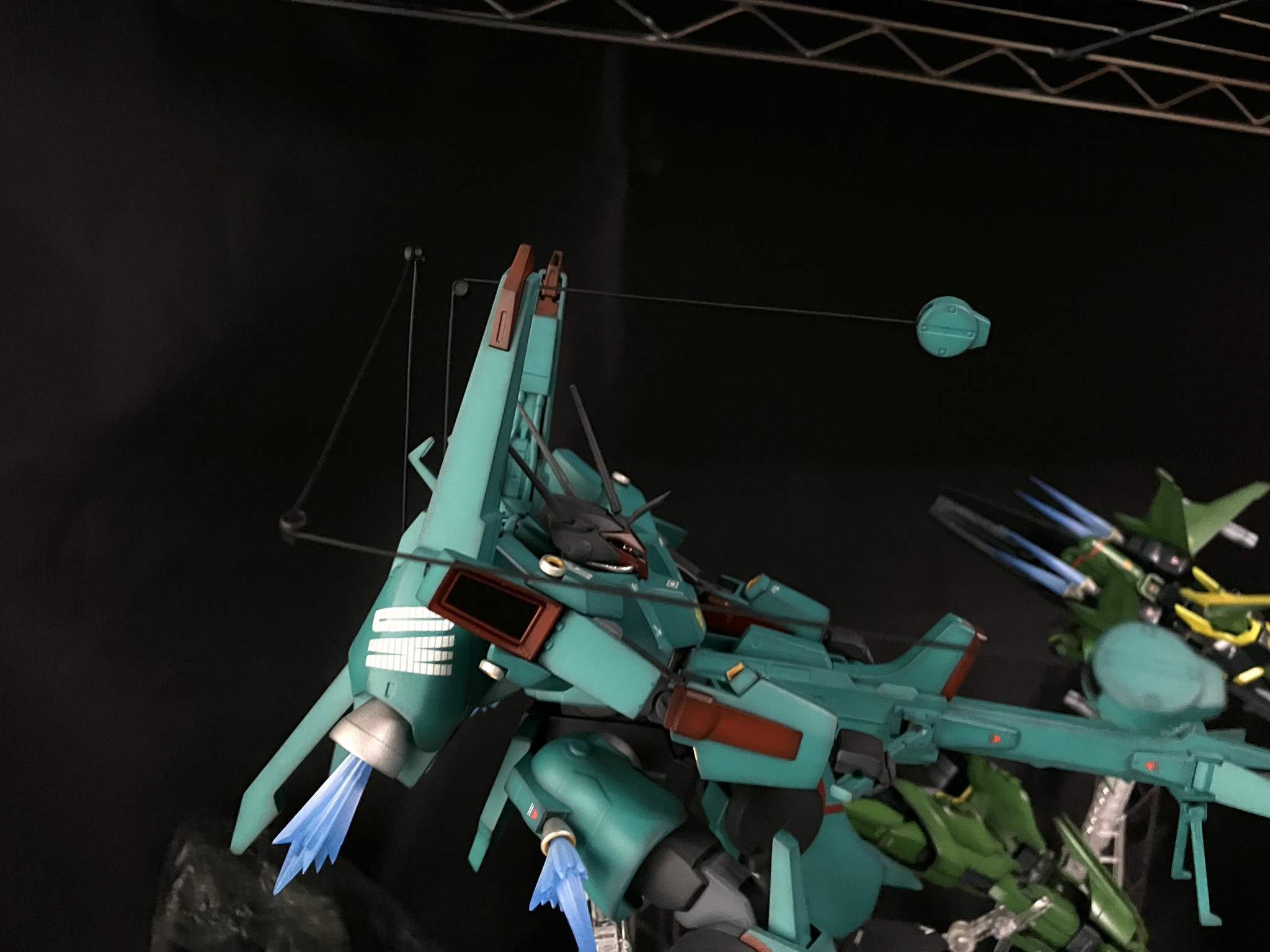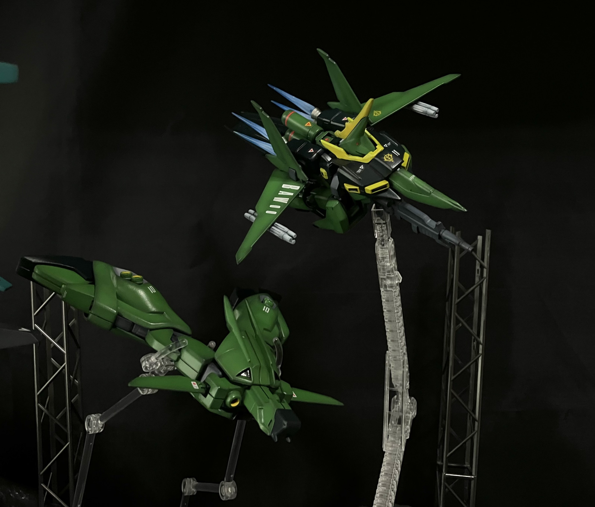 奥の機体は丸モールドパーツを貼り合わせてリレーインコムを作り、インコムの射出状態を再現しました