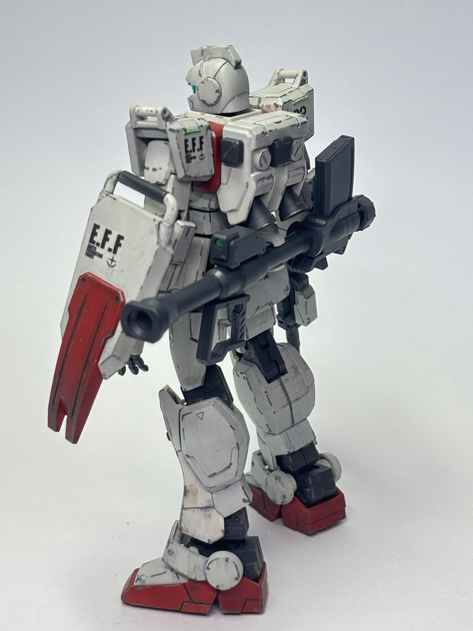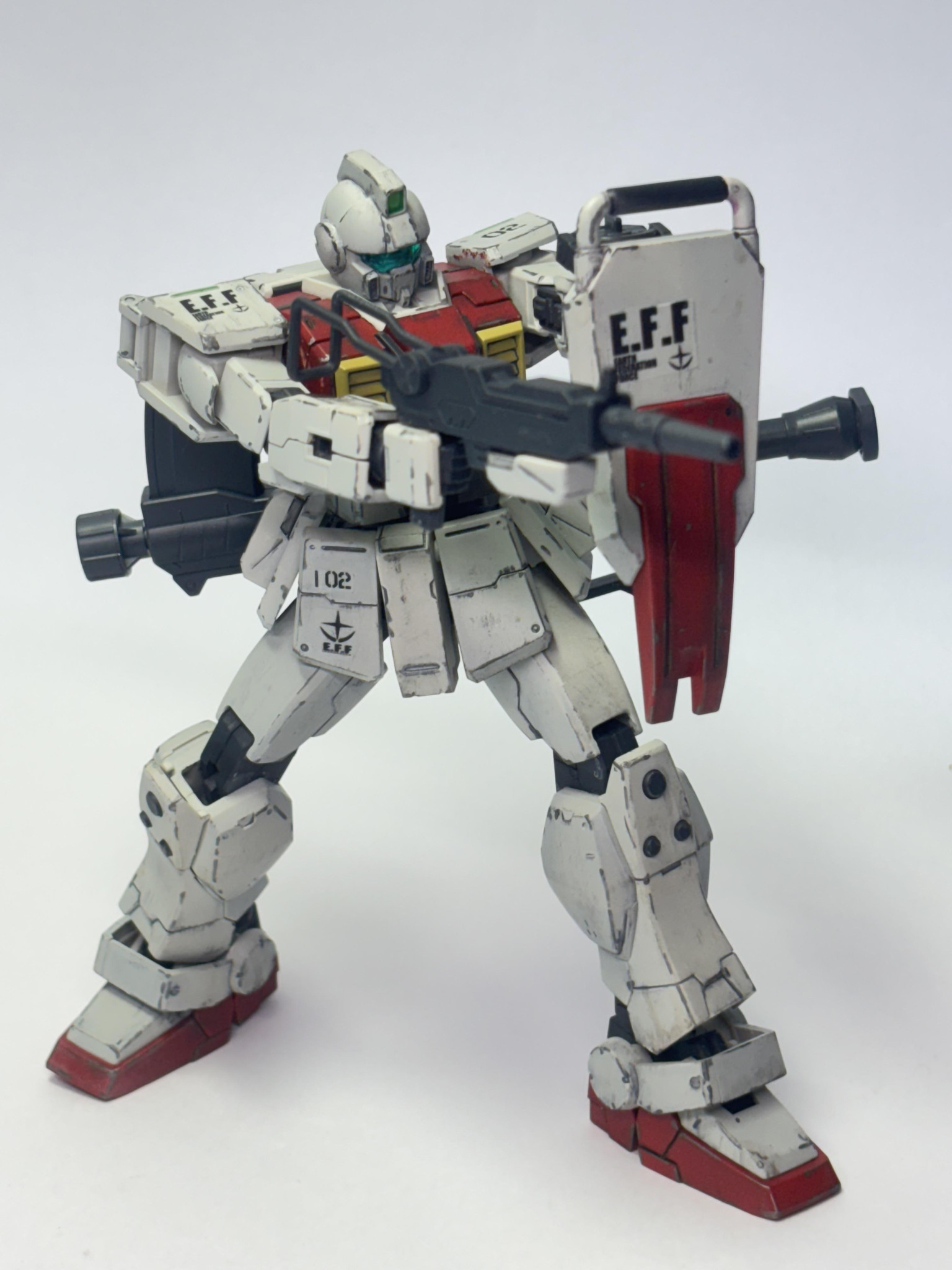 小説ではブルーと初めて対峙する際の搭乗機は、白い陸戦型ジムの2番機という描写がありましたのでそれを再現しました。白以外は素ジムっぽい色にしました。