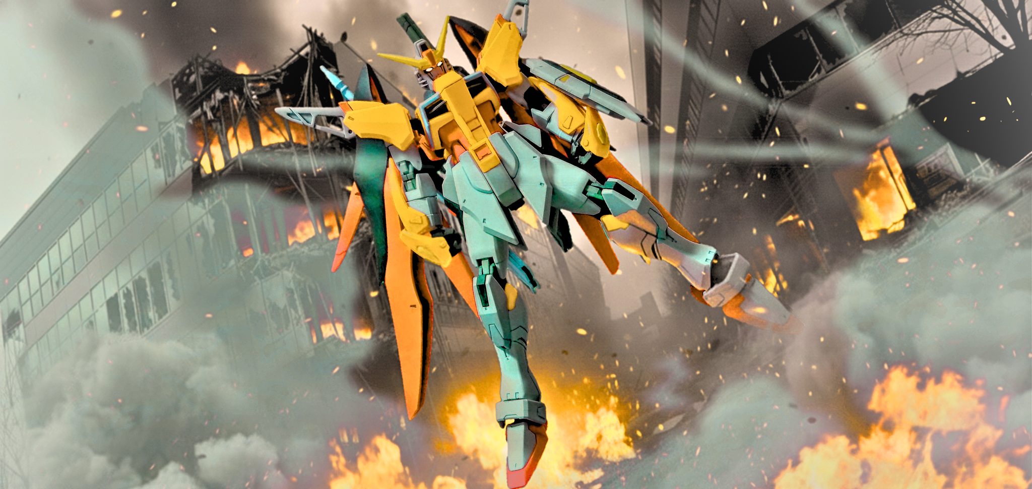 背部のウイングから、光の翼が展開される。その色は、周囲を焼き尽くす炎よりもさらに鮮烈な、命の輝きを放つオレンジ色だった。ハイネは機体を急加速させ、炎上する廃墟を後にする。