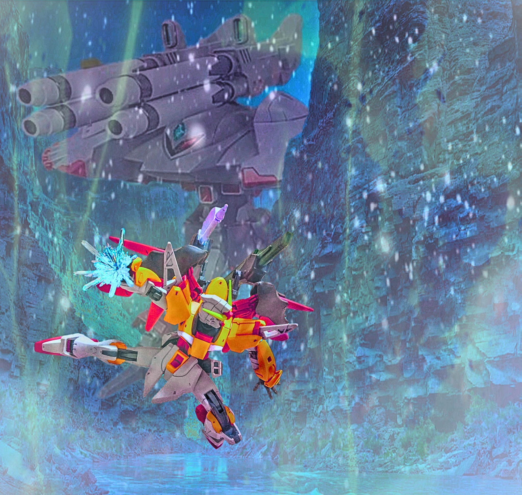 土砂が雪のように降り注ぐ中、オレンジ色の機体は一筋の閃光となって敵の懐を駆け抜けた。