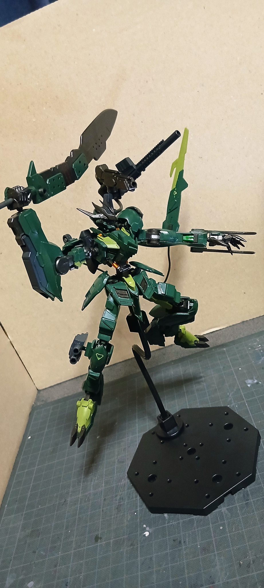横から後ろから狙い打ちできます😼あと今回のカラーリングですがミリタリー要素も入れたかったのでグフリアルタイプカラーっぽくしてみました。カラーレシピは主に、