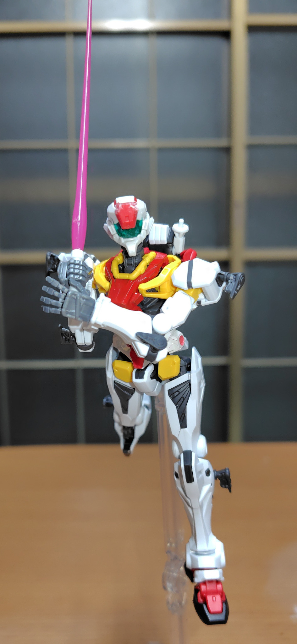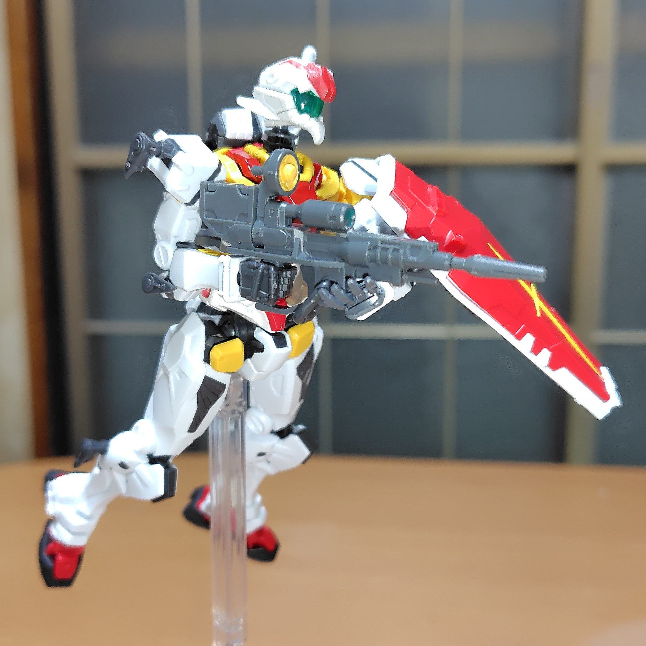 ビームライフル構えての巡航形態。フォアグリップ無いが平手付属だから銃身下部に添えて。