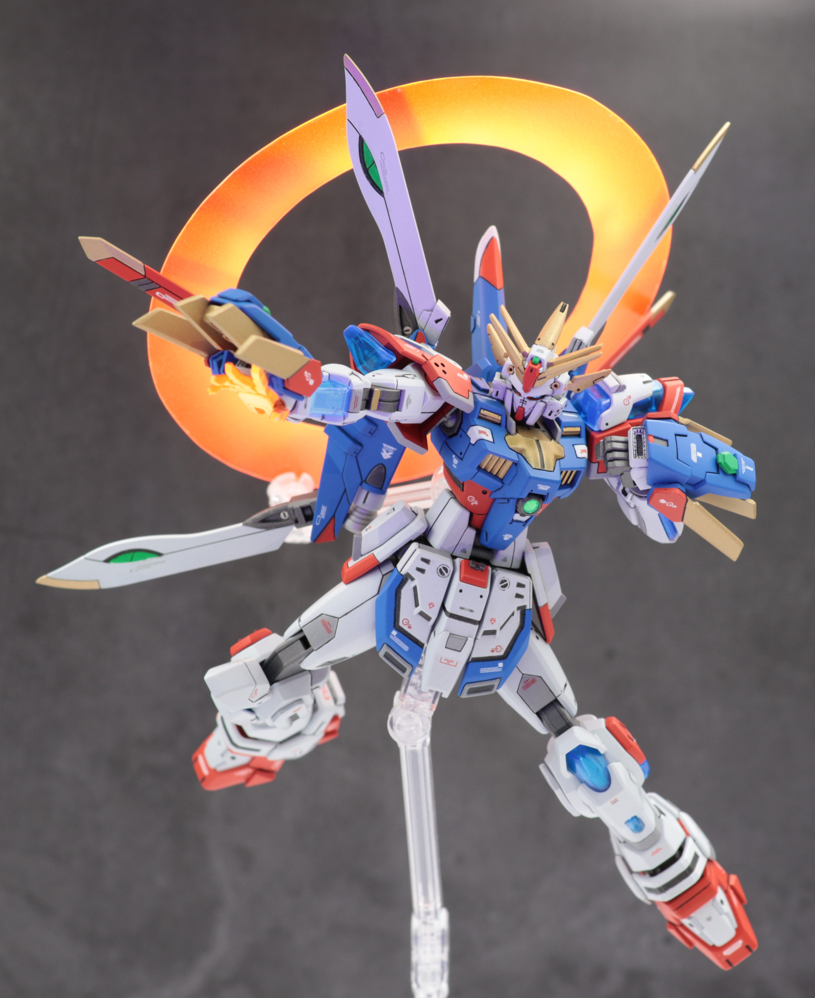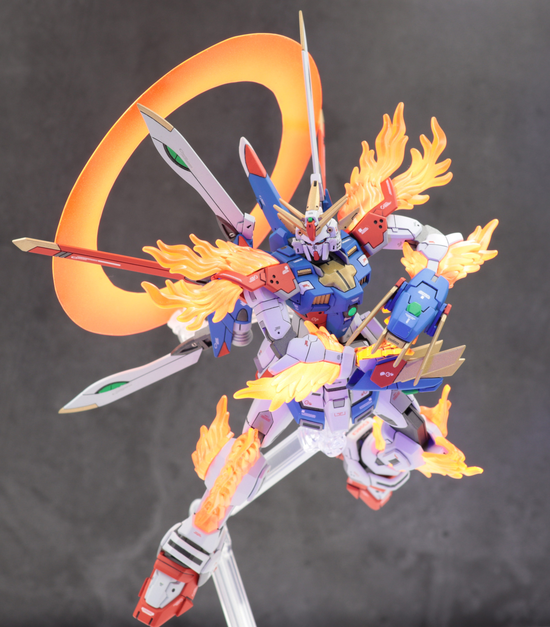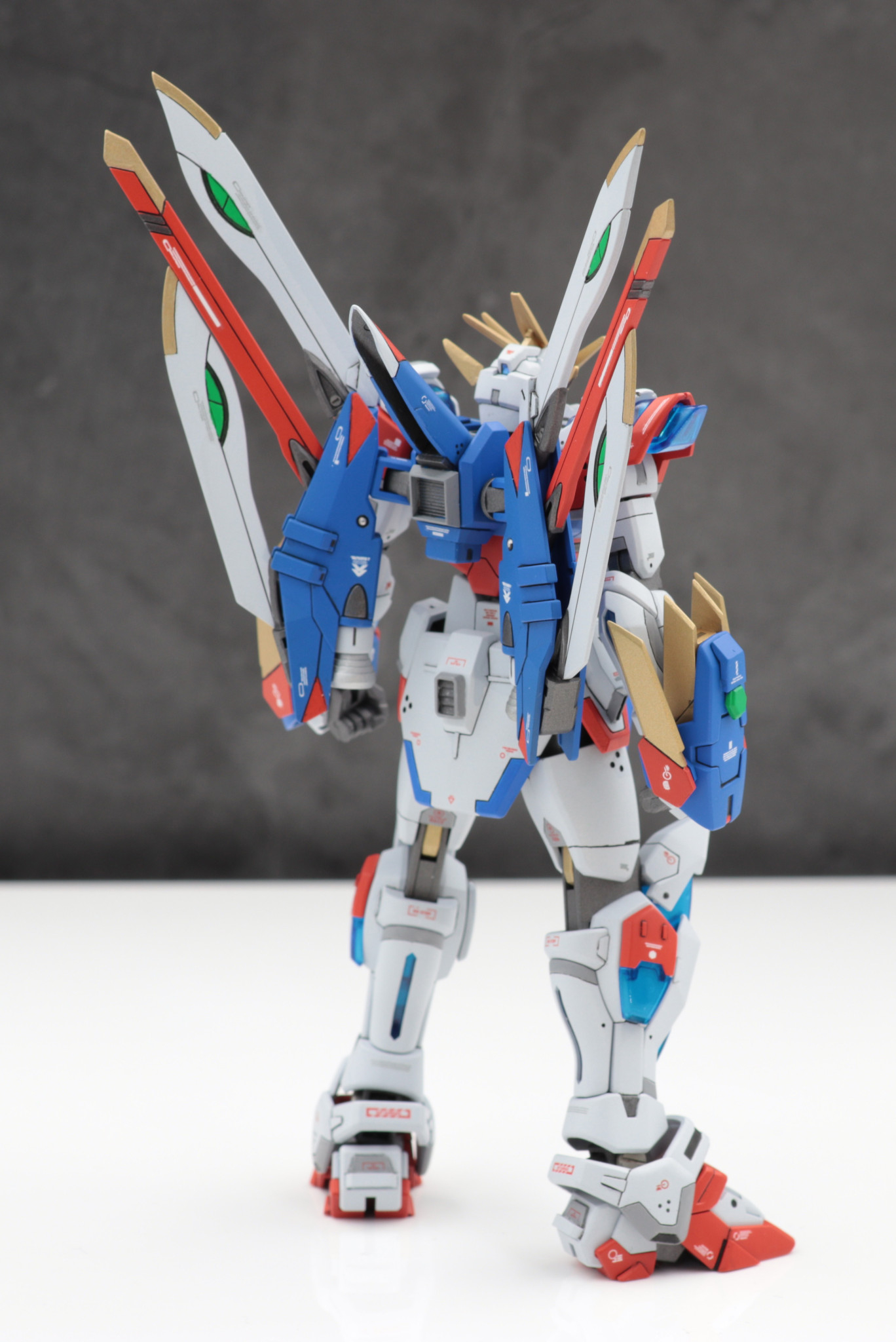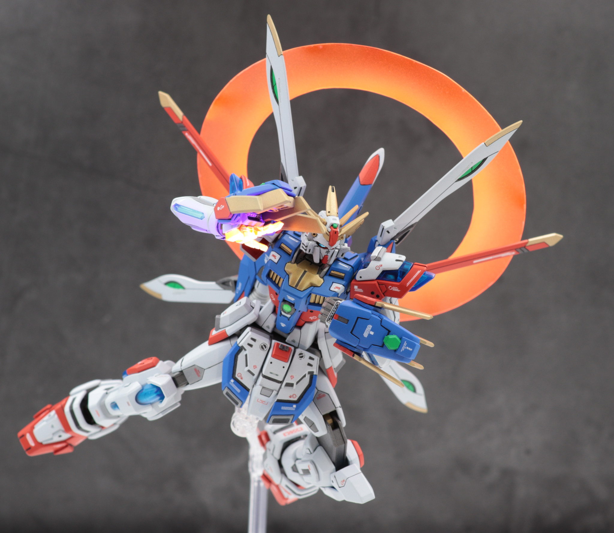 バックパックはフリーダムガンダムカスタムキット(フレイムフェーダー)を使用しゴッドガンダム風に見立てました。