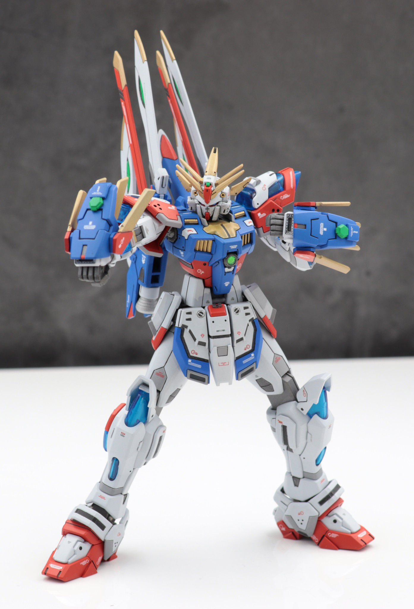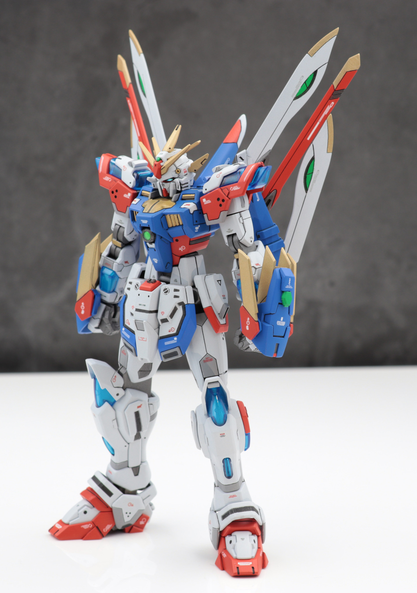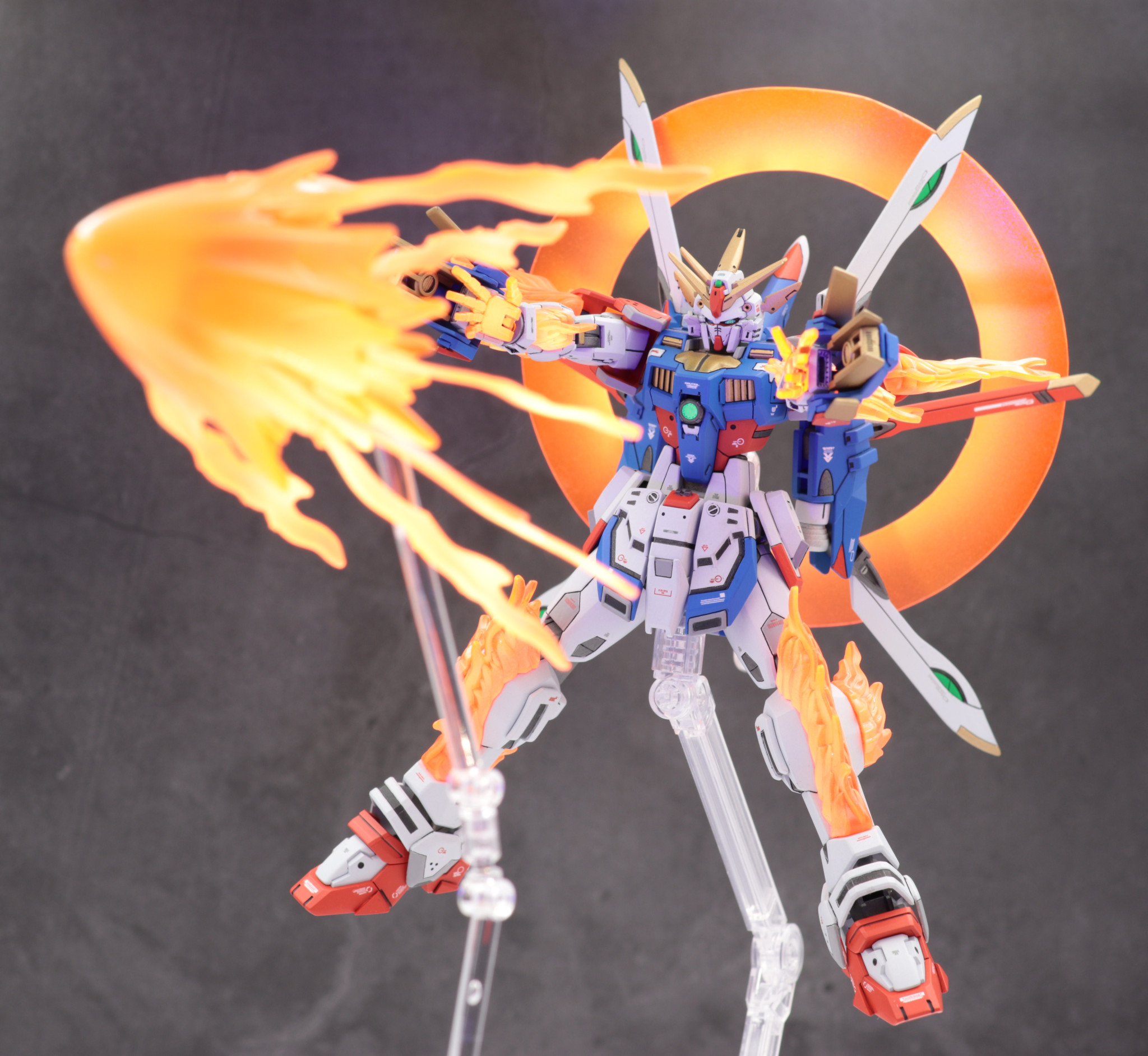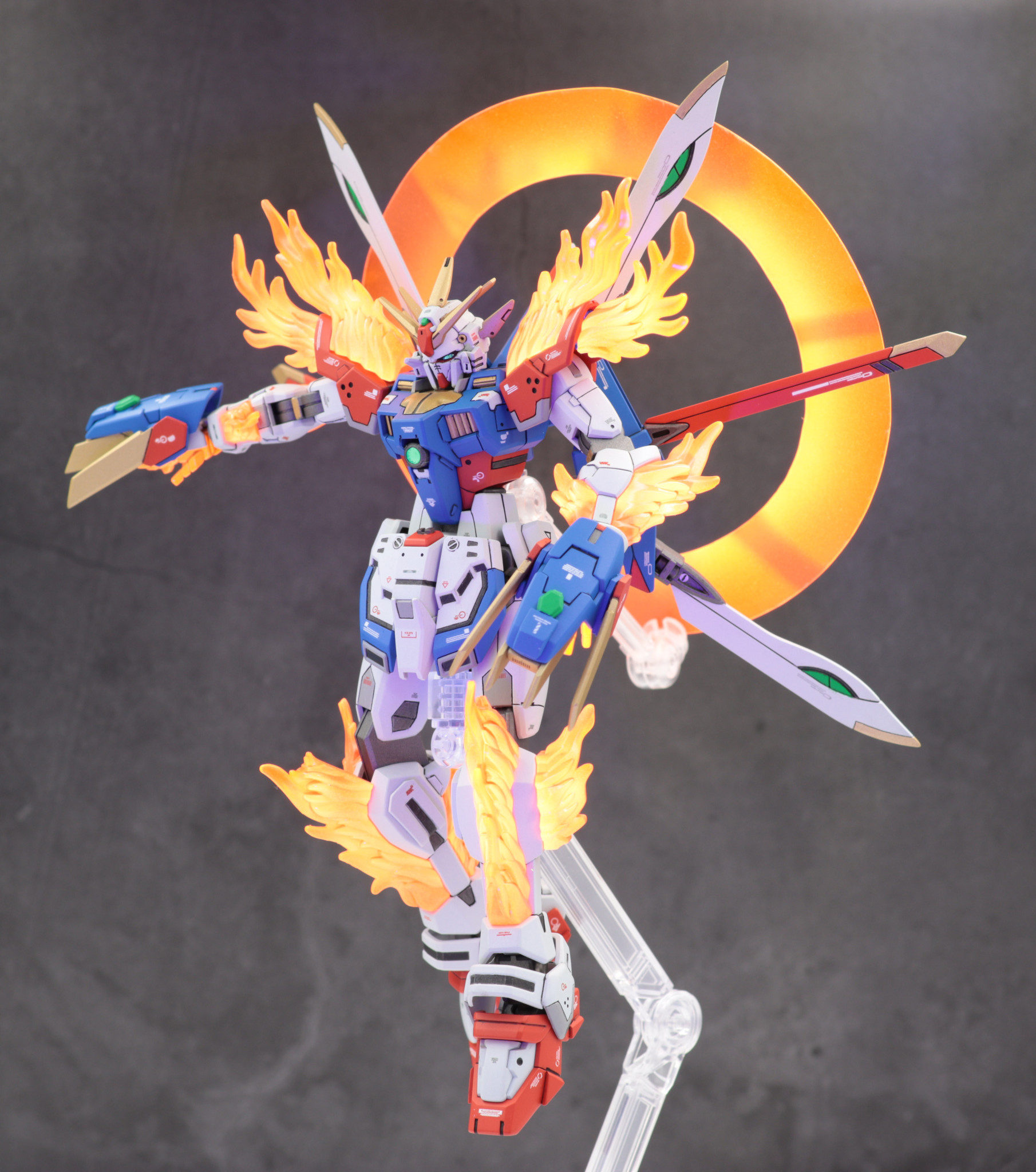 バックパックはフリーダムガンダムカスタムキット(フレイムフェーダー)を使用しゴッドガンダム風に見立てました。