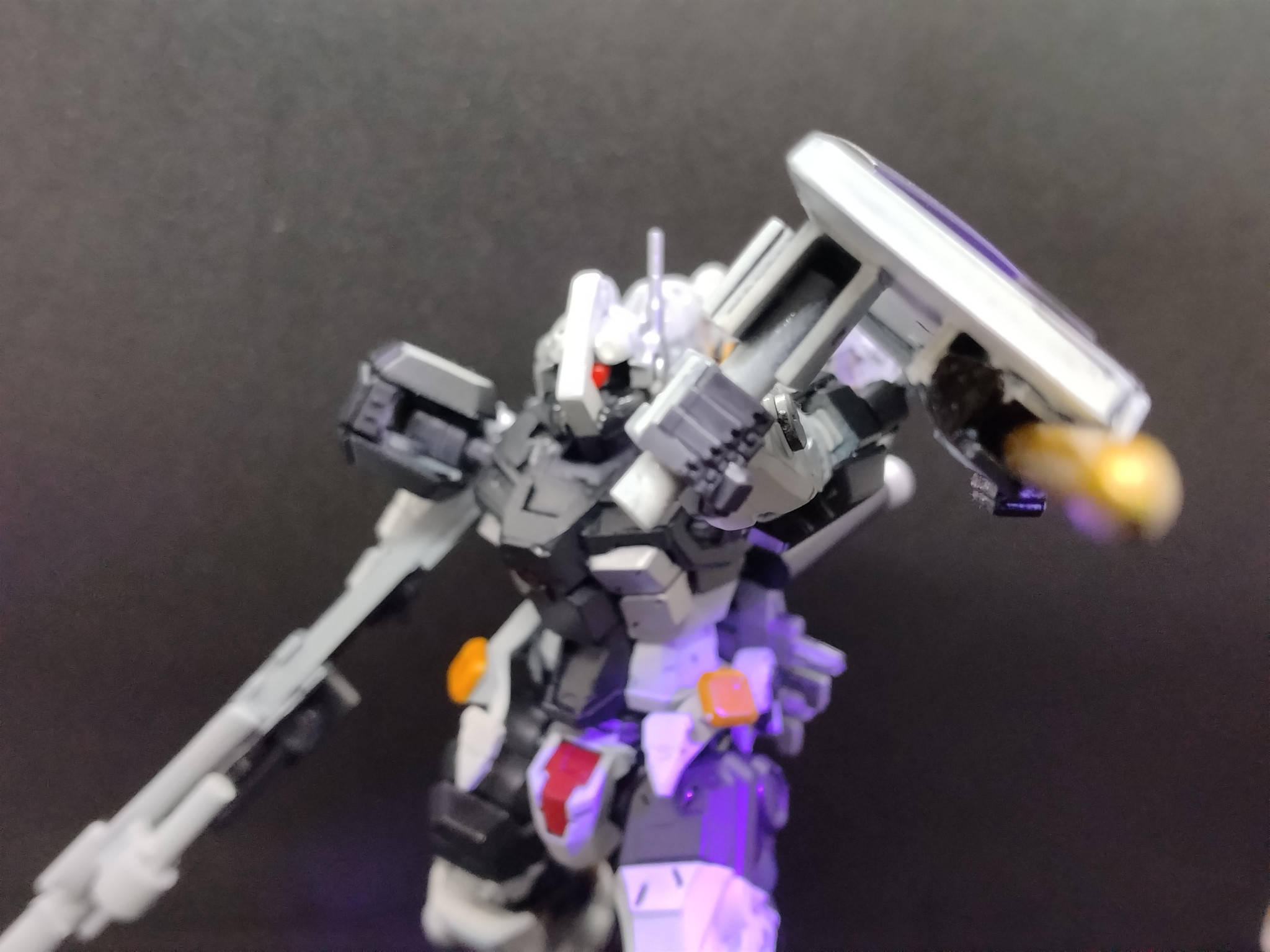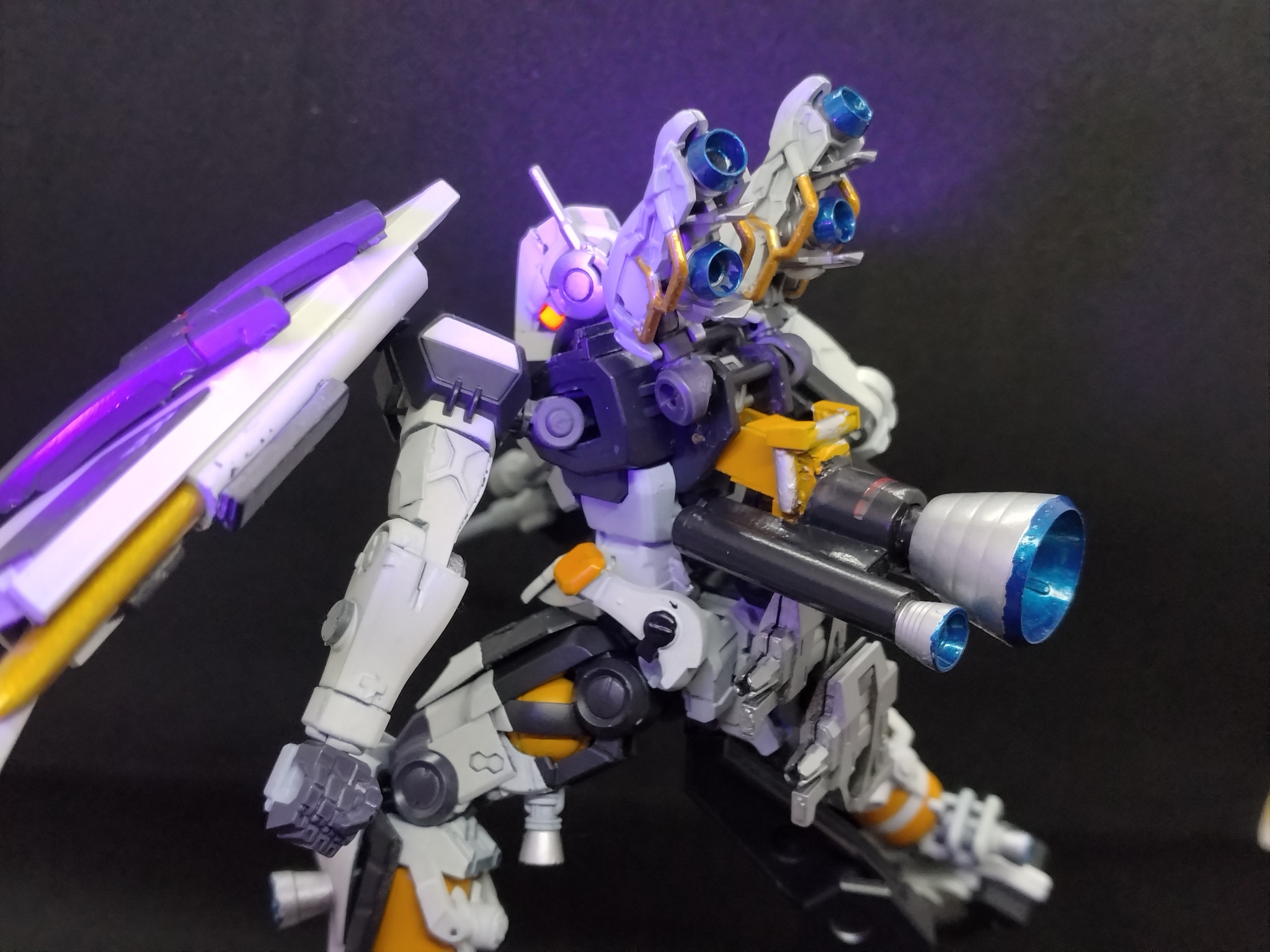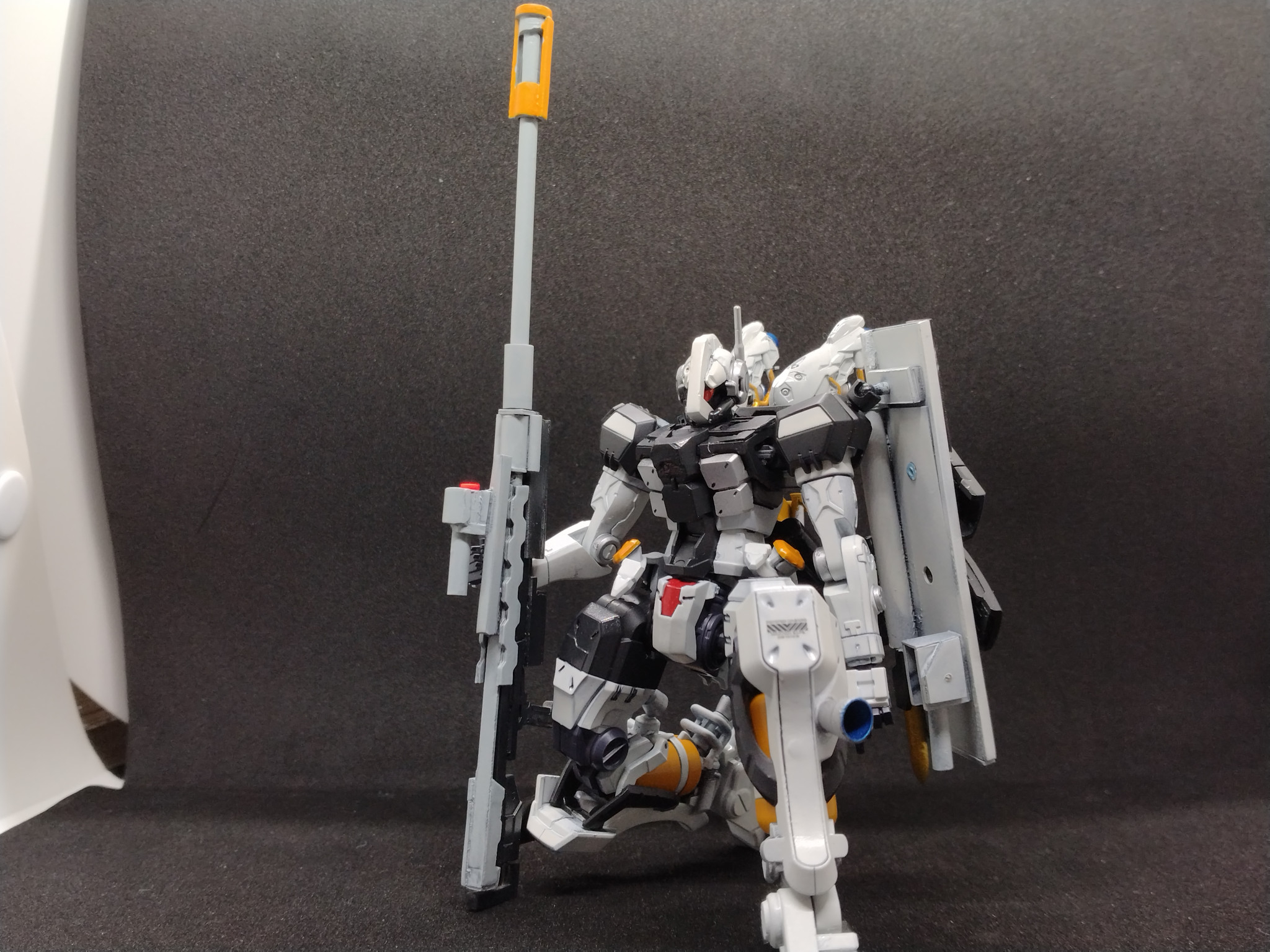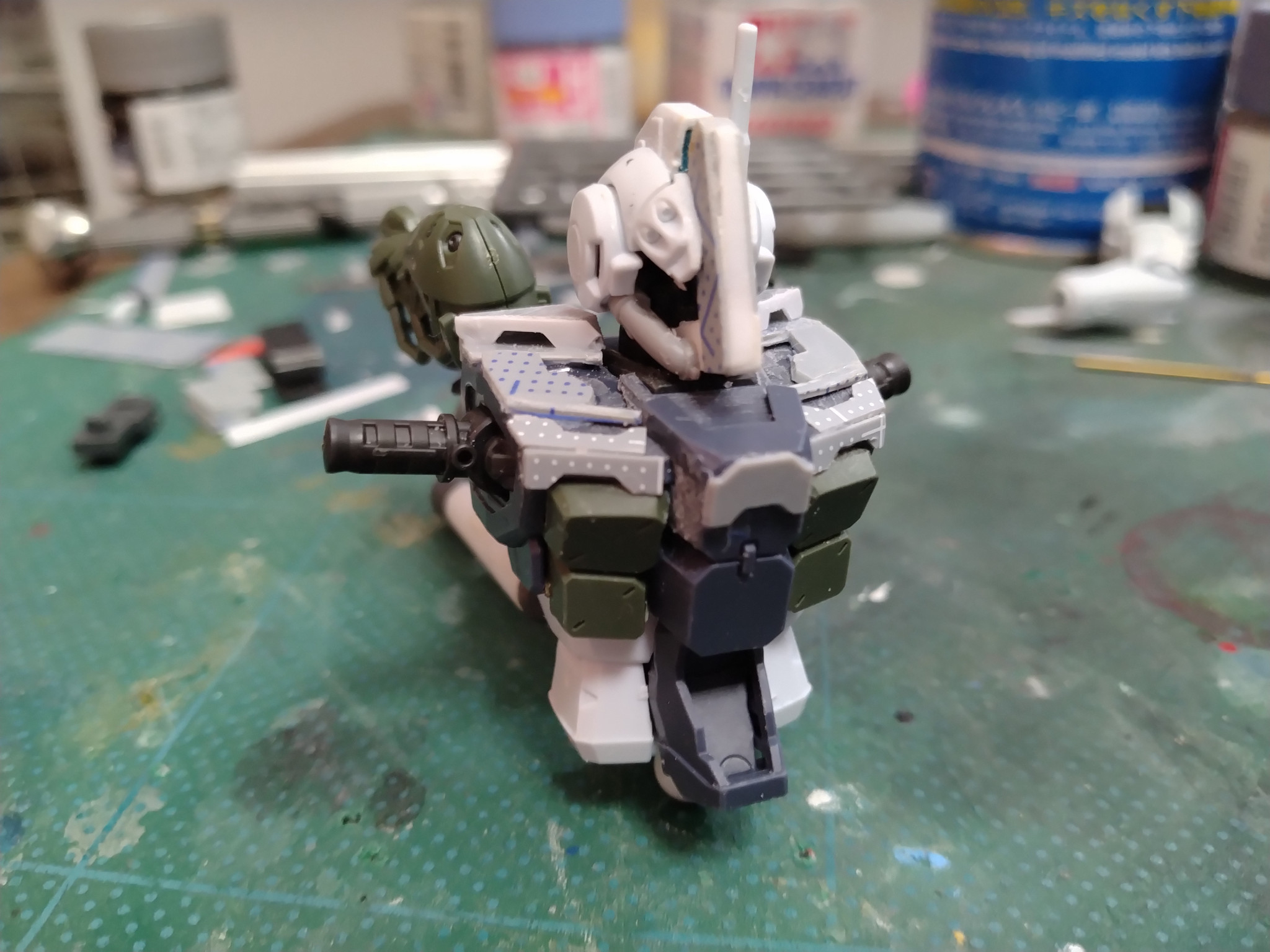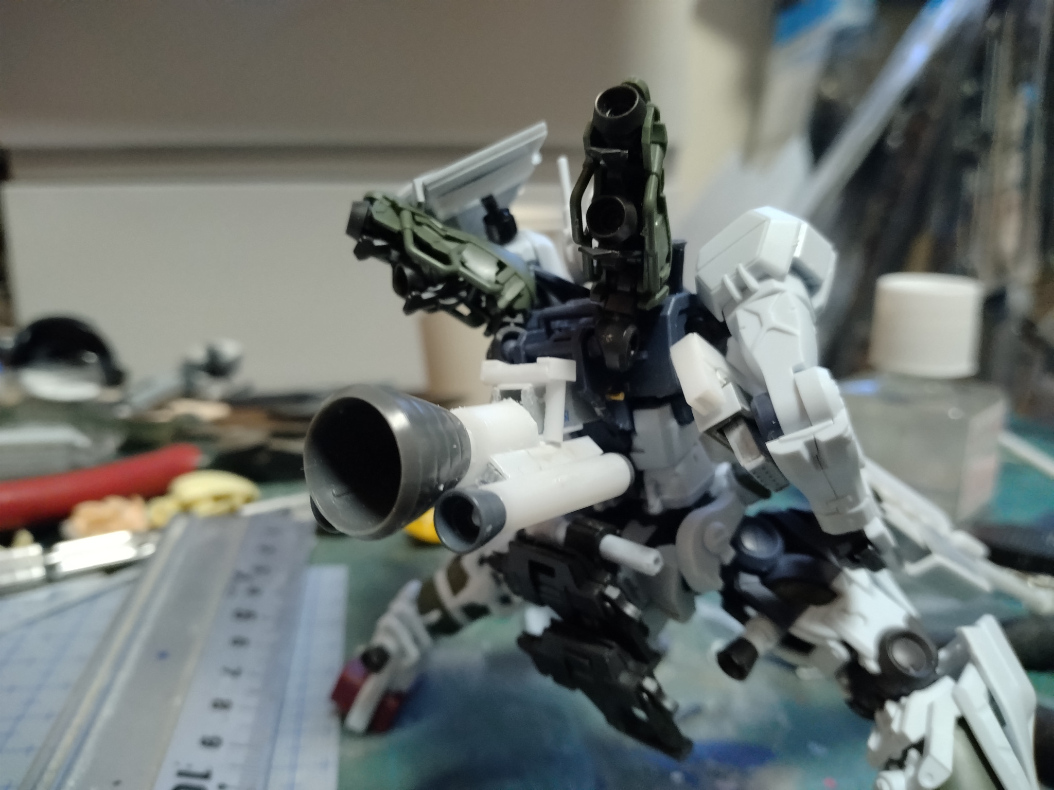 今回は頭部、左肩の改造。背面ブースター増設、ほぼフルスクラッチの対艦ライフルのみ追加