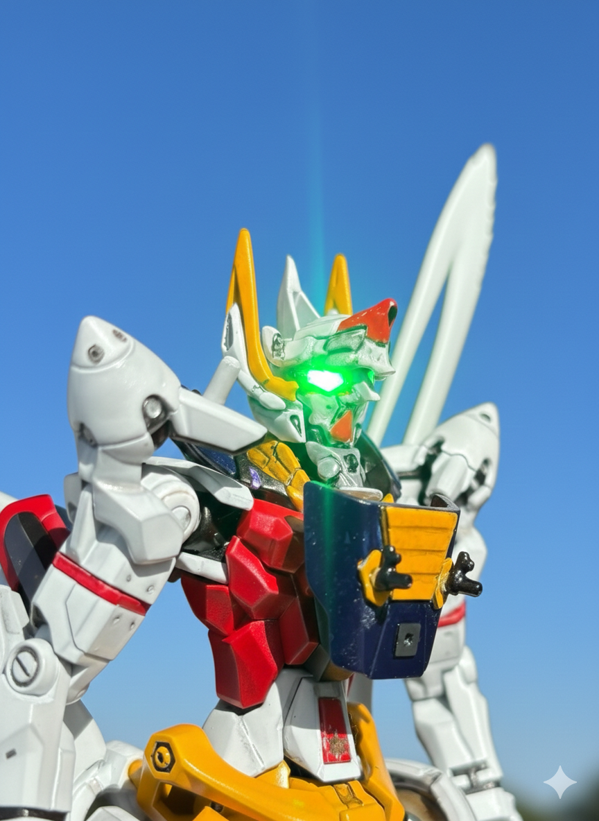 頭部展開状態を強化新型ガンガルらしく…汚くてすみません、まだまだ修行が足りませんm(__)mクチバシはどこへ?ヘッド・チェンジすると赤いアンテナが収納され、後頭部に移動します。どうやって??妄想ガンガルワールドなんで気にしないでください!!!!
