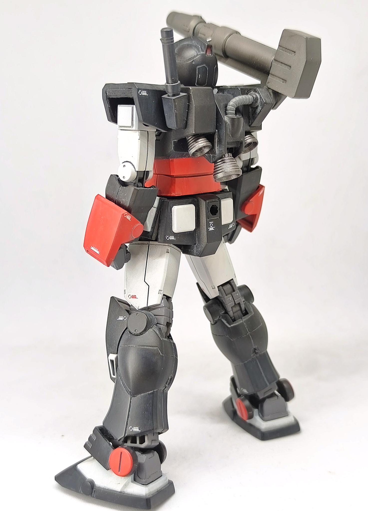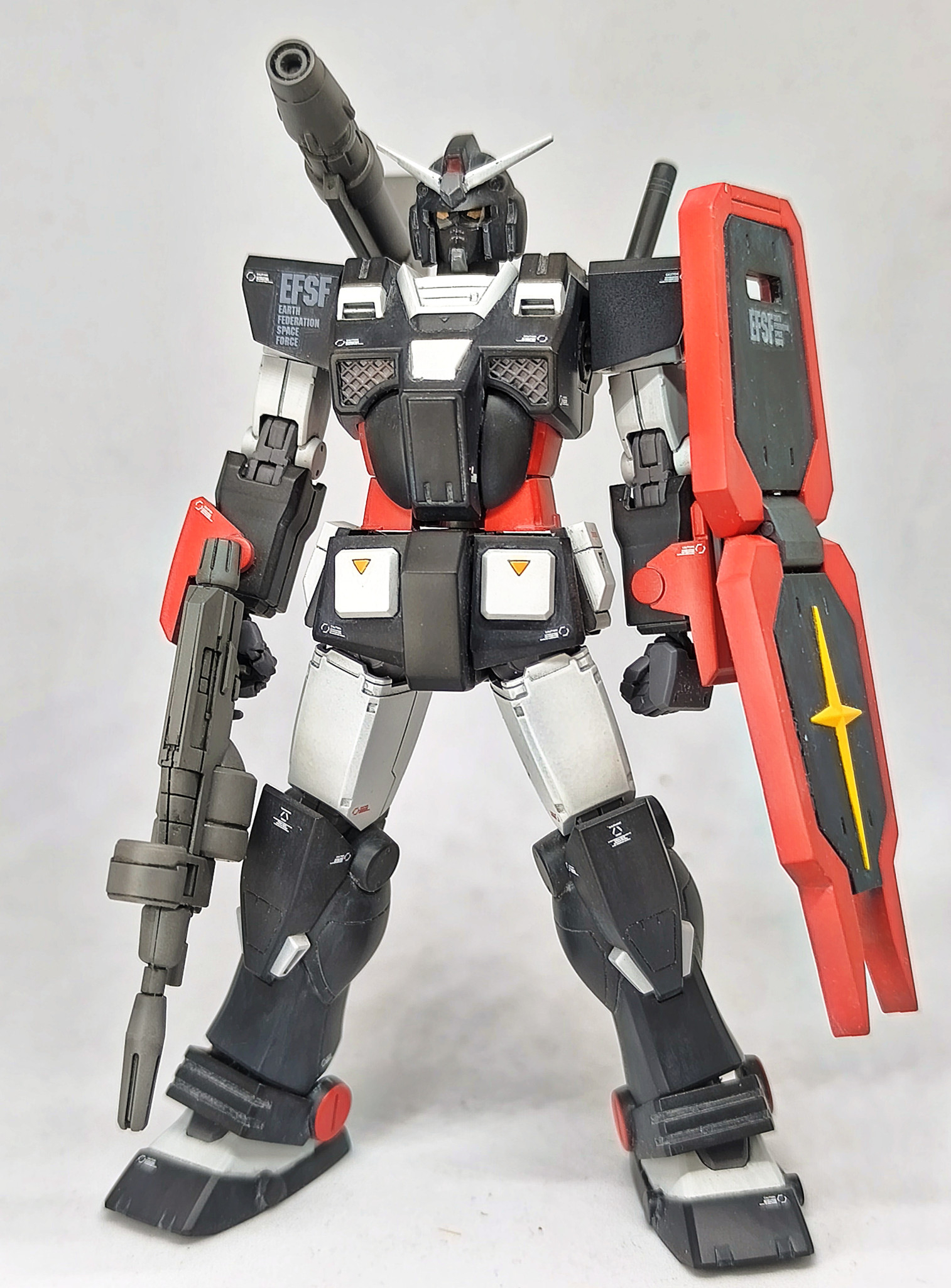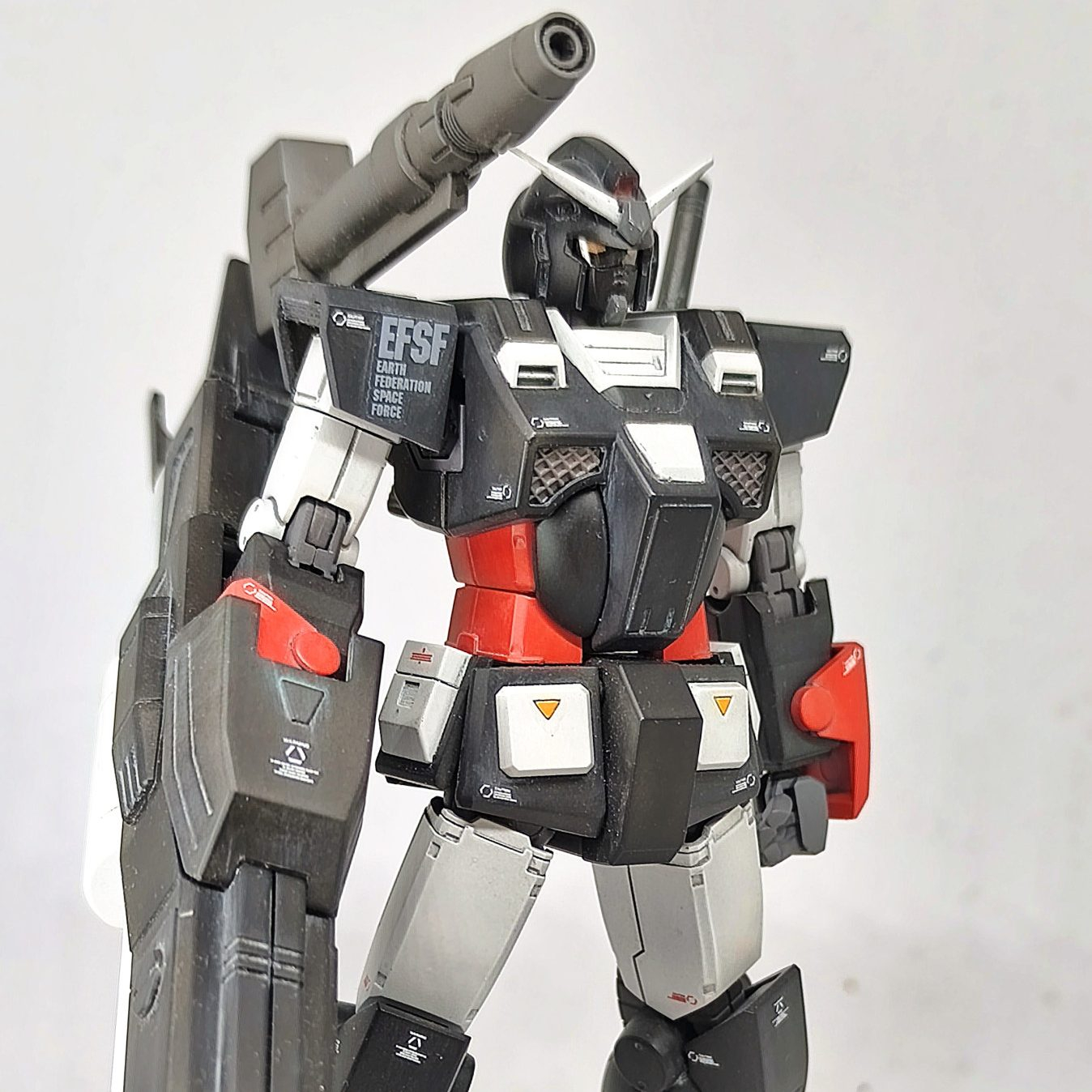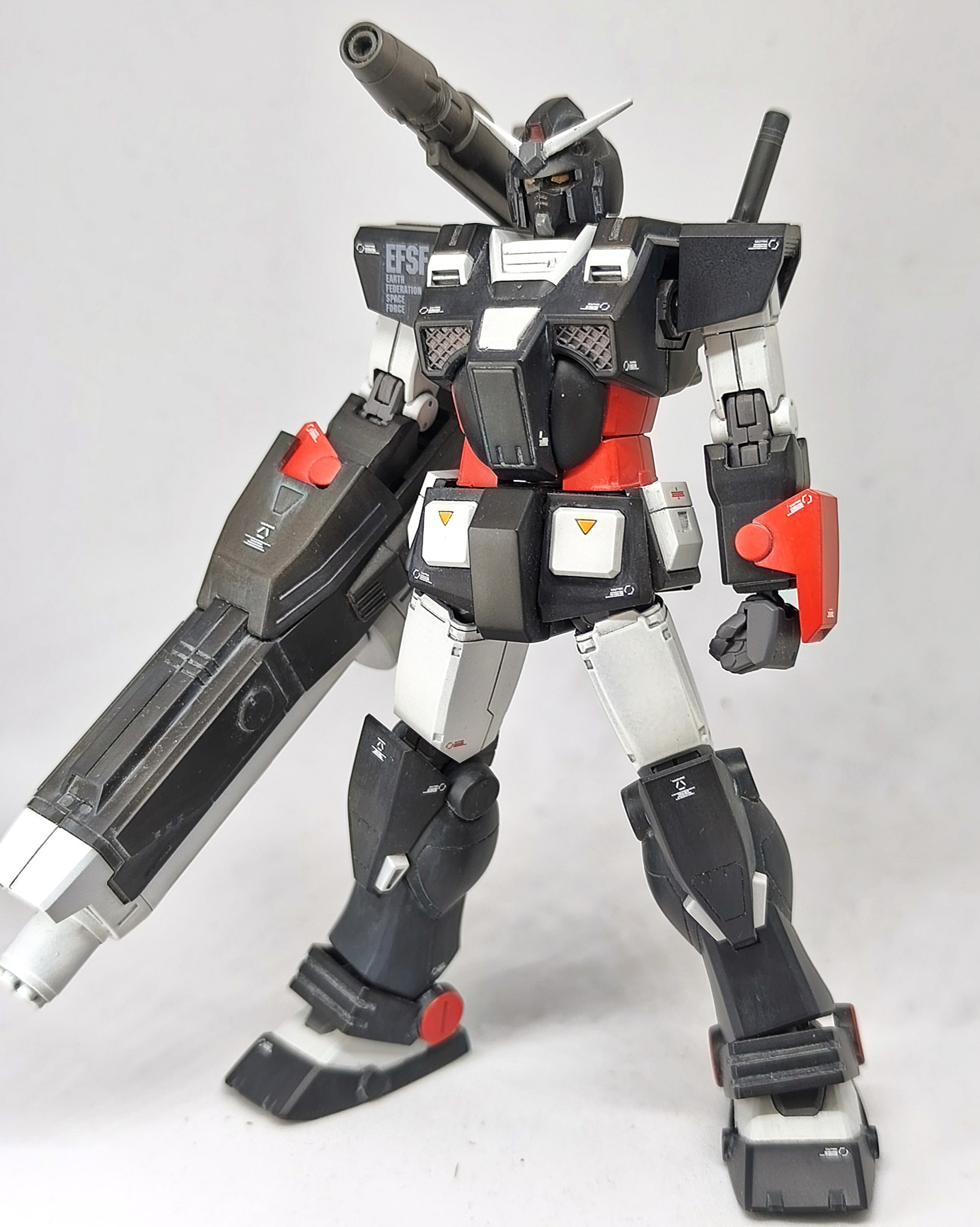 昔からこの機体の特徴的なバイザーがどうしても好きになれず、リバイブ版のガンダムの顔を移植し透明フィルムを最後に貼ってバイザーにしています。