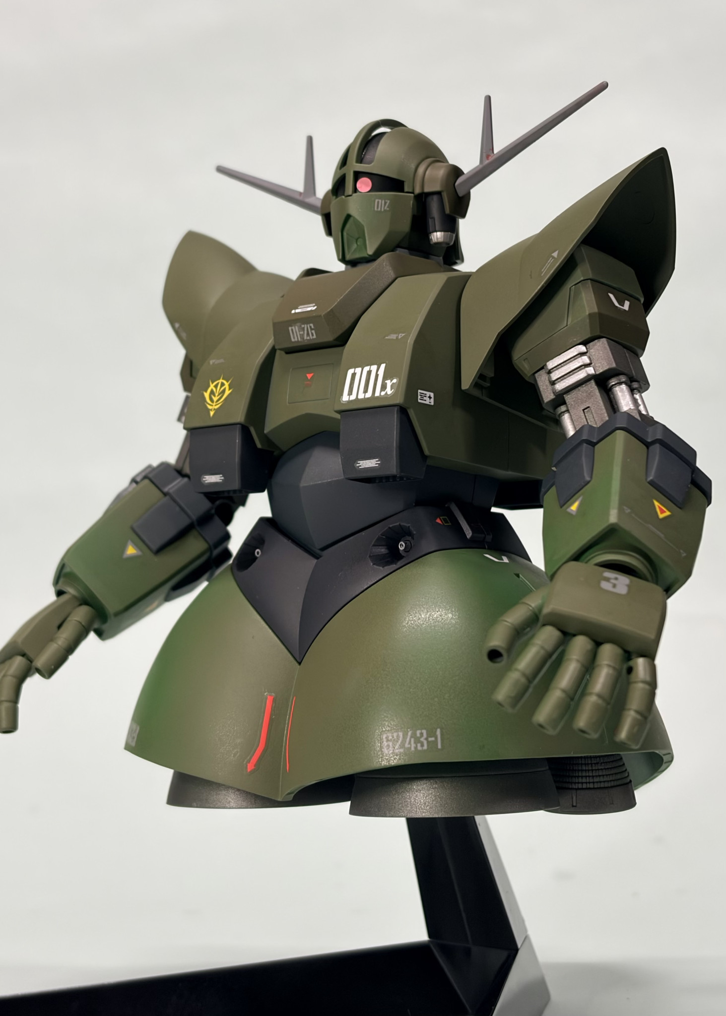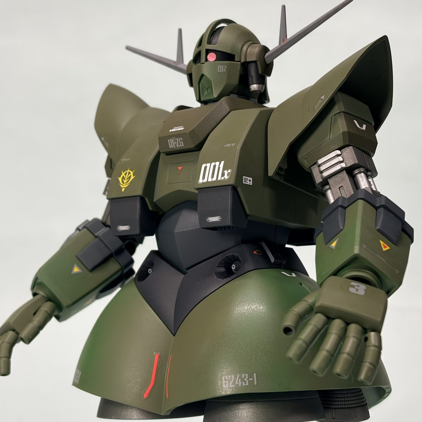 難しそうな調色や配色を、どの色も素晴らしくいいと思います😿特に耳や襟元の挿し色がキュッっと入る事で引き締まり、ジオングをリアルタイプカラーでやる場合の教本のようですねヽ(´エ`)ノ✨
