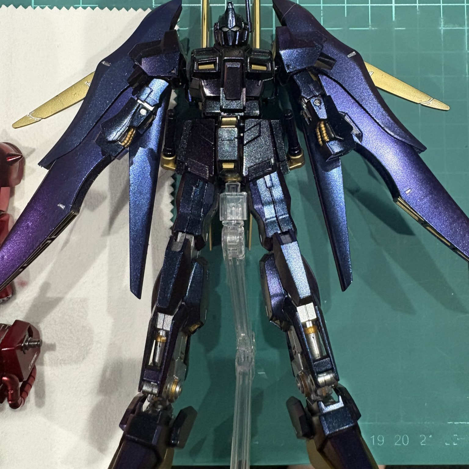 百式は金のイメージが強いので違う色の塗装出してみたらどうかと思い、色々考えたら偏光塗料での塗装となってしまいました😅
