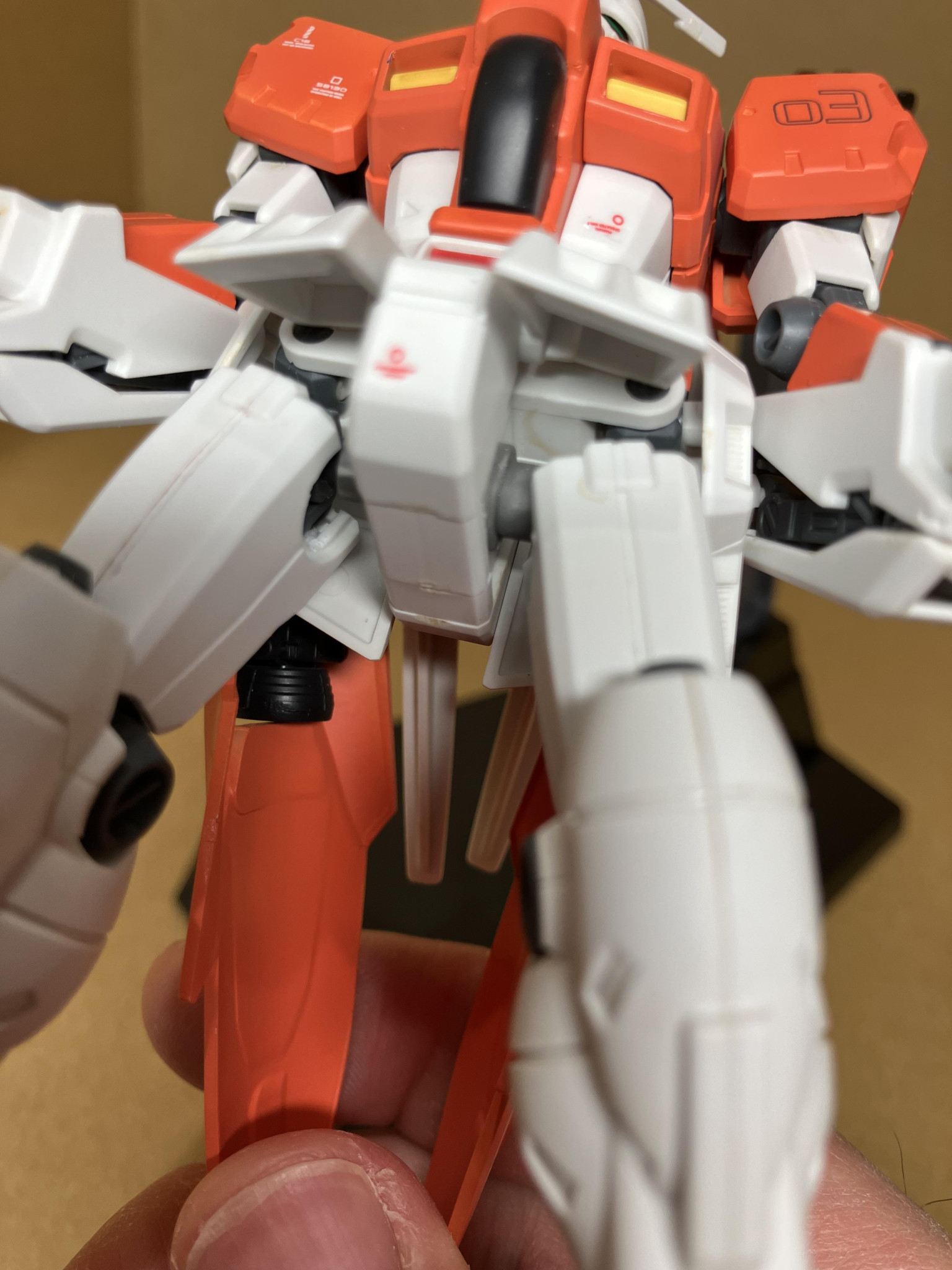 リヴァイヴガンダムから股関節パーツを移植し、ボールジョイントから変更しました。