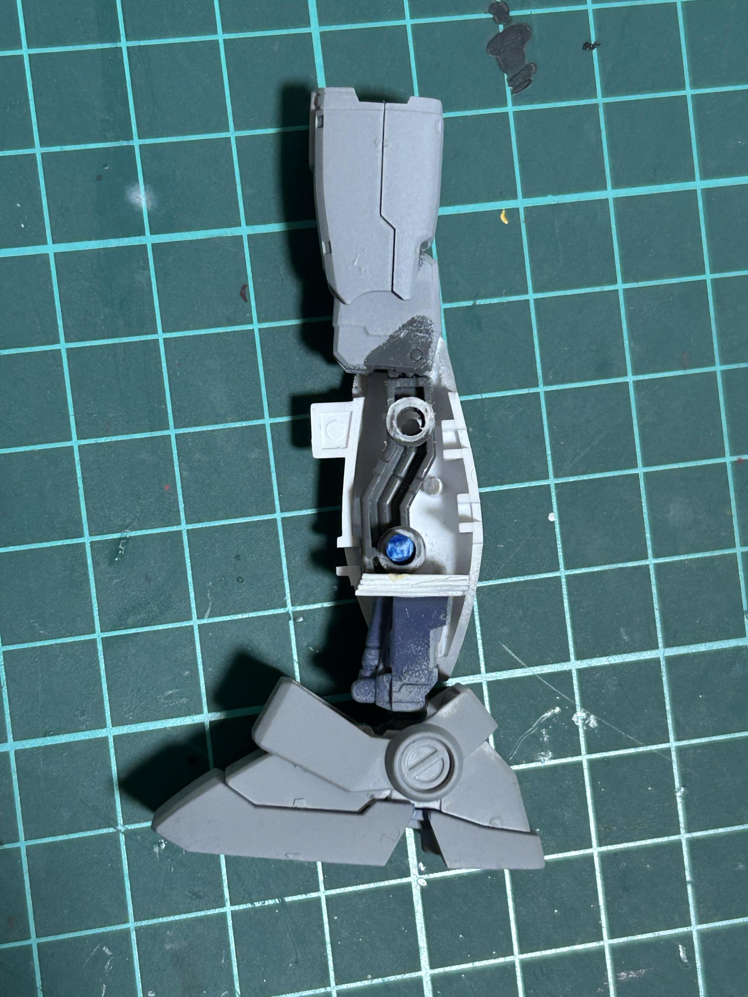 腕に接続するピンをカットしてアレックスの接続ジョイントを接着。