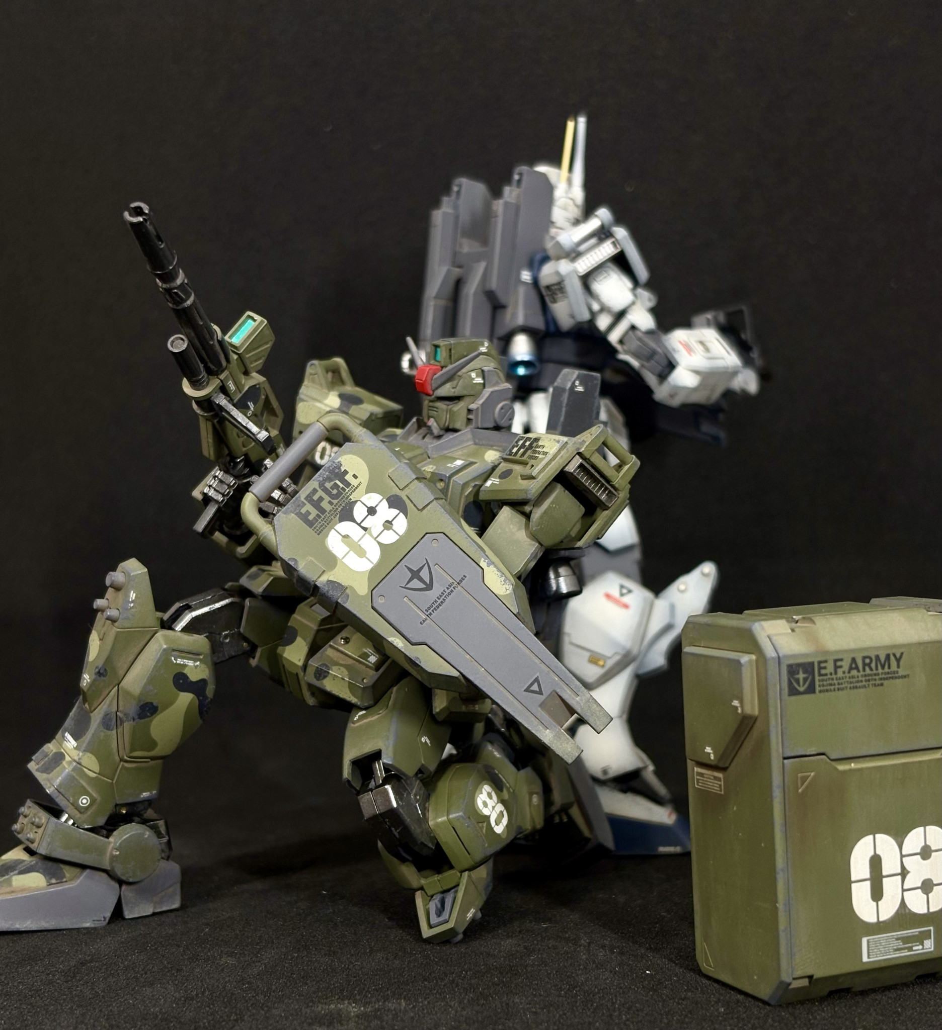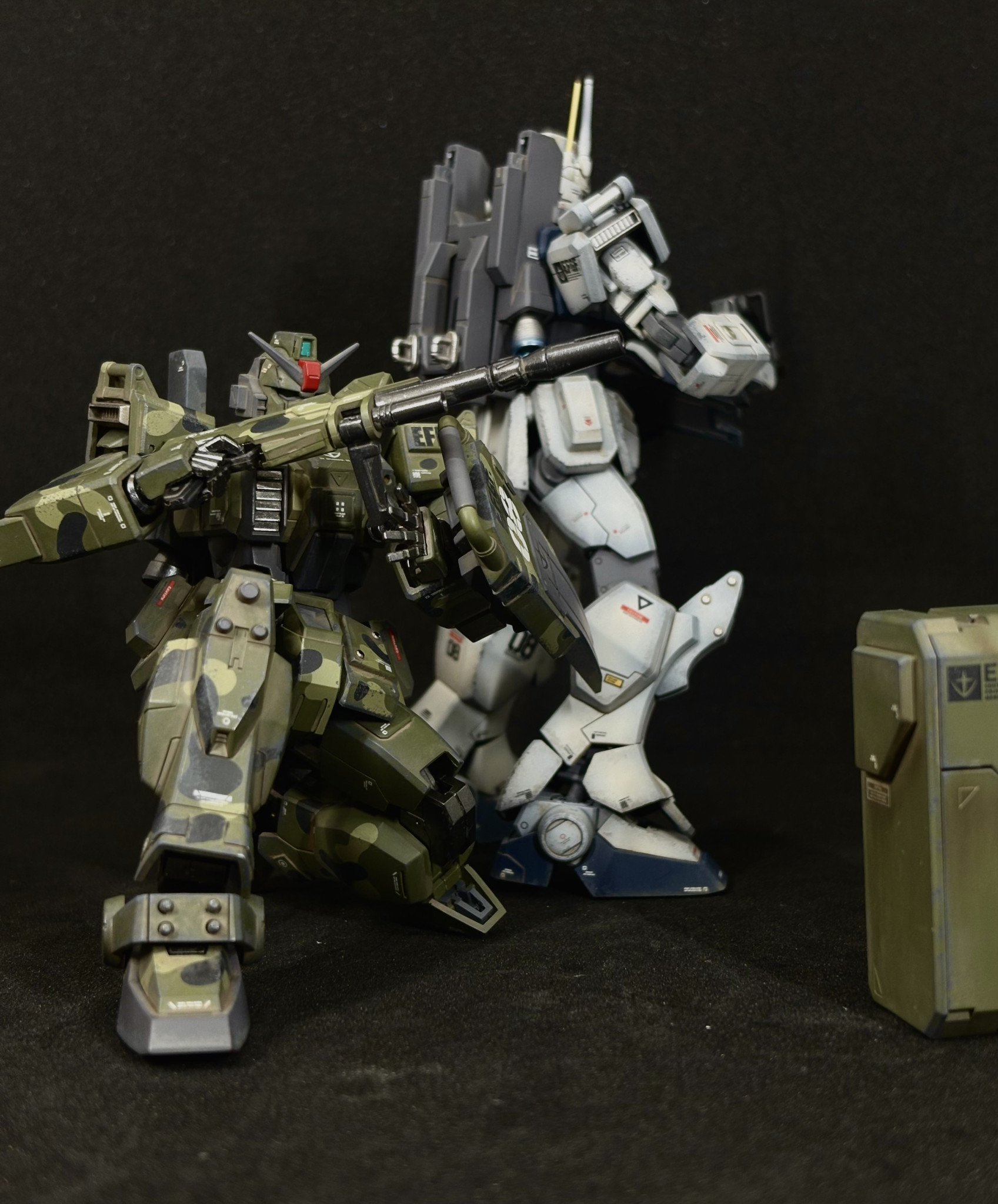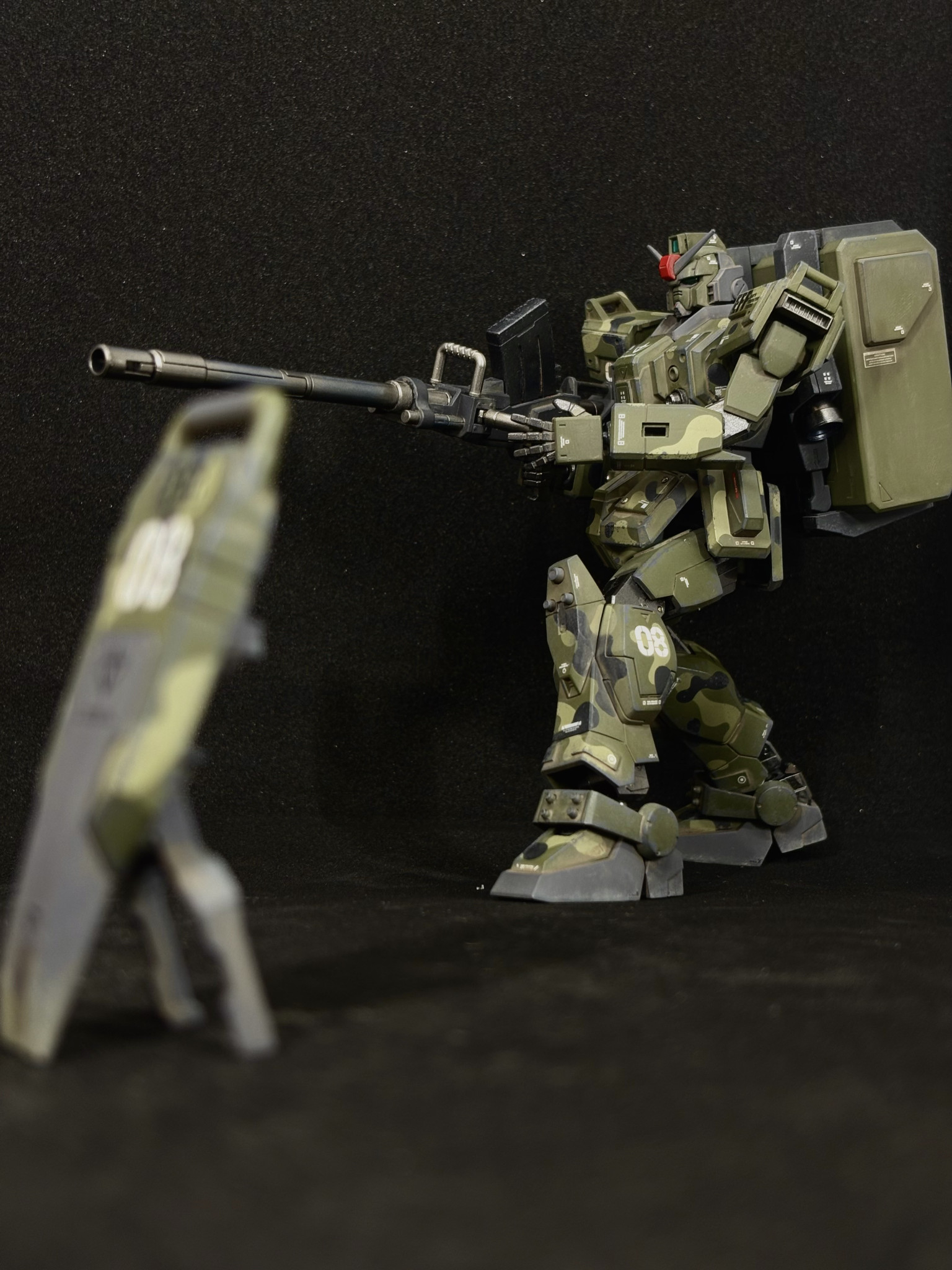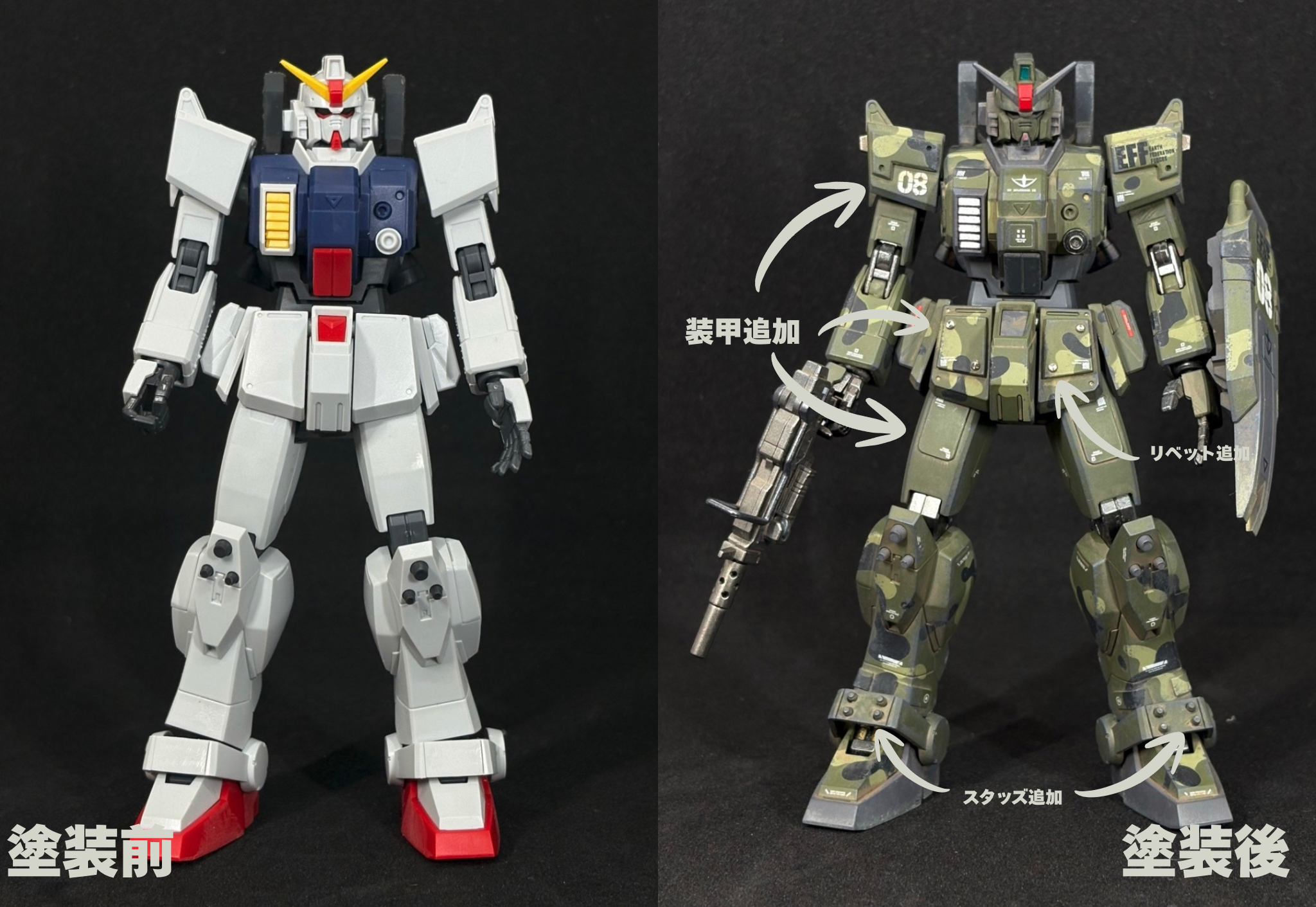 HGUC陸戦型ガンダムを迷彩塗装、ウェザリング仕上げで制作しました。