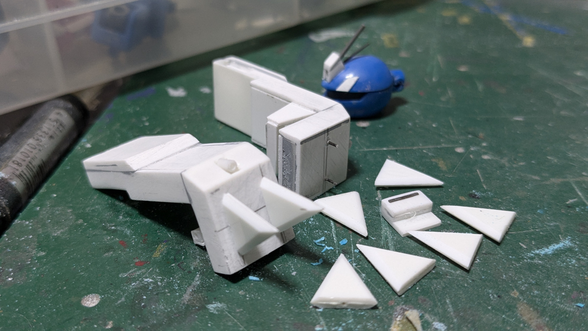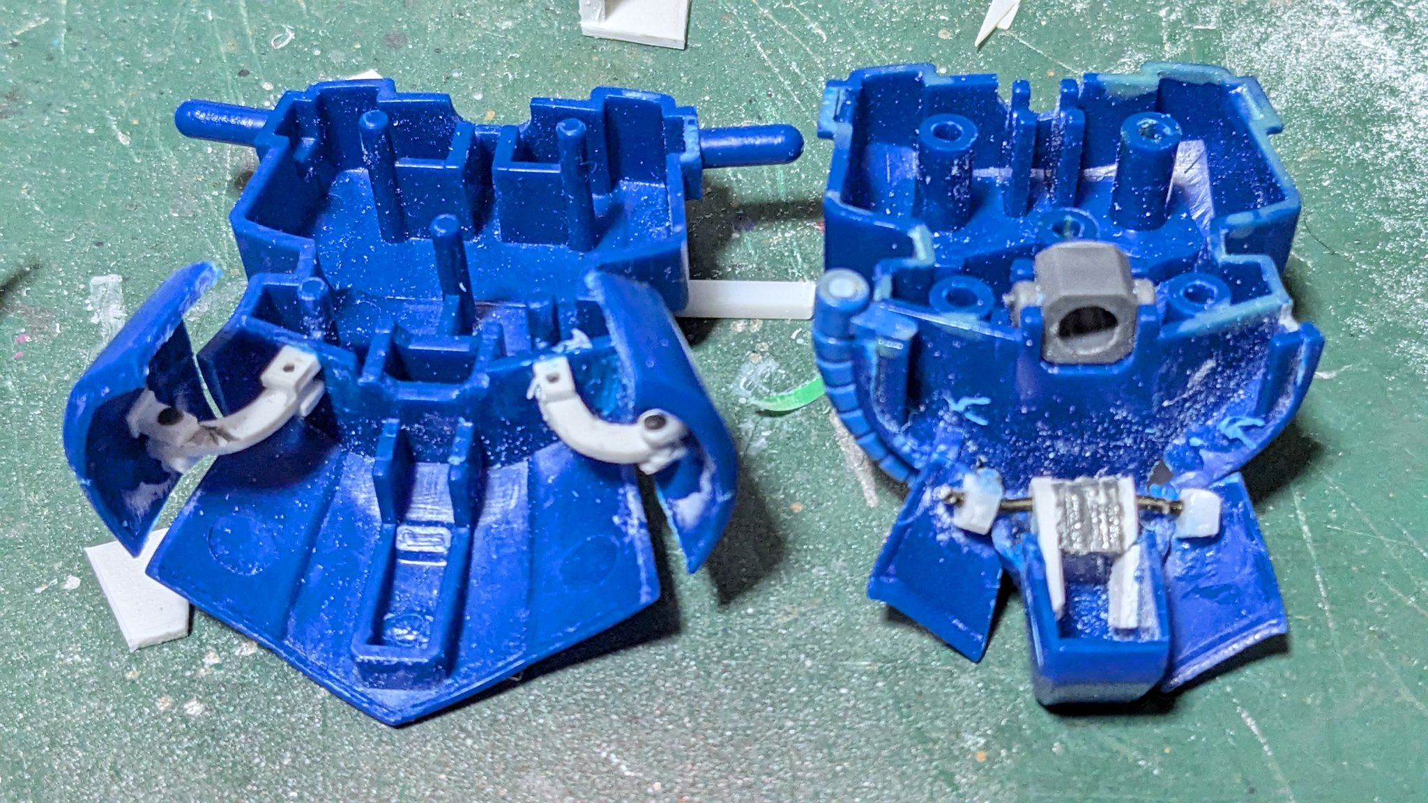 スパイクアーマーも無しなので接続の軸を撤廃。プラバンで隙間埋め。