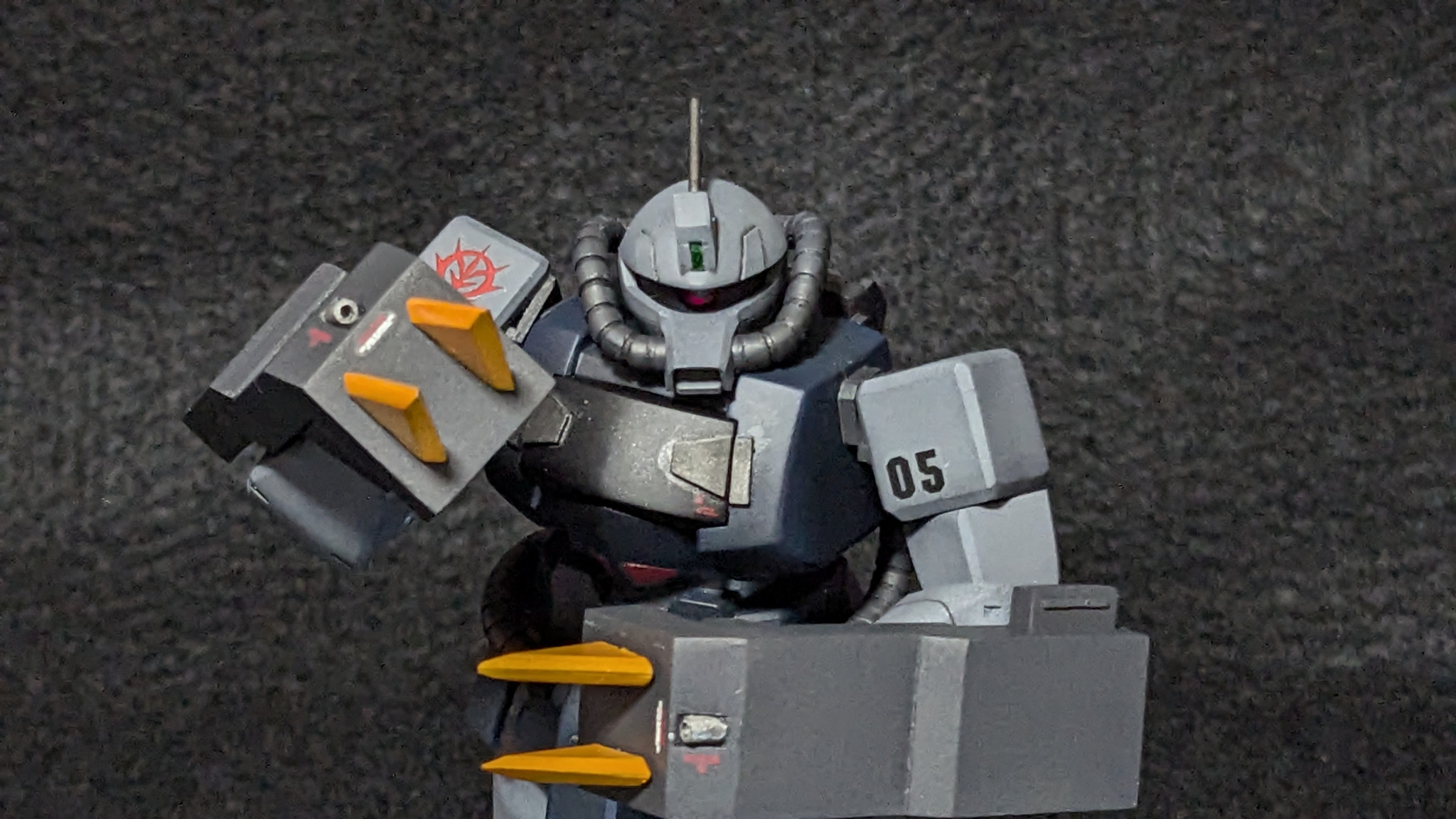 隠密性、隠匿性を重視し部隊マークや部隊ナンバーは表記されず、ジオンのマークと機体番号のみが目立つ。