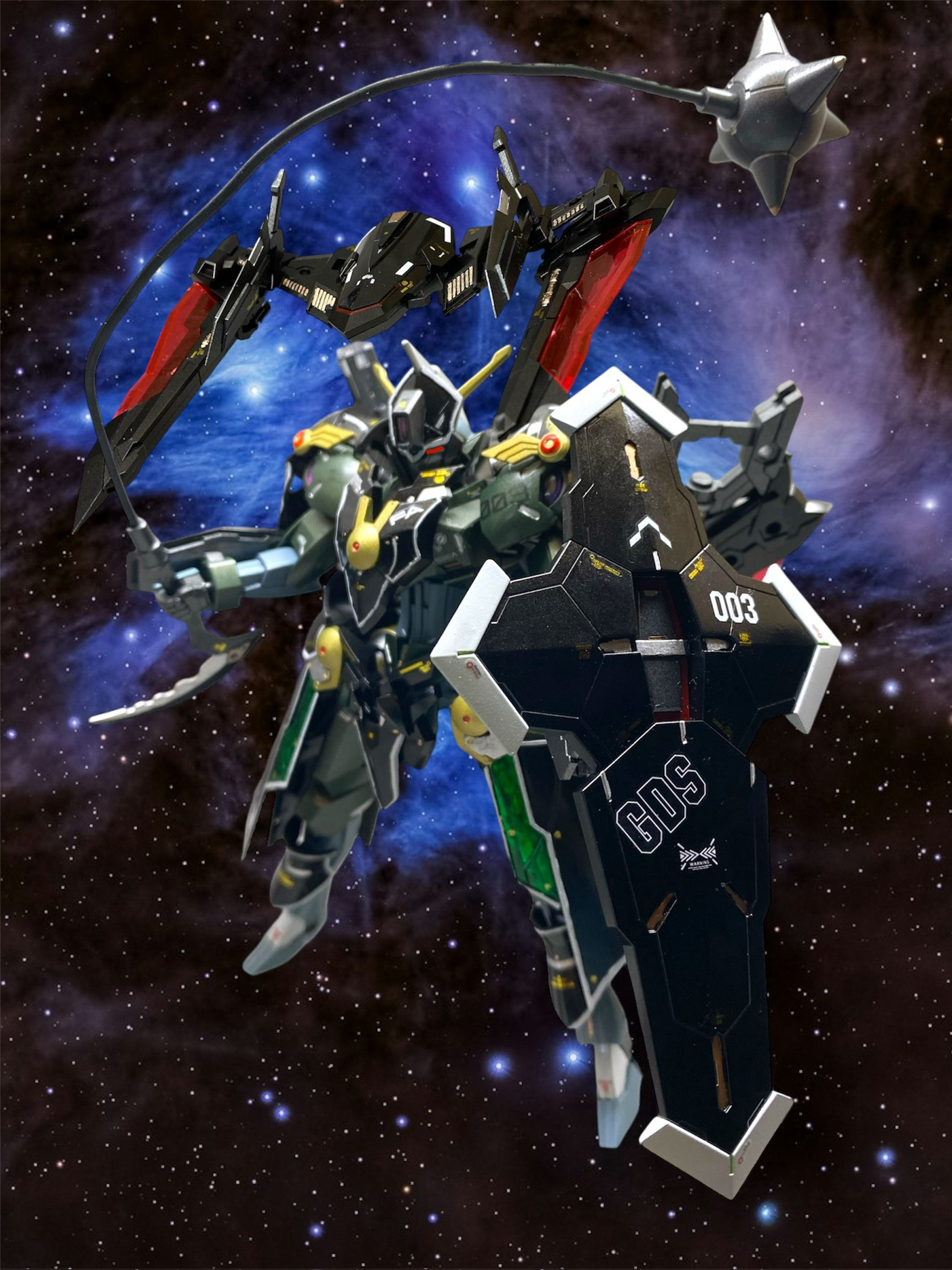 フルアーマー形態。ミカエリスが、GUND-armorを纏うことでGUND-ARM化するがコンセプトなので、マスクもV字アンテナを生やしています。