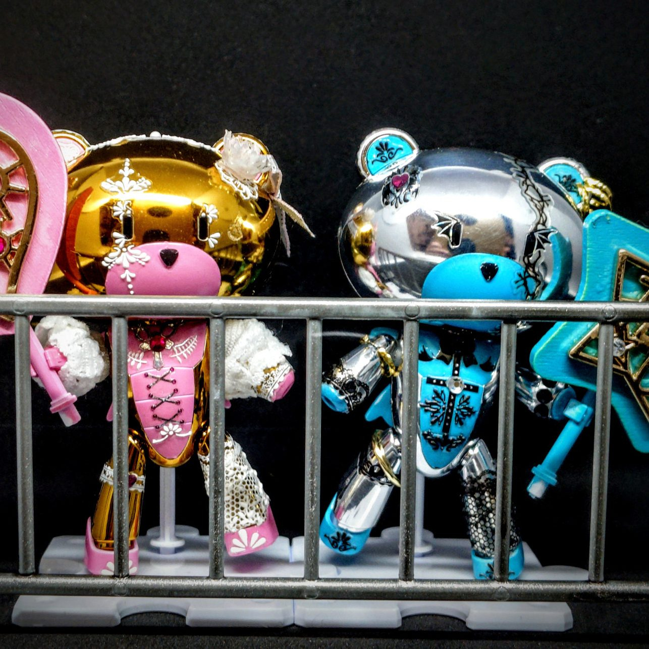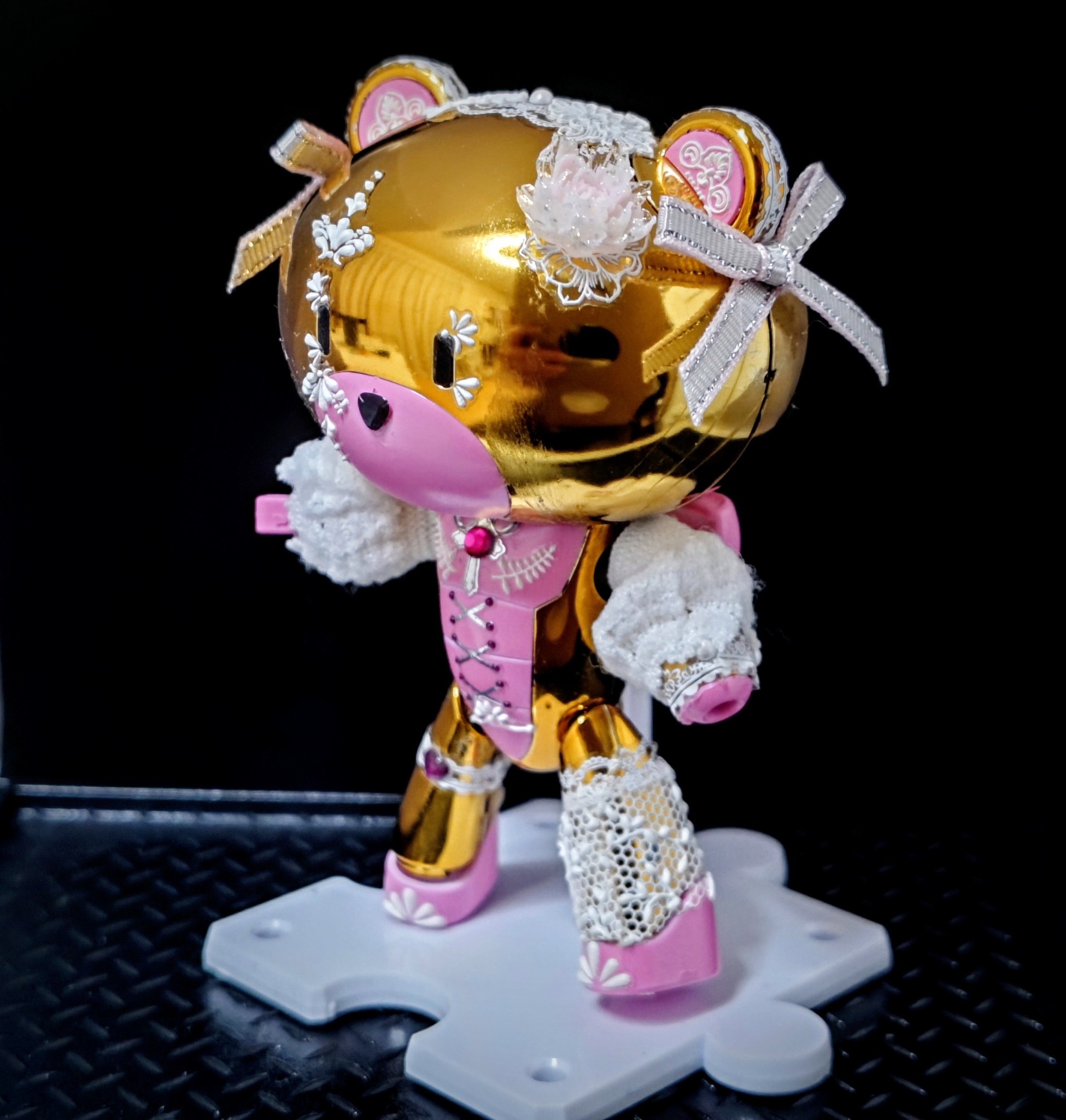 先日の部分塗装したプチッガイをネイルシール(主にセリア産)でバンギャ風にデコレート。