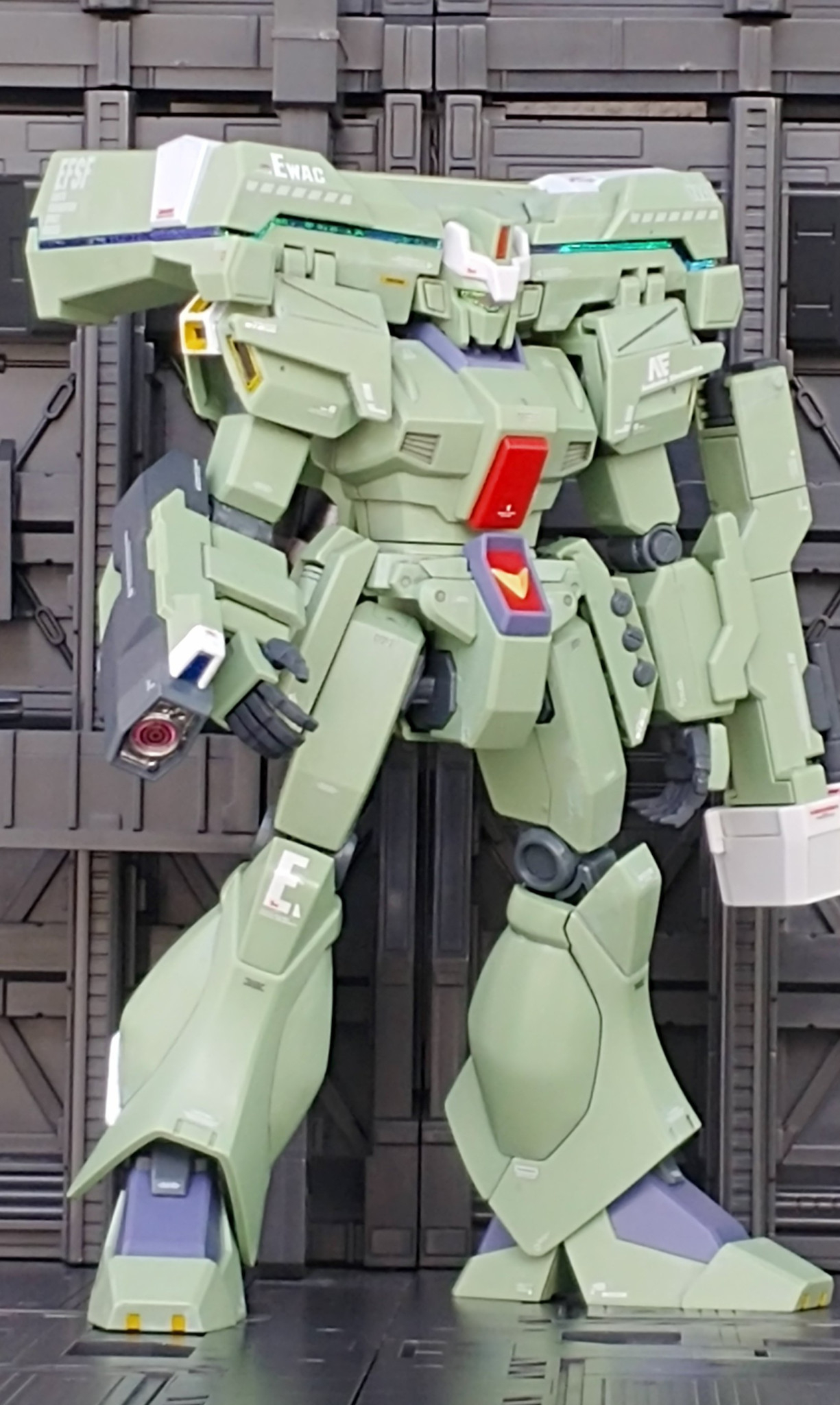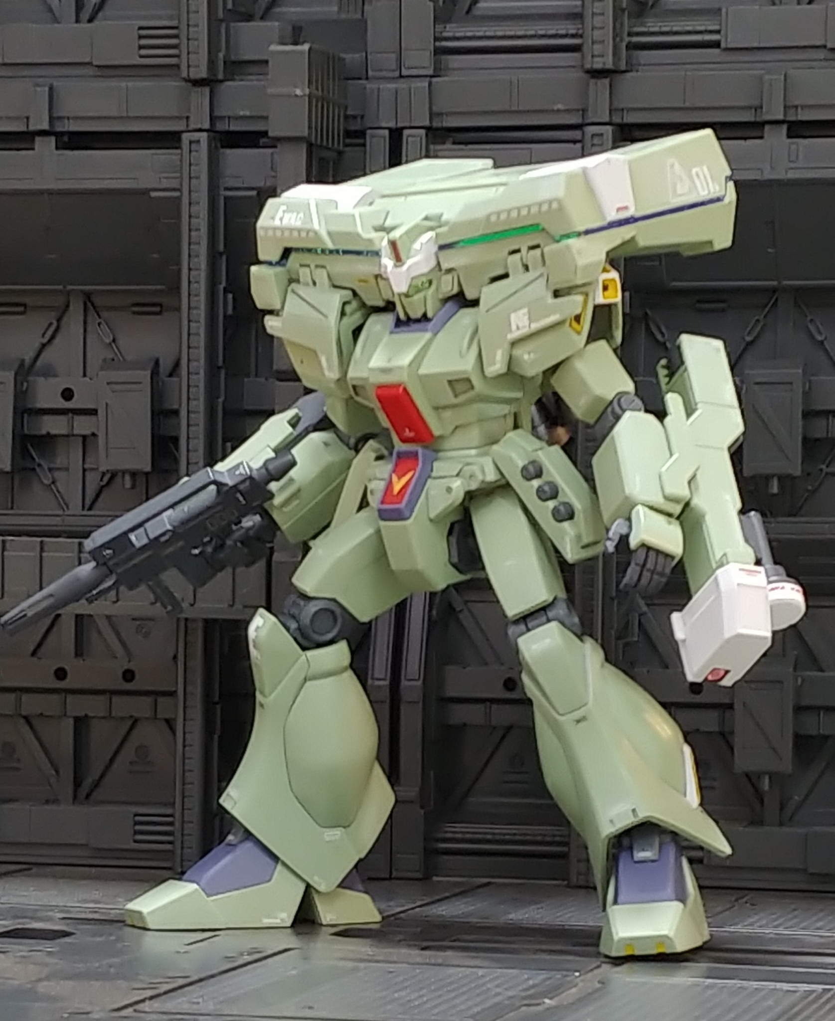 EWACジェガン HGUC 成形色仕上げの簡単工作です。本体色以外は筆塗りの部分塗装、デカール追加しセンチネルっぽく…