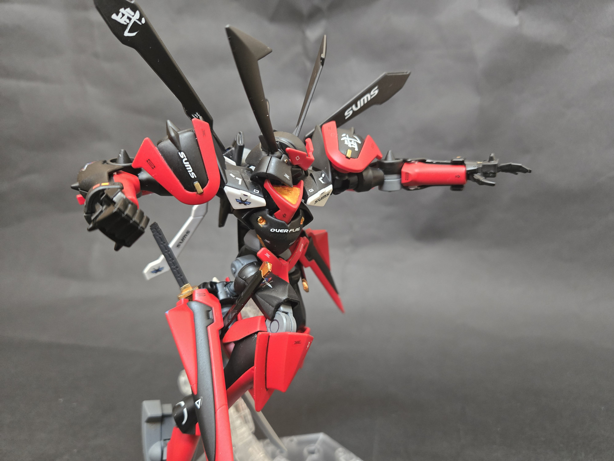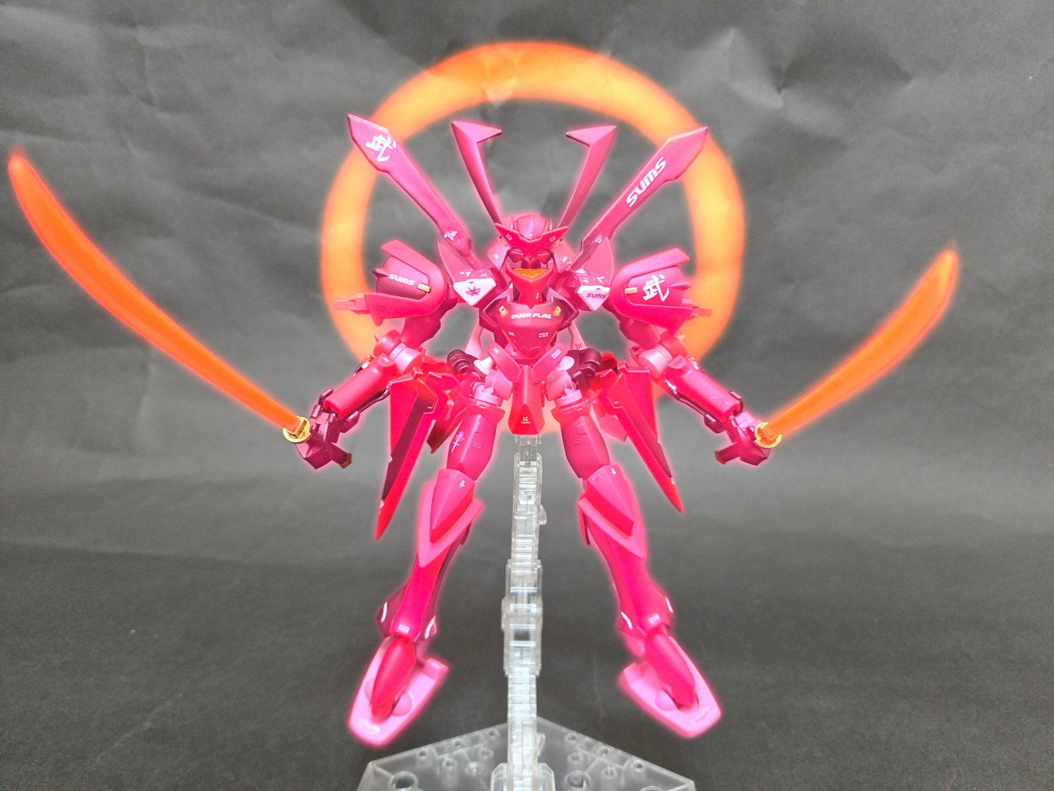 ・ハイパートランザム…トランザムとハイパーモードを同時に発動する、本機の”奥義“。背部の大型グラビカルアンテナを展開し、日輪のような粒子加速エネルギーリングを形成することで、機体出力を爆発的に高める。