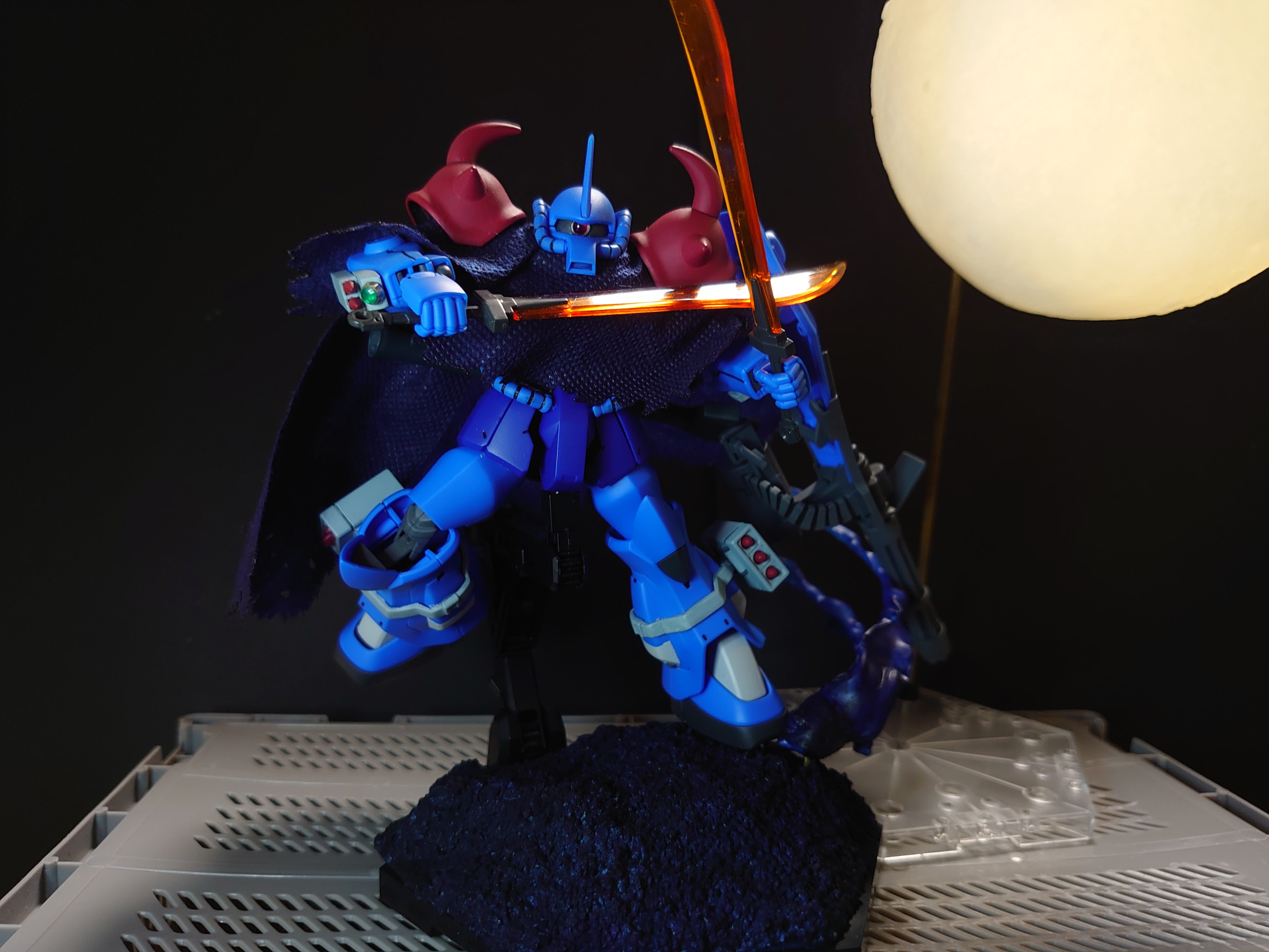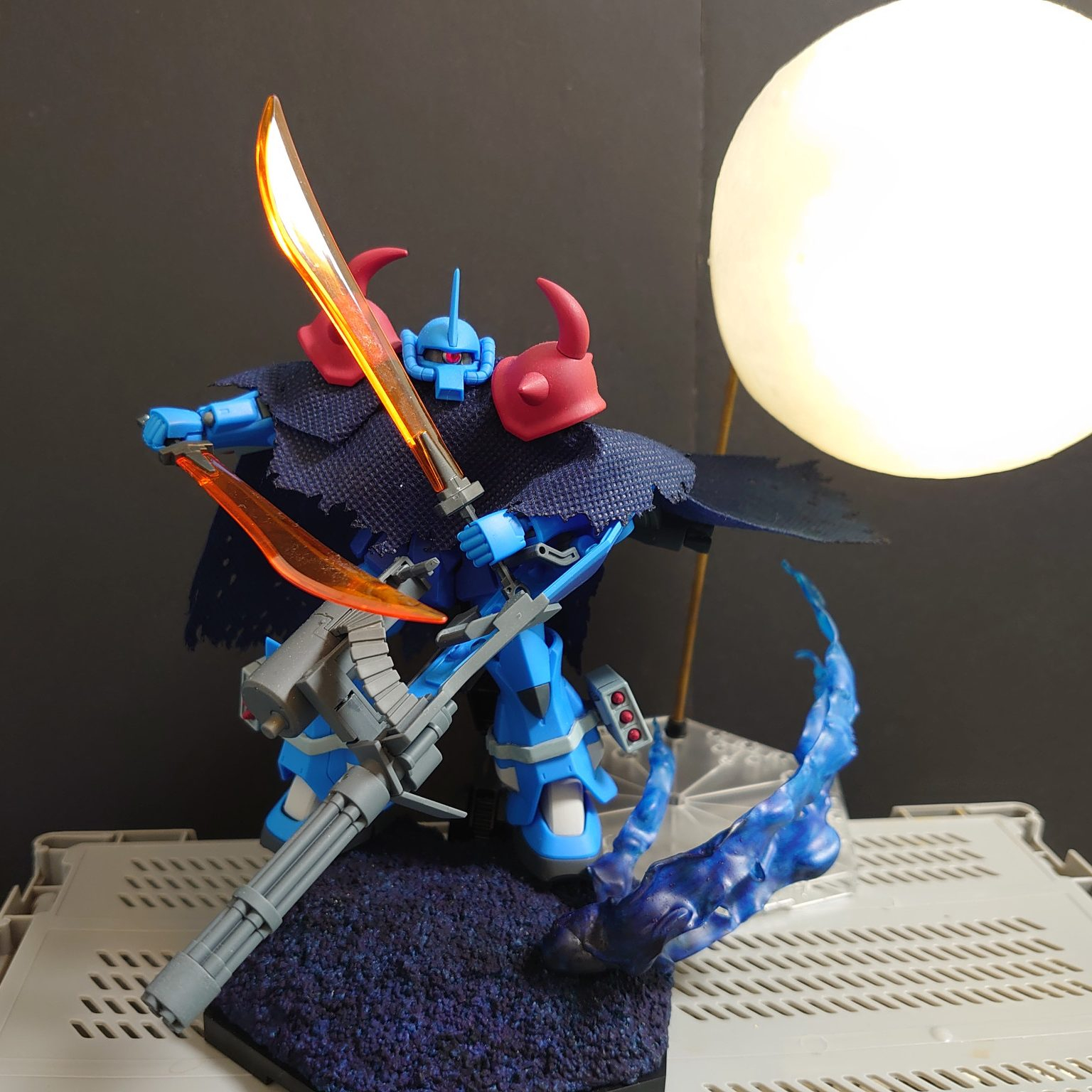 足元の砂塵はプラ板を適当に切って加熱したもの、背景の月はダイソーの商品です。