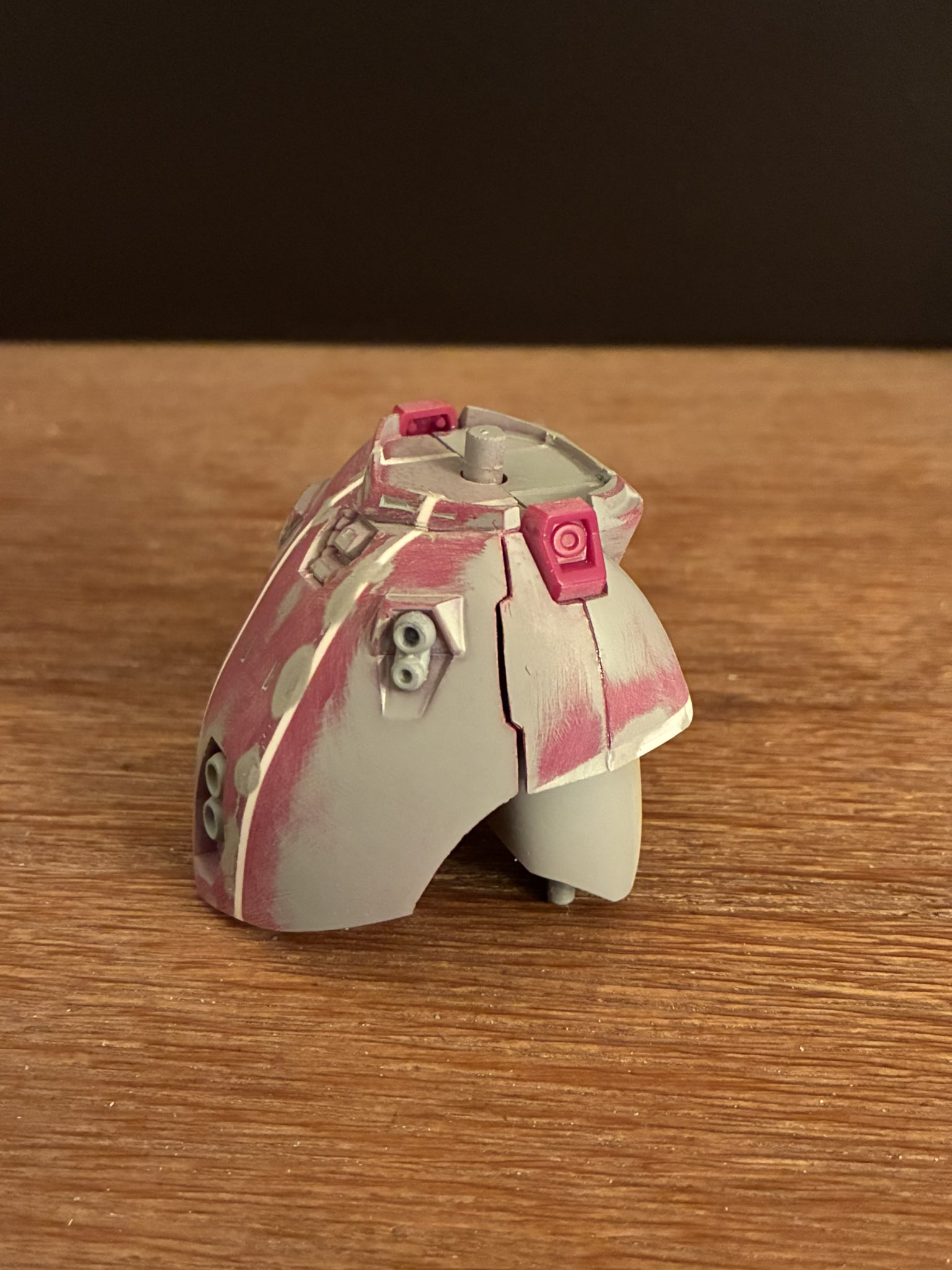 Fs型のシールドが好きで是非装備させたかったものの、そのままの形では肩バインダーにシールドが干渉してしまうため、シールド上端を切り落とし断面を作りディテールを配置。