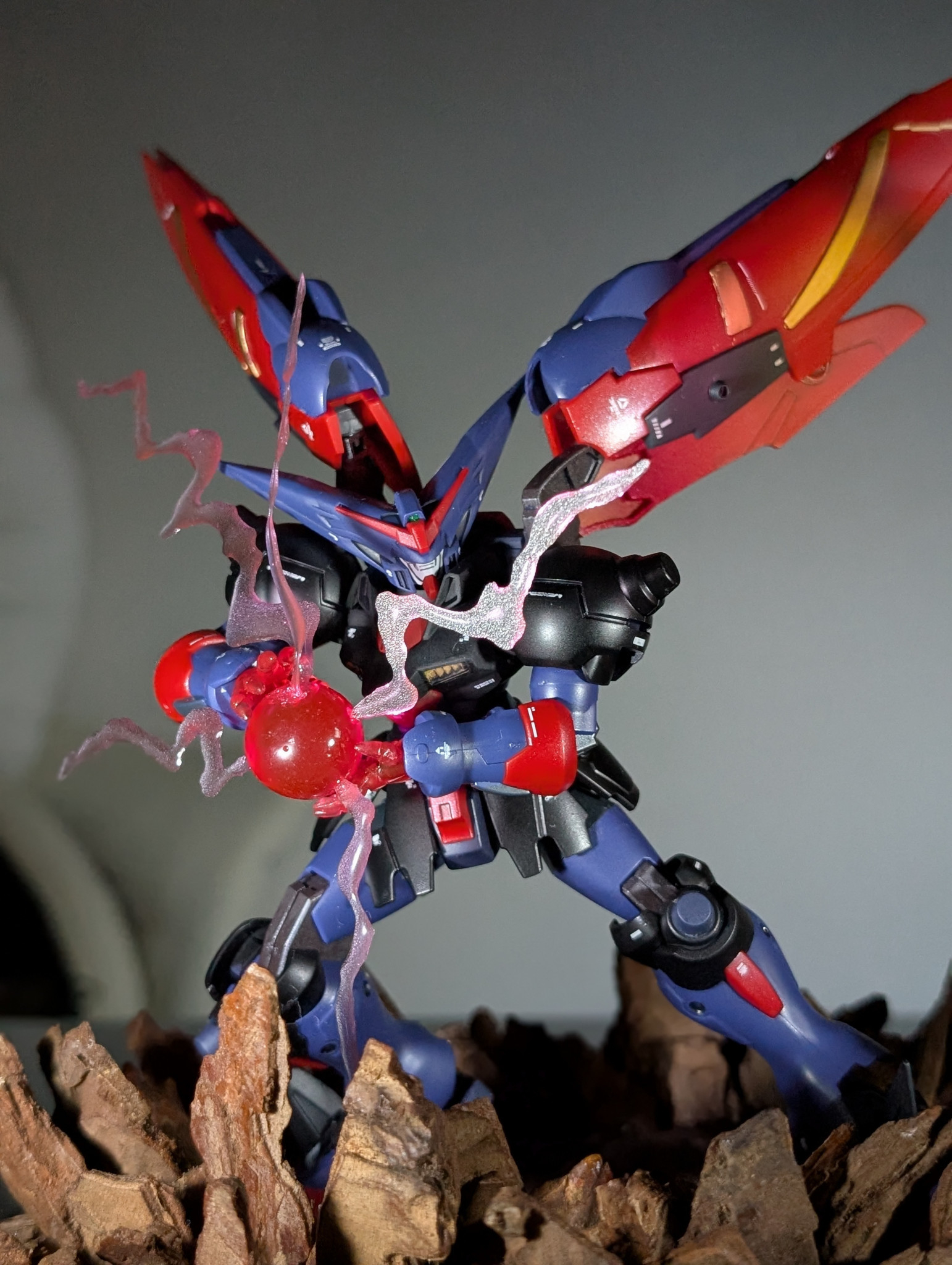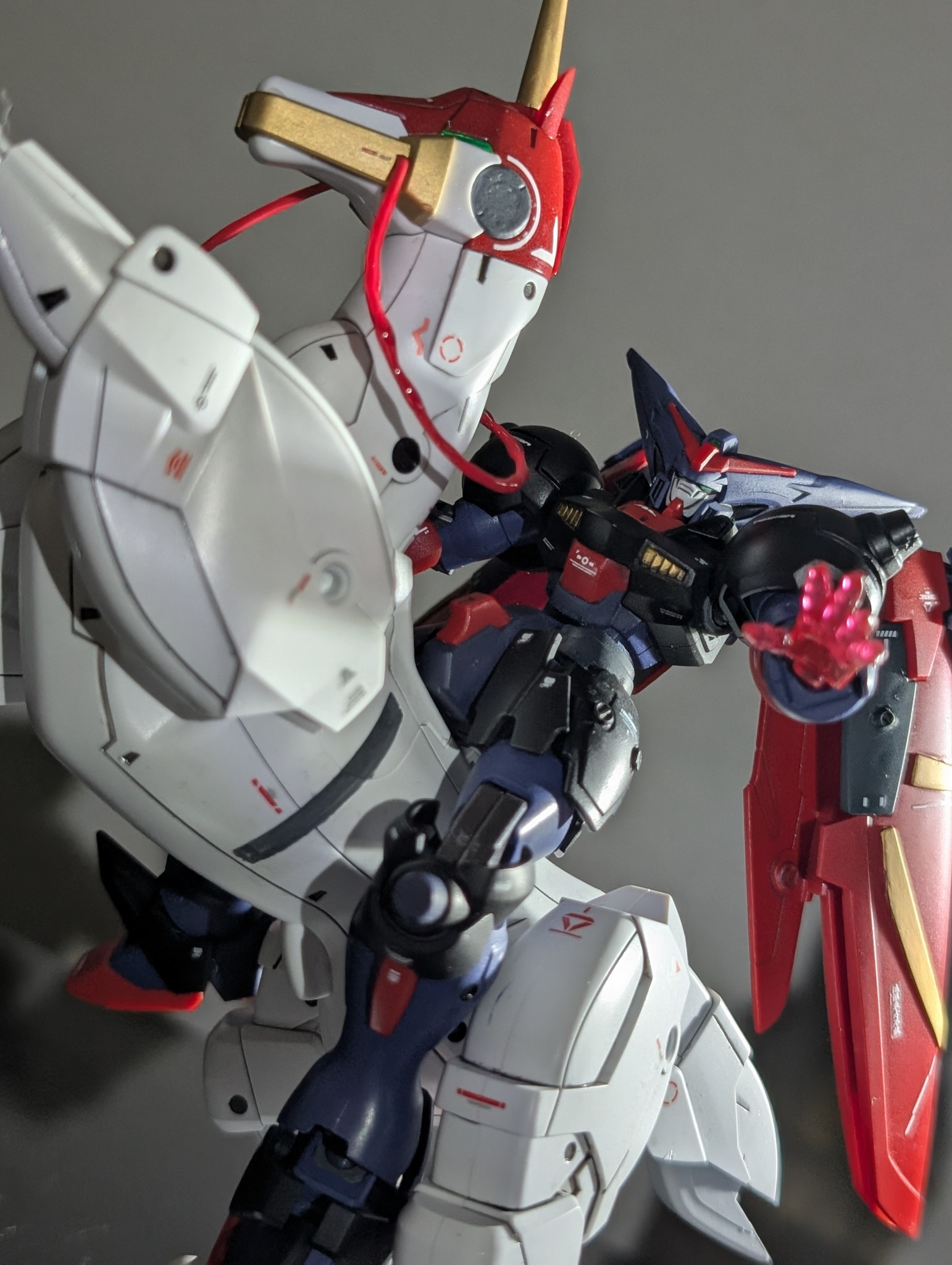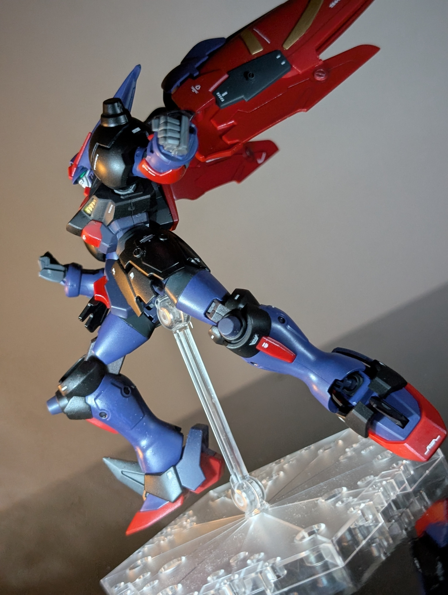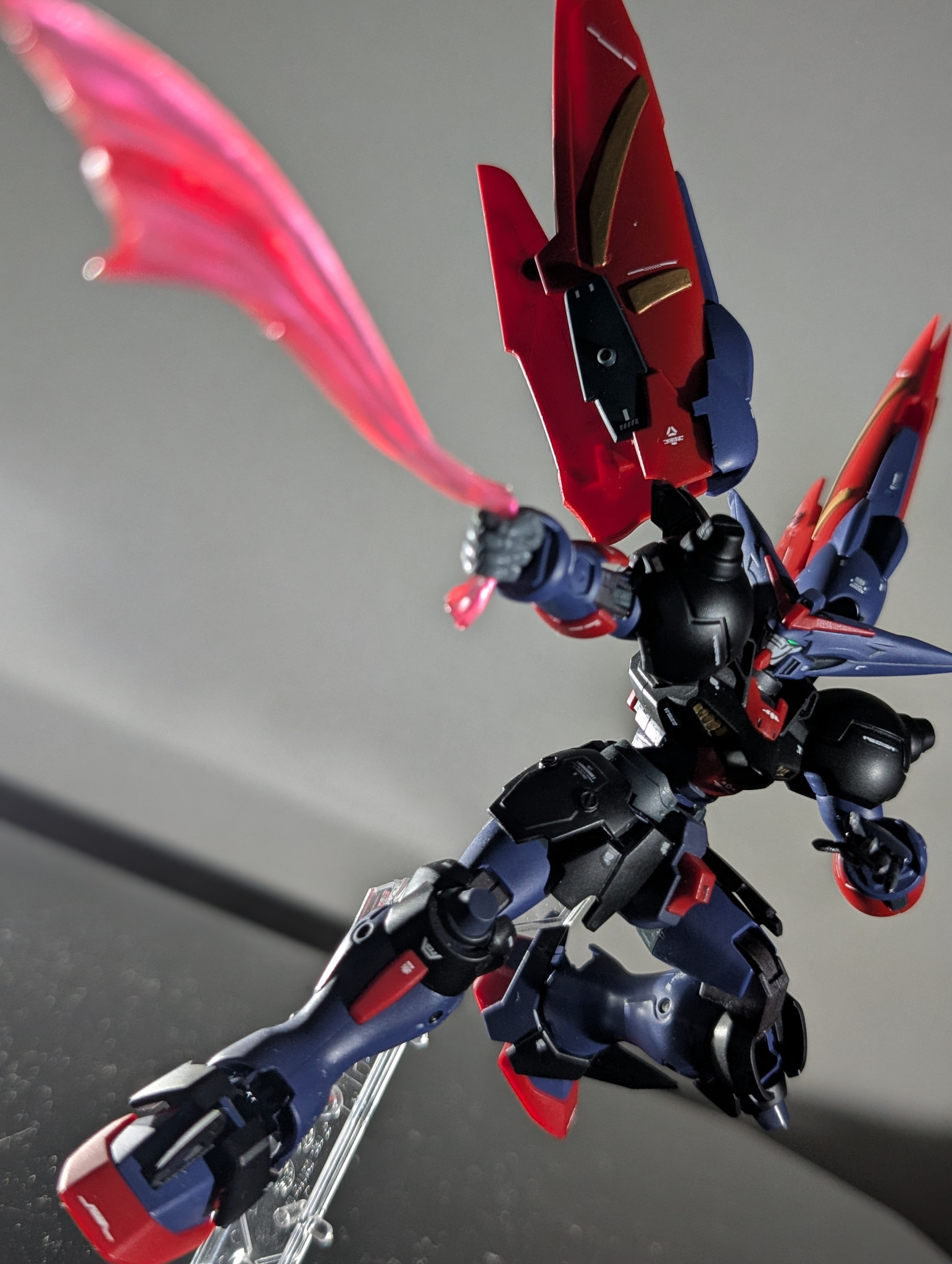 RGゴッドガンダムと比べると、どうしてもやや固かった印象ですが結構動くのでは!と、調子乗ってポージングしてると、この後腰が根元から折れて凹みました…