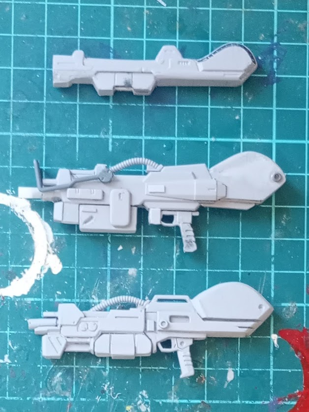 本体がデカくなったのでビームライフルもボリューミーにしようと試作の繰り返し。