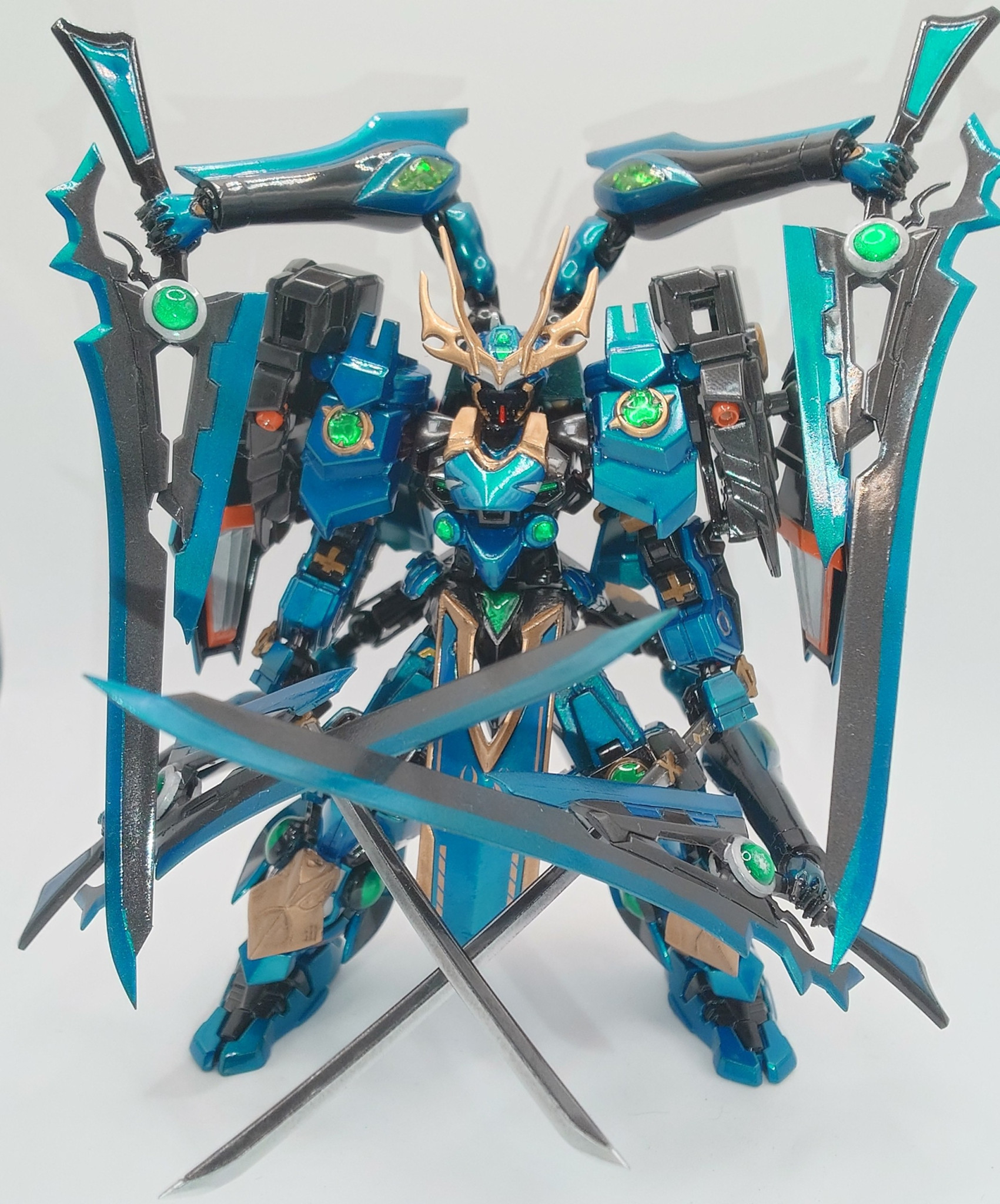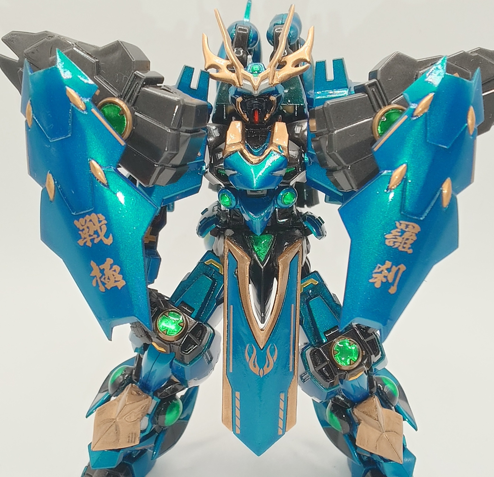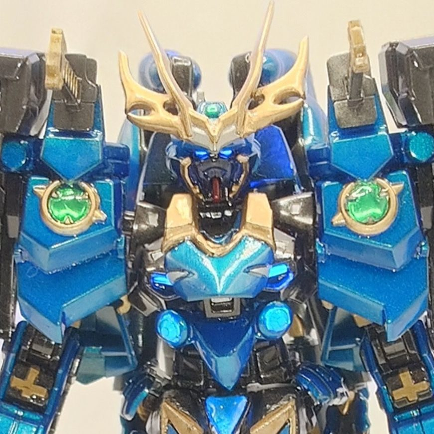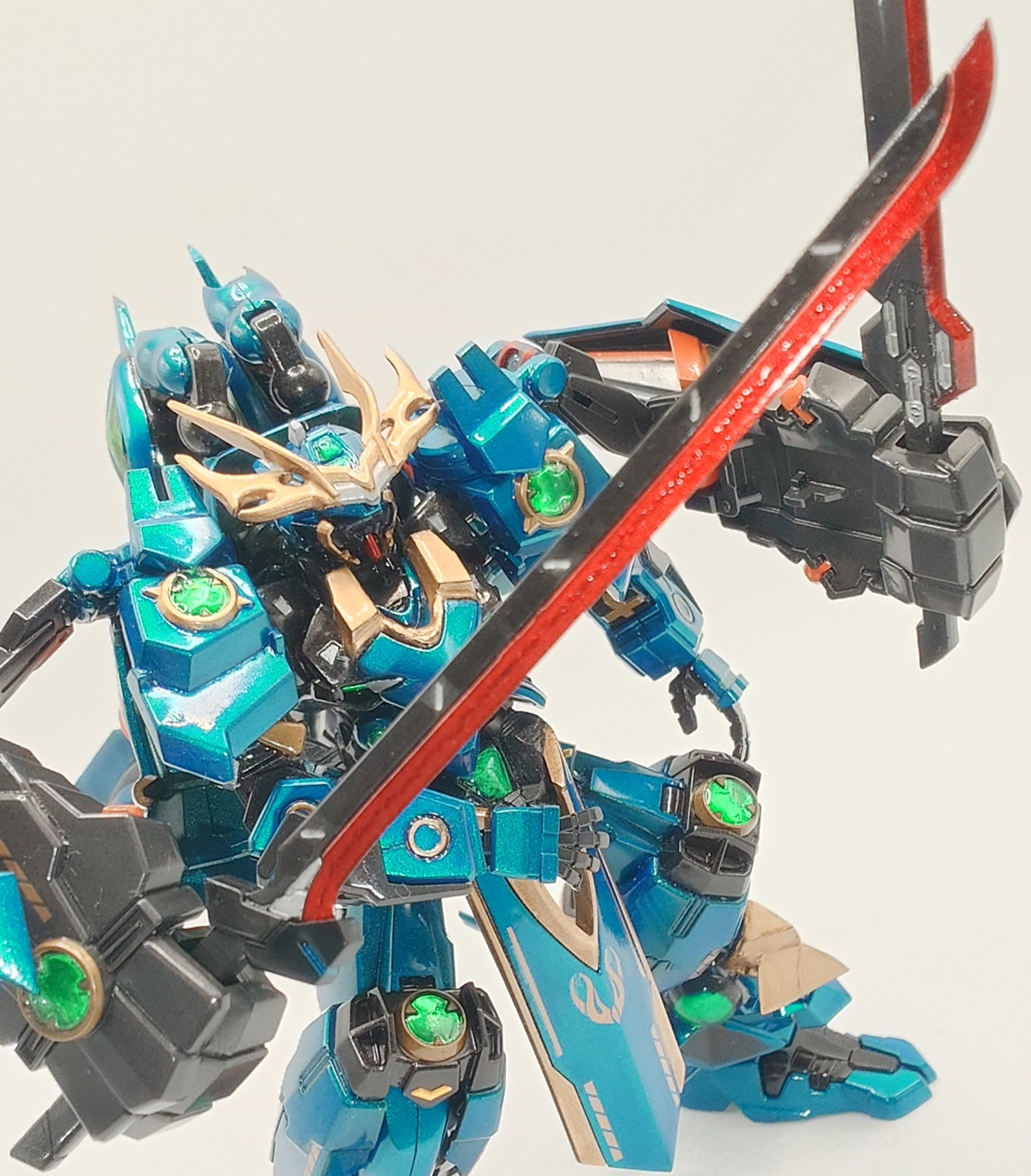 戦国アストレイを見てから、ナイツマのイカルガとミキシングしてみたいと思ったのがきっかけでした。本当は『鬼』のデカールを貼りたかったのですが見つからず、少し残念でした。