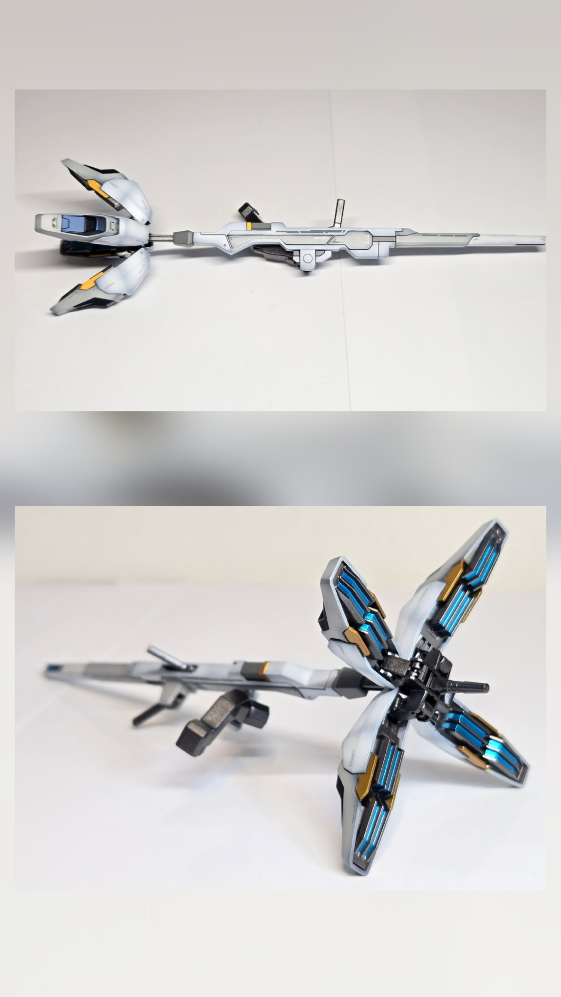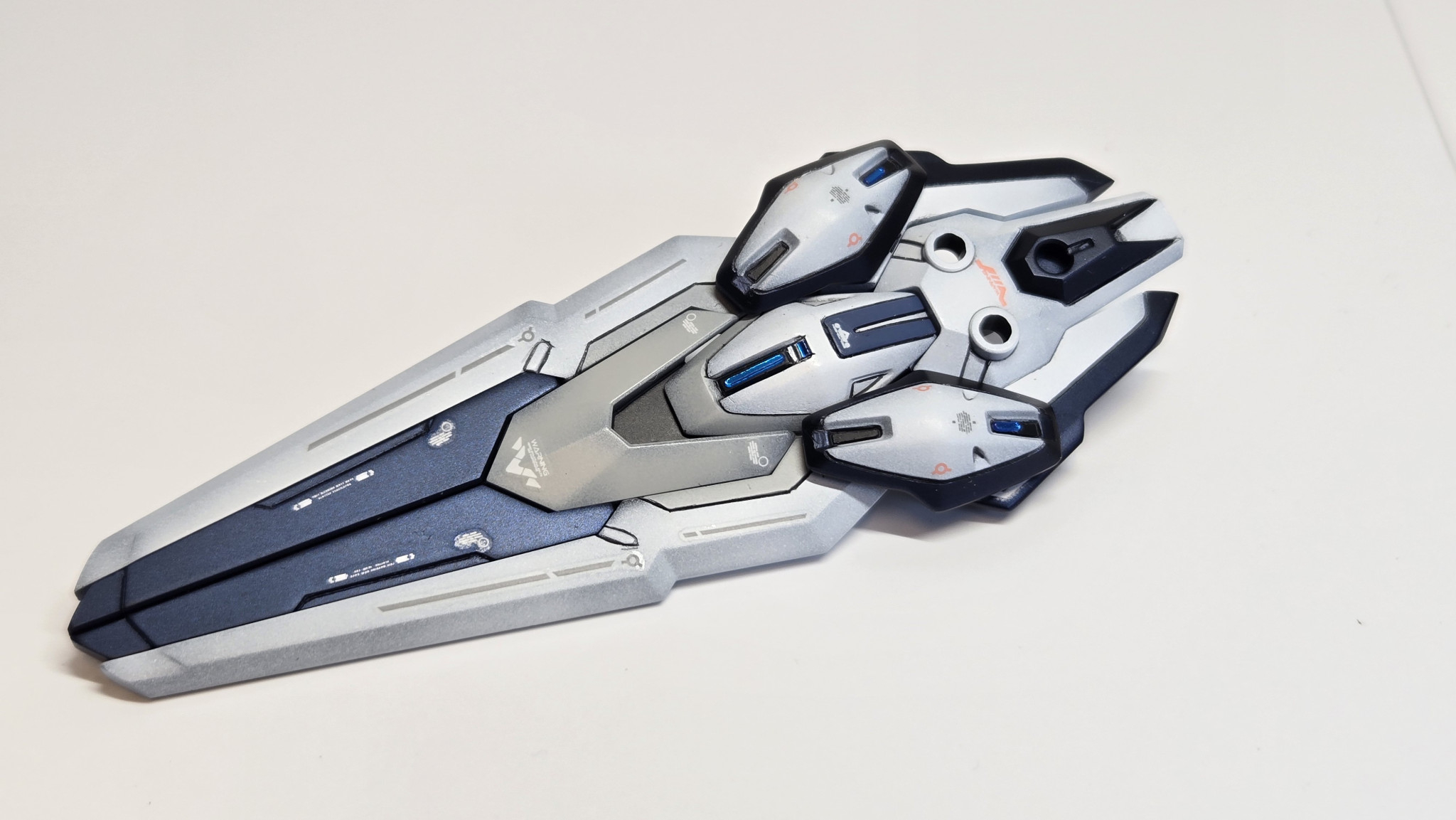 前作に続き、2作目の黒立ち上げのグラデ塗装。ホワイト、ニュートラルグレー、プリズムブルーブラックの3色をメインカラーに、スターブライトゴールドと少し調色したミディアムブルーをアクセントカラーにしました。