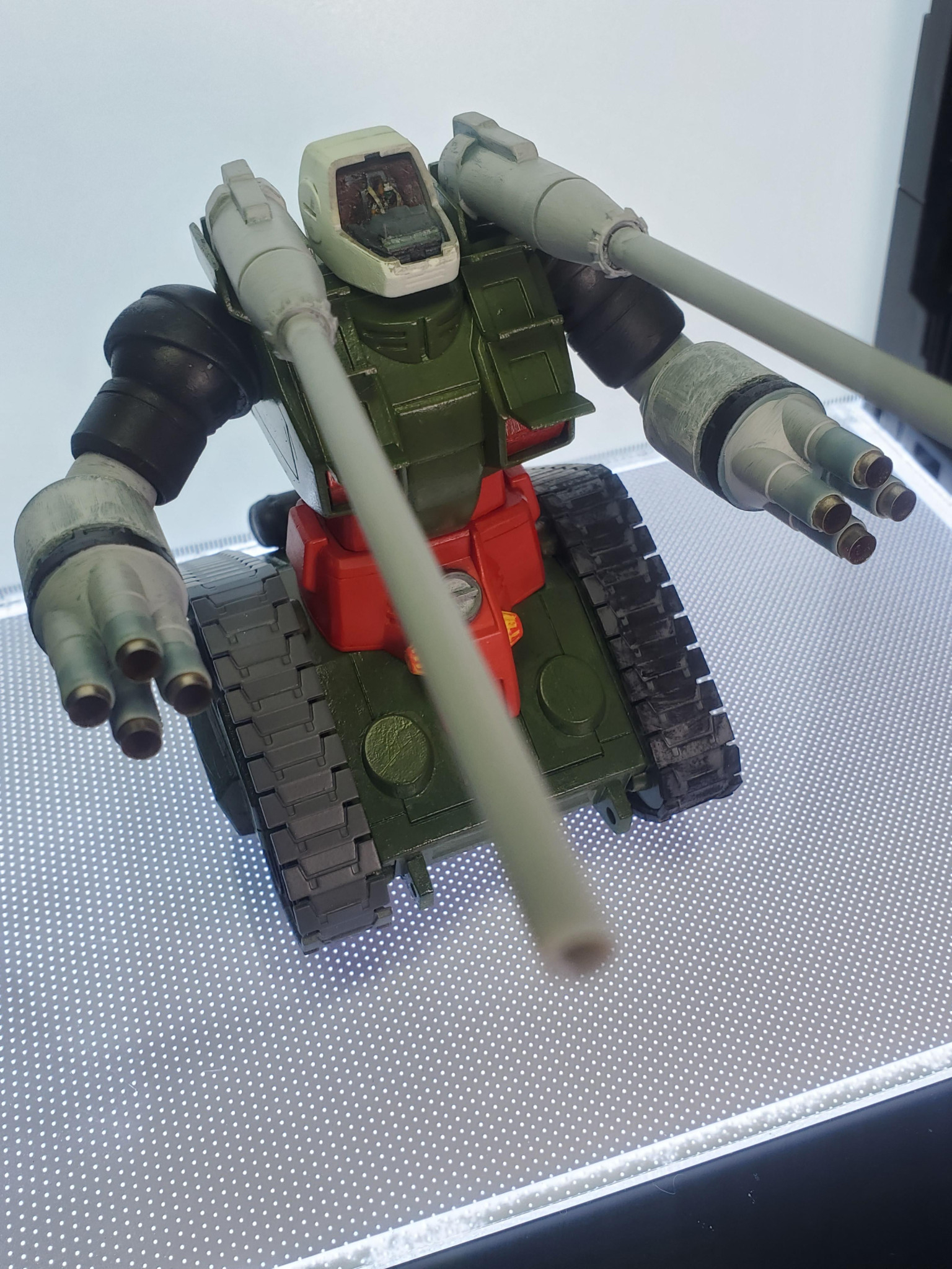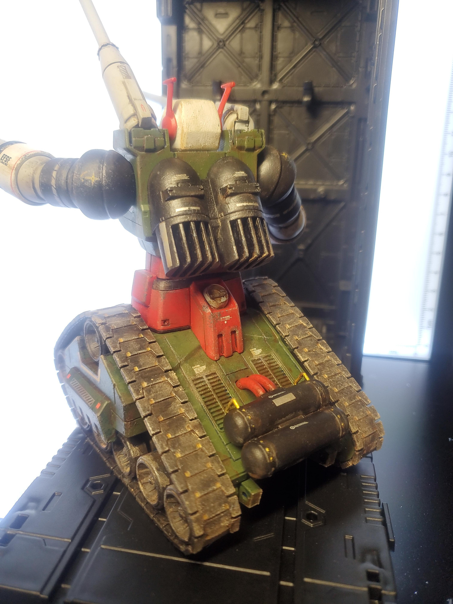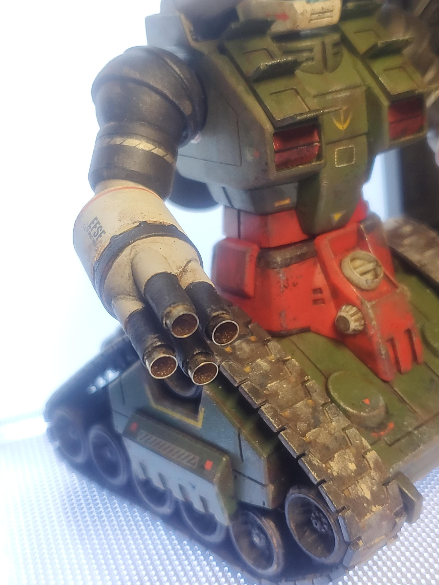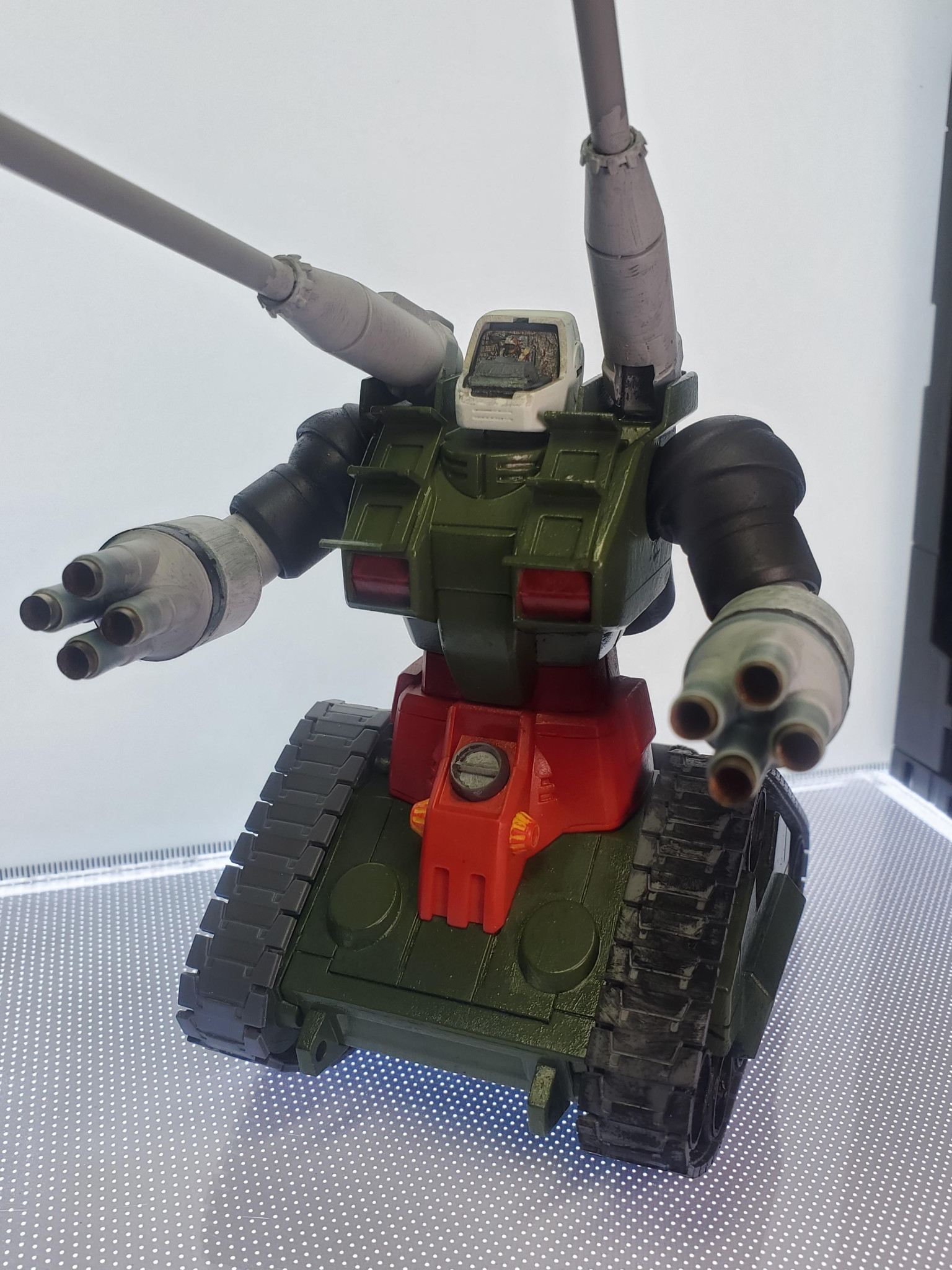 最後に逆アングルからも1枚。ガンタンクを彩色込みで完成させたことが初めてですので、なかなかに感動しました。もう一機くらい作ってみたいと思いますので、いずれまたアップしようと思ってます。