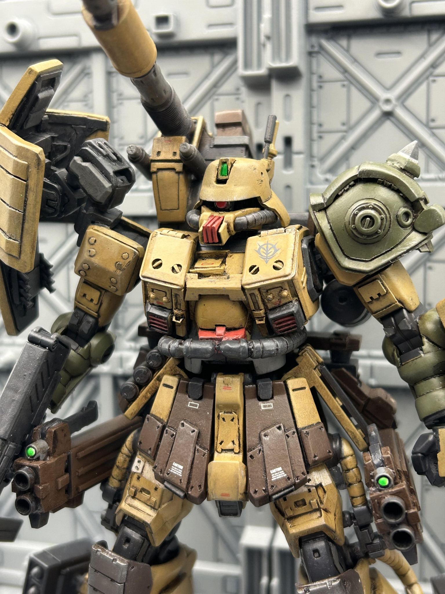 HGUC 1/144 MS-06Fz ザクII改ベースで旧キットのザク・キャノンのパーツを組み込む形で作成しました。HGUCのザクキャノンが出てしまっているので、差別化して旧キットを活かすのにはどうすれば良いか考えた結果この形になりました。でも改めて見るとFZザクも2008年製でずいぶん古いキットなんですね…。ずっとうちのクローゼットで眠っていました…。