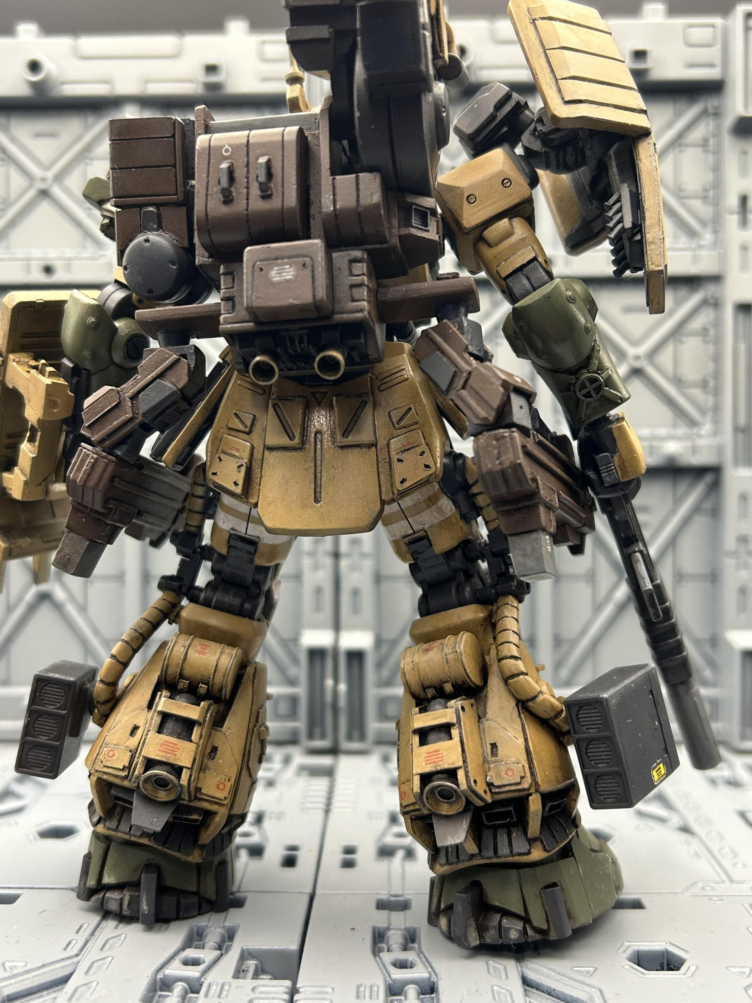 今回もできるだけザクキャノンやザク改から逸脱しないデザインを意識しました。武装ももりもりにしつつもキャノン以外はMMP80、ビックガン、3連装ミサイルポッドなど、通常のザク系統のものにしています。