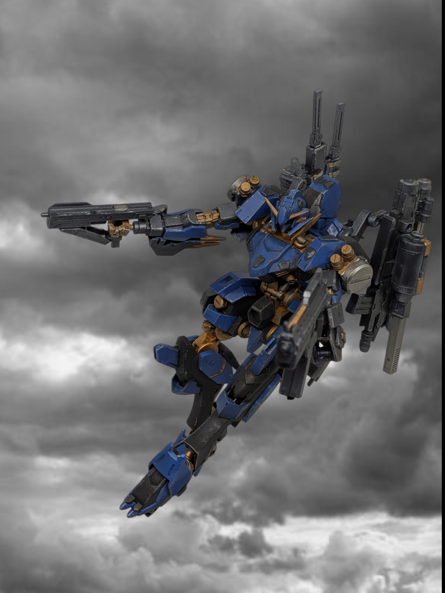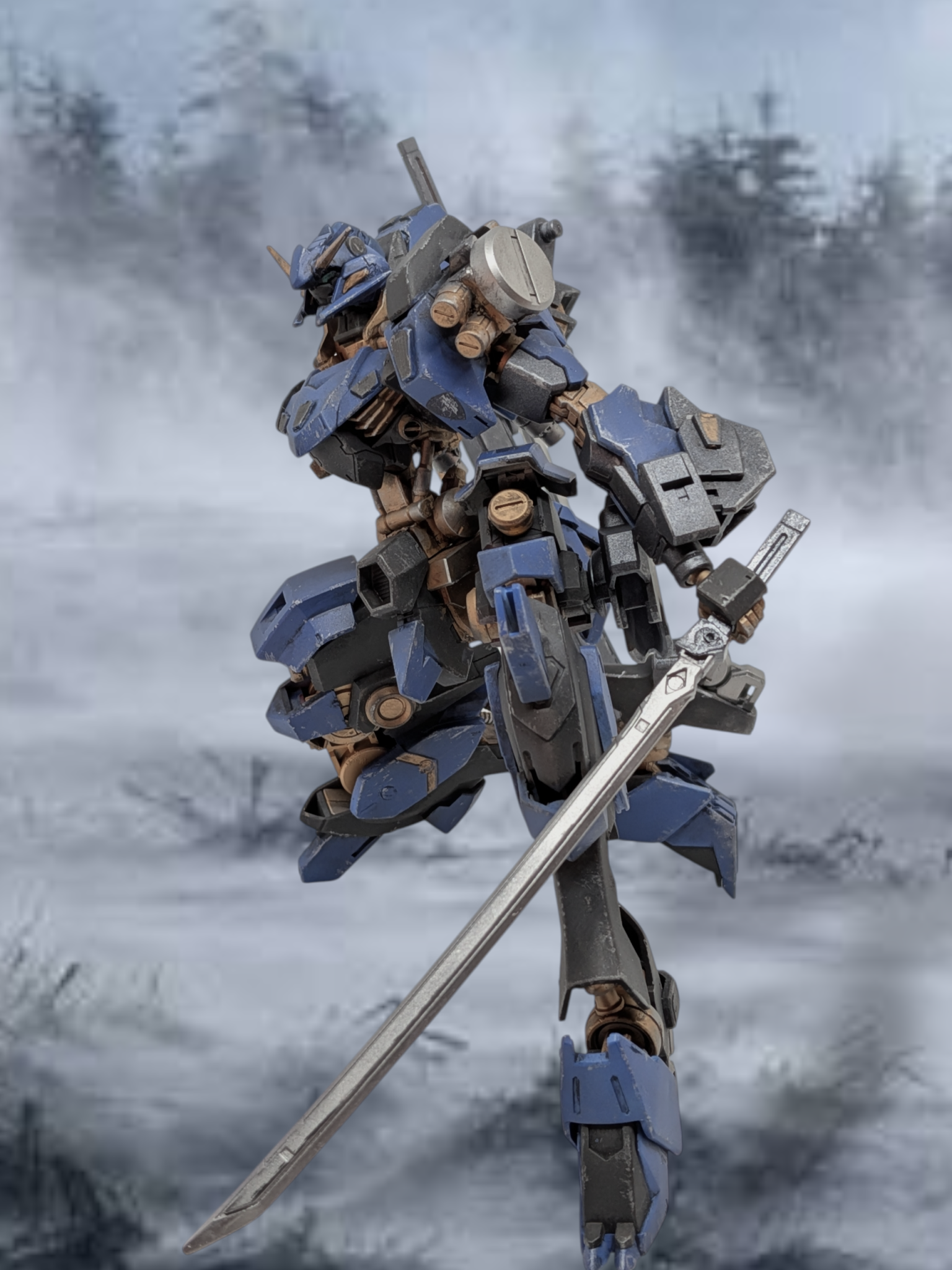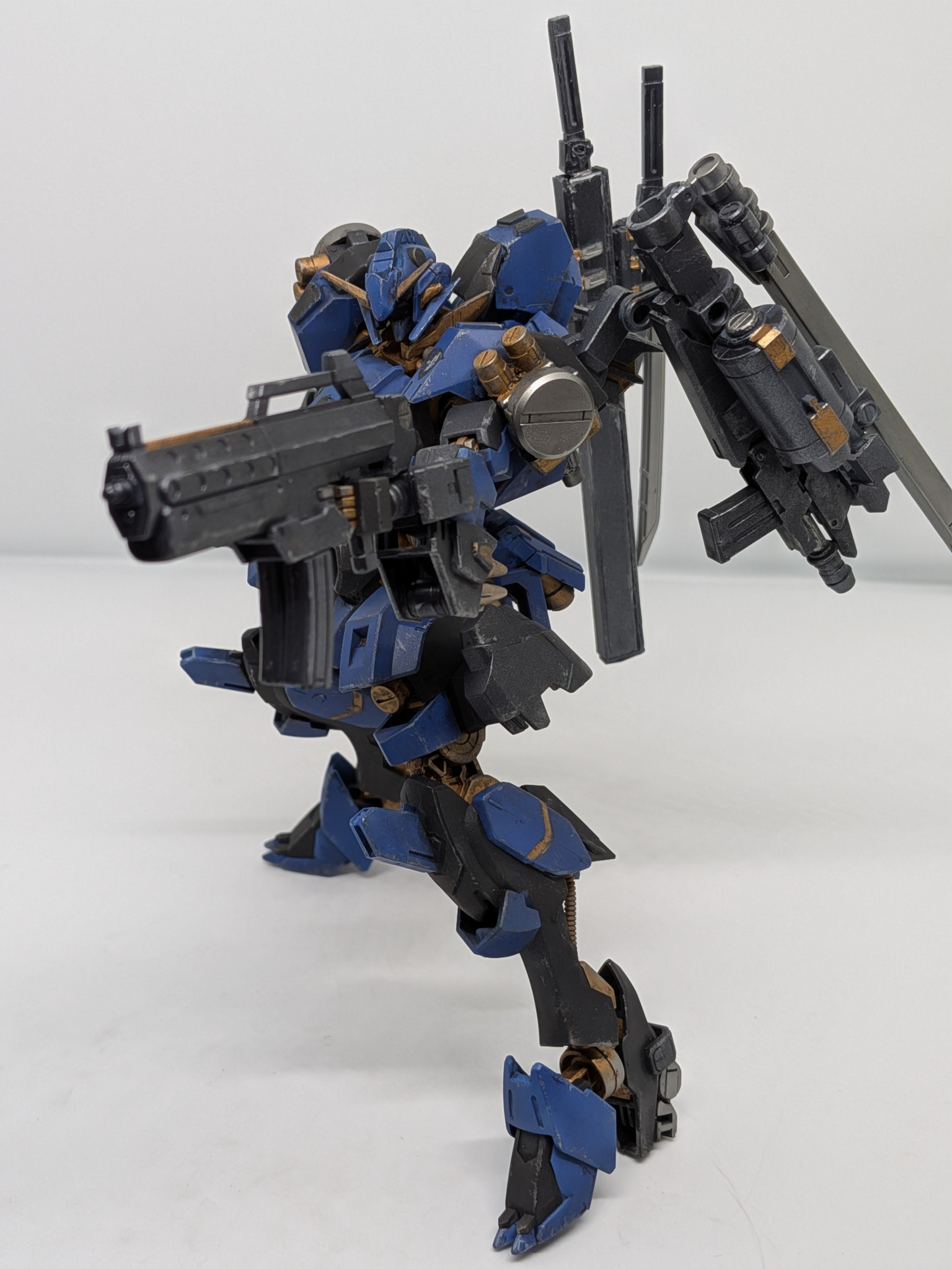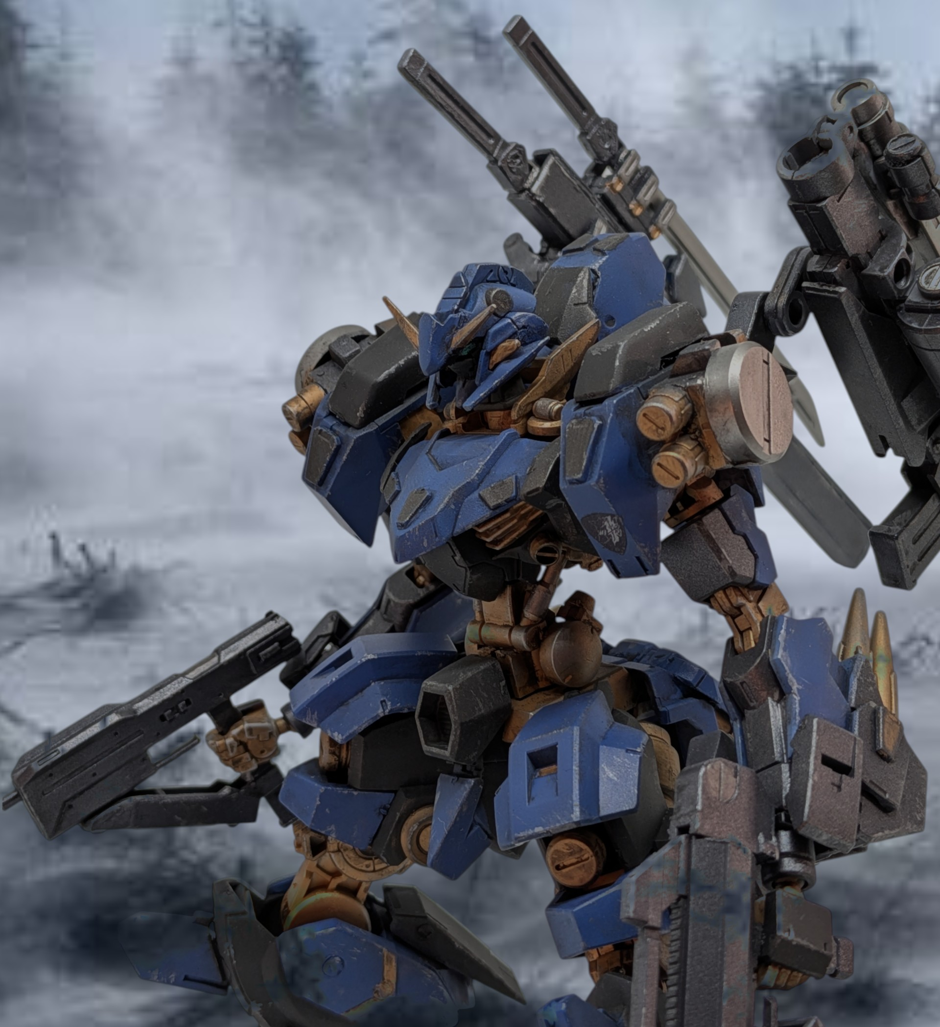 未確認機の内蔵された武装を擬似的に再現したことにより肩部EMPリアクターユニットとして搭載当時のパイロットの戦闘スタイルに合わせバックパックの肥大化と高推進、高速戦闘を可能に調整された