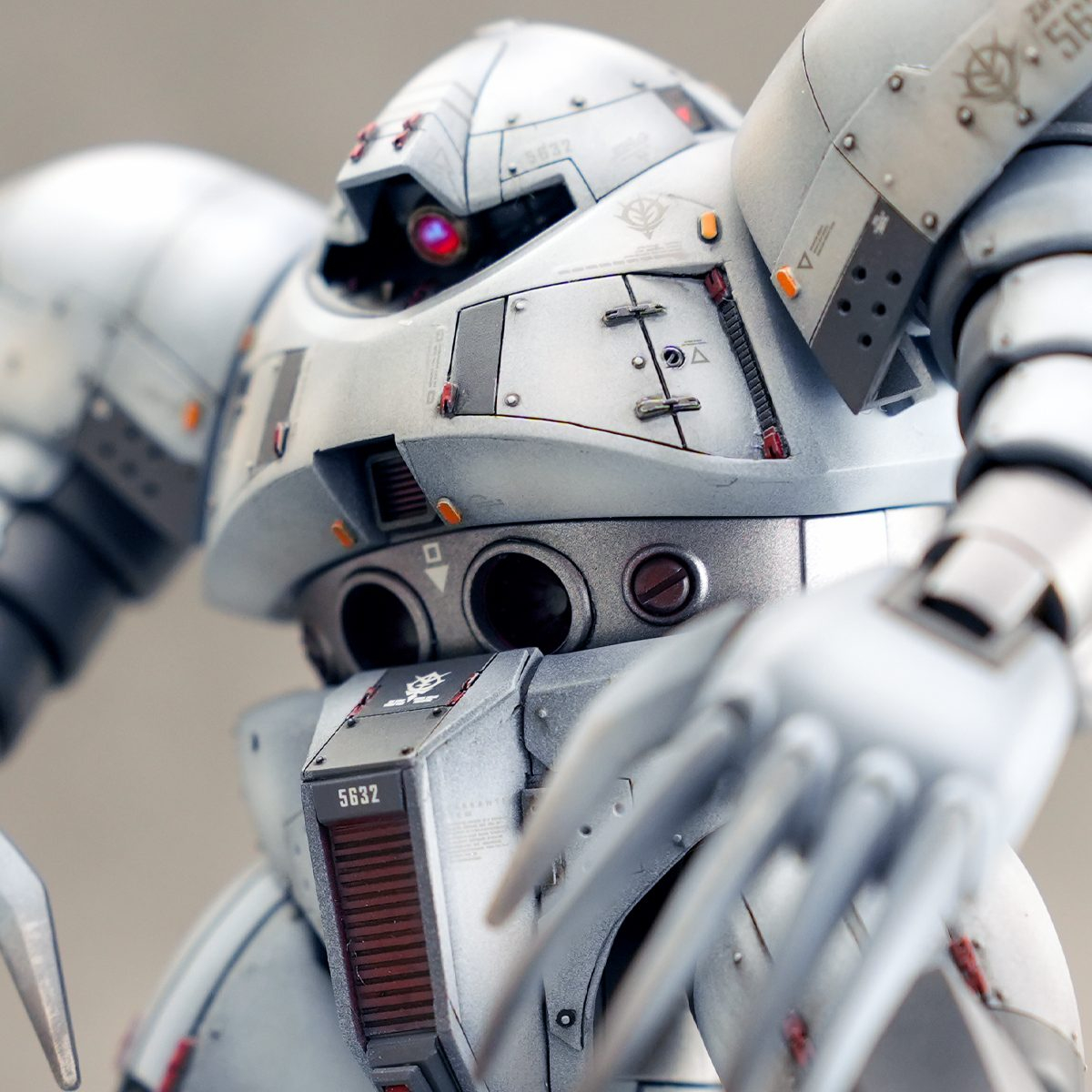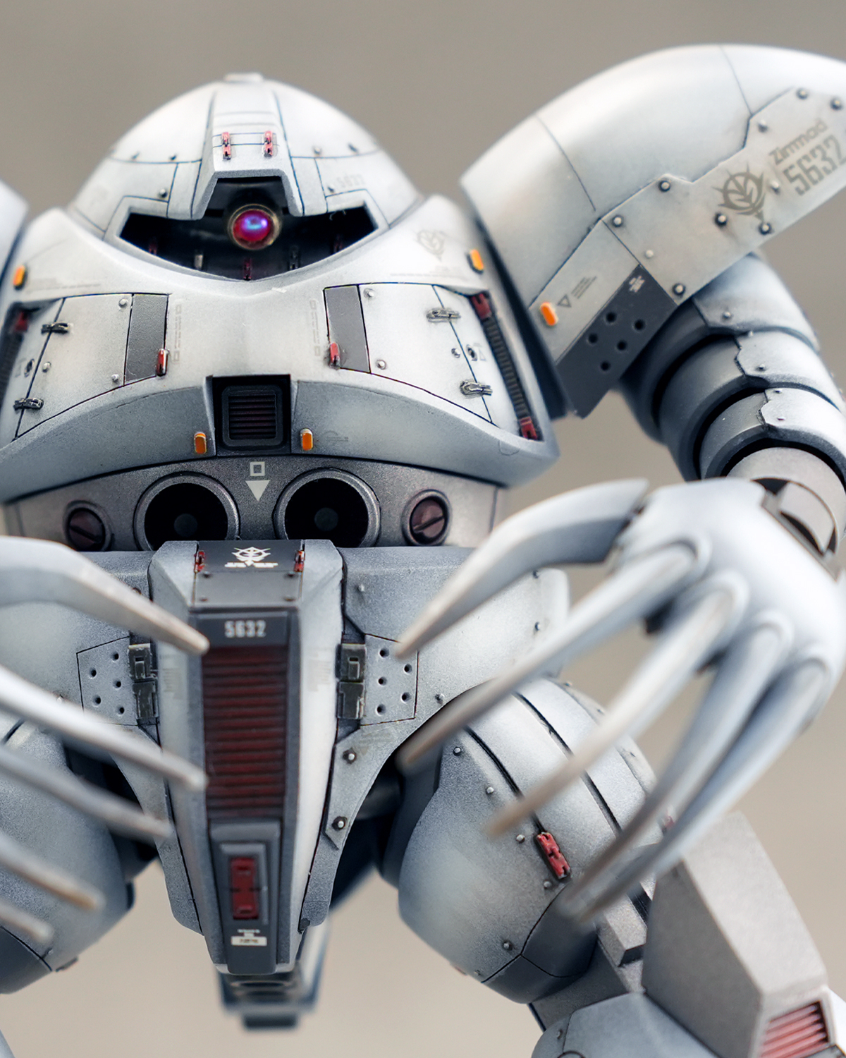 頭部→細かなディテールを追加、胴体にめり込むように加工、モノアイも可動するように作り替えました。