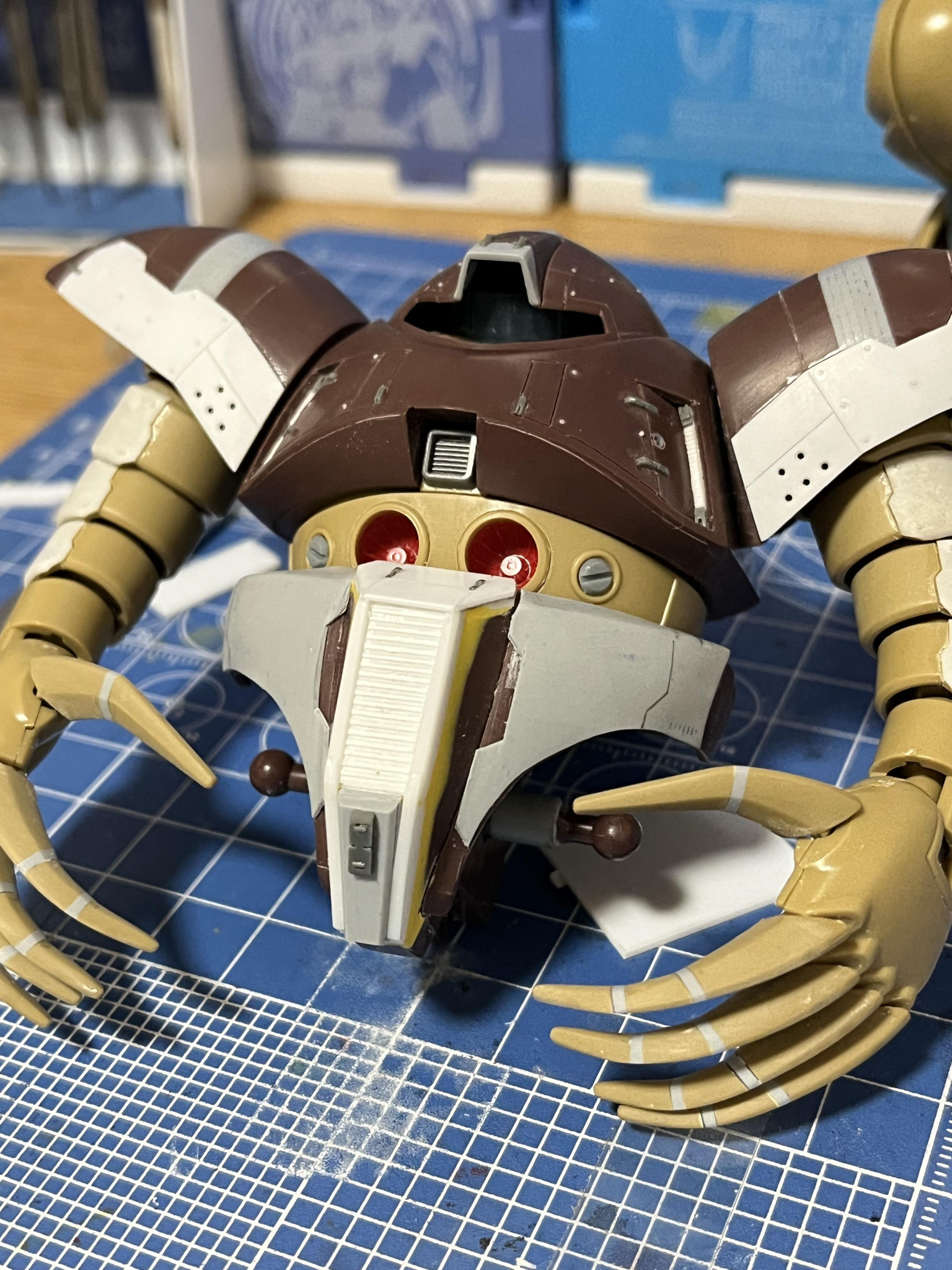 腕部→プラ板等でデティール追加、装甲を腕の各関節に追加、爪は長く2ミリほど延長してます。
