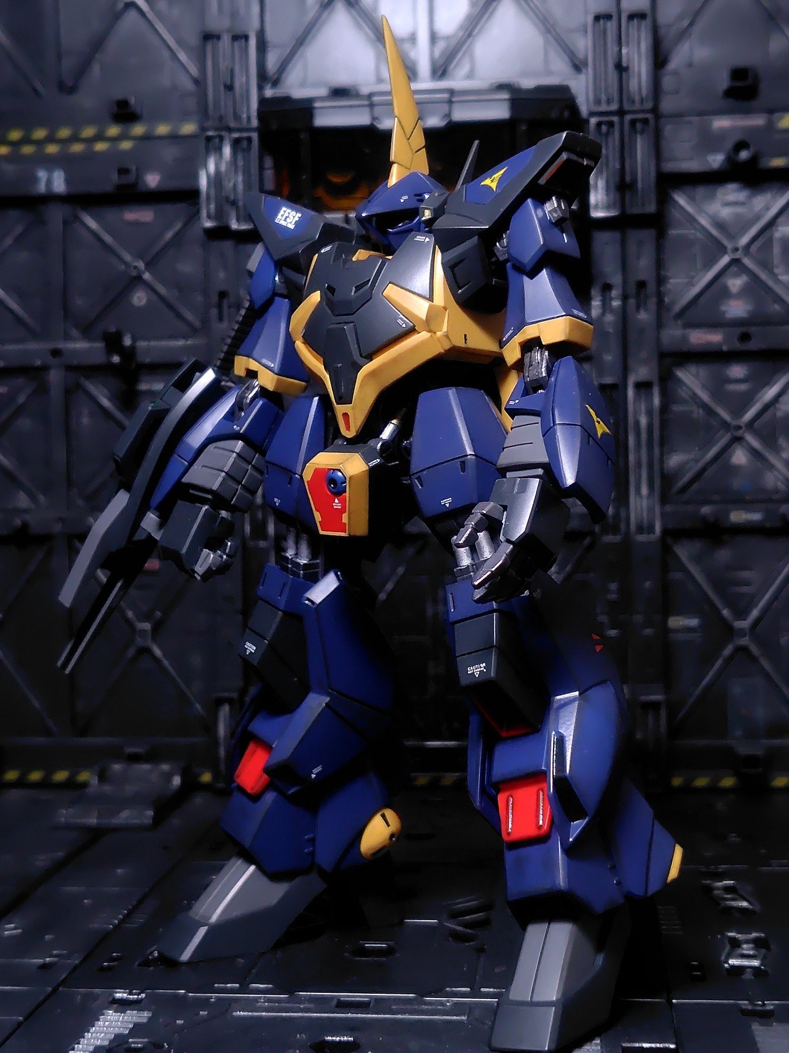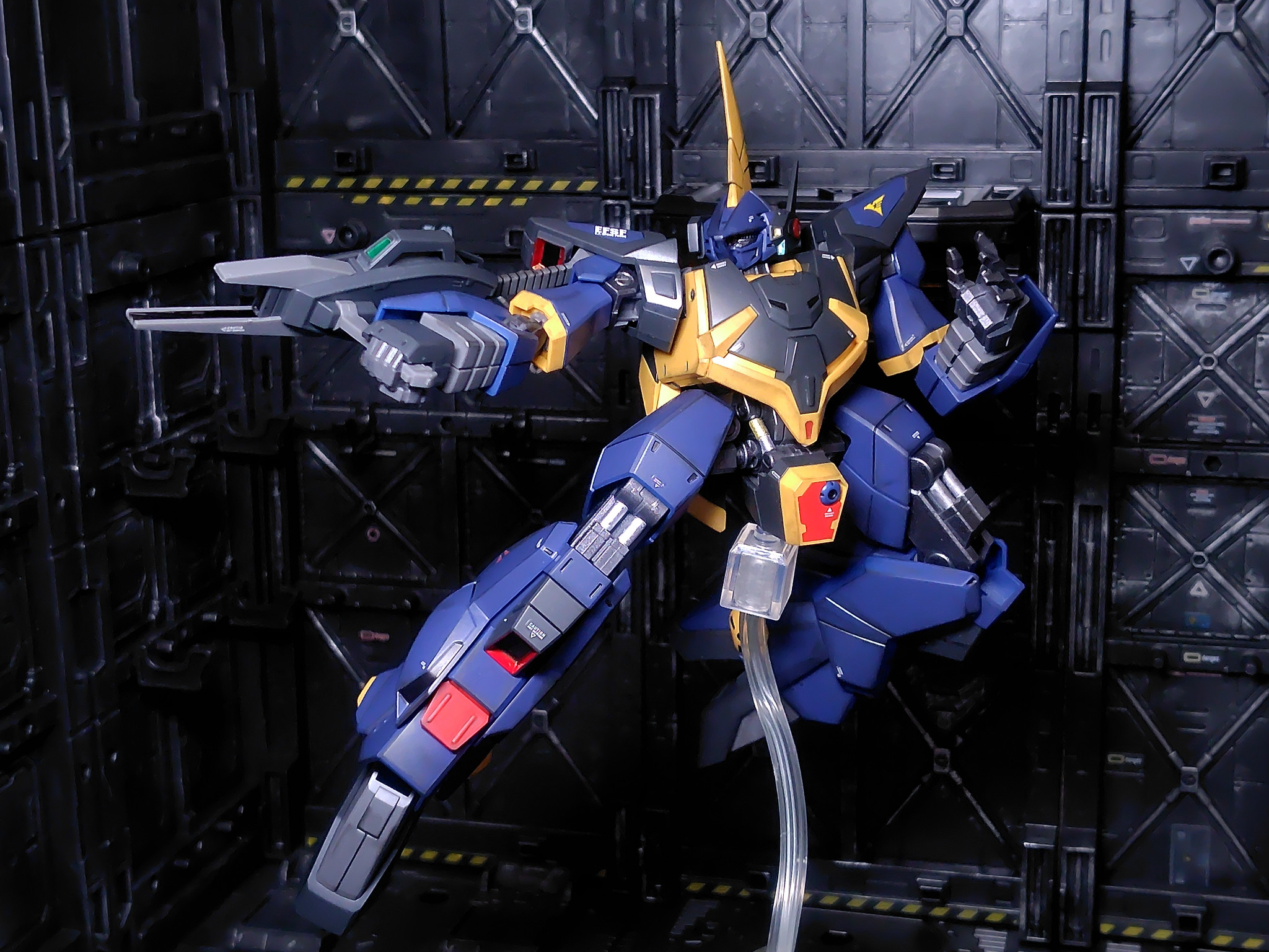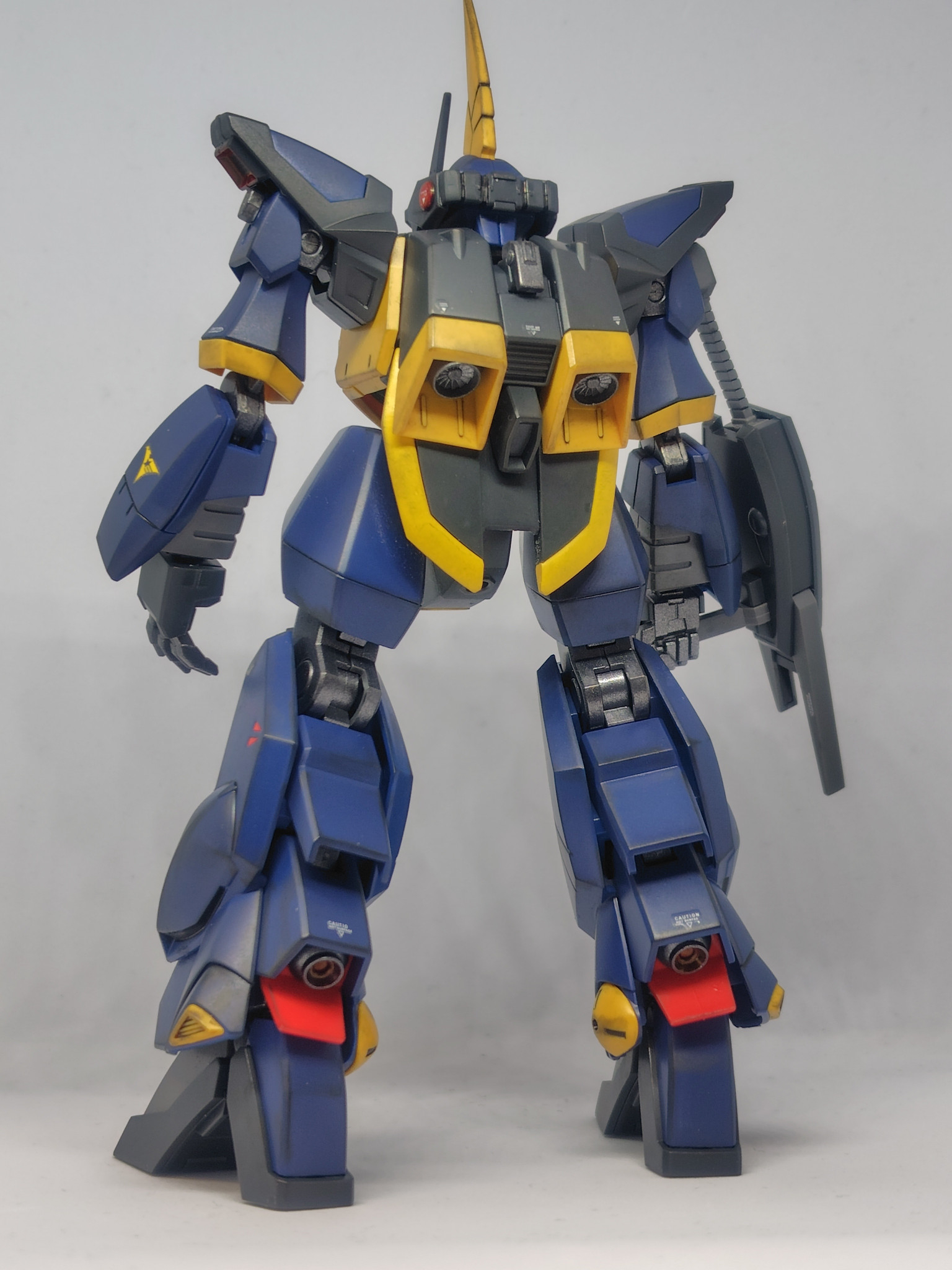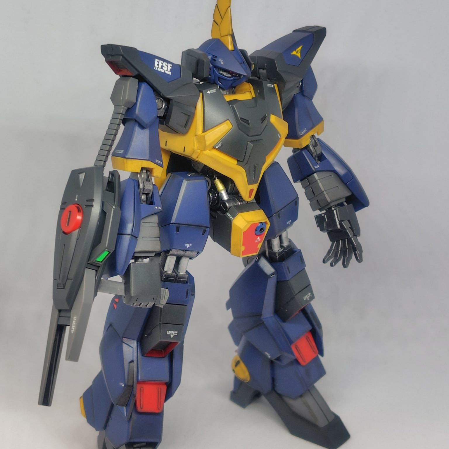ランナー塗装(ティターンズブルー2とガンメタル)、部分塗装、デカール、ウェザリング、半光沢トップコート仕上げです。