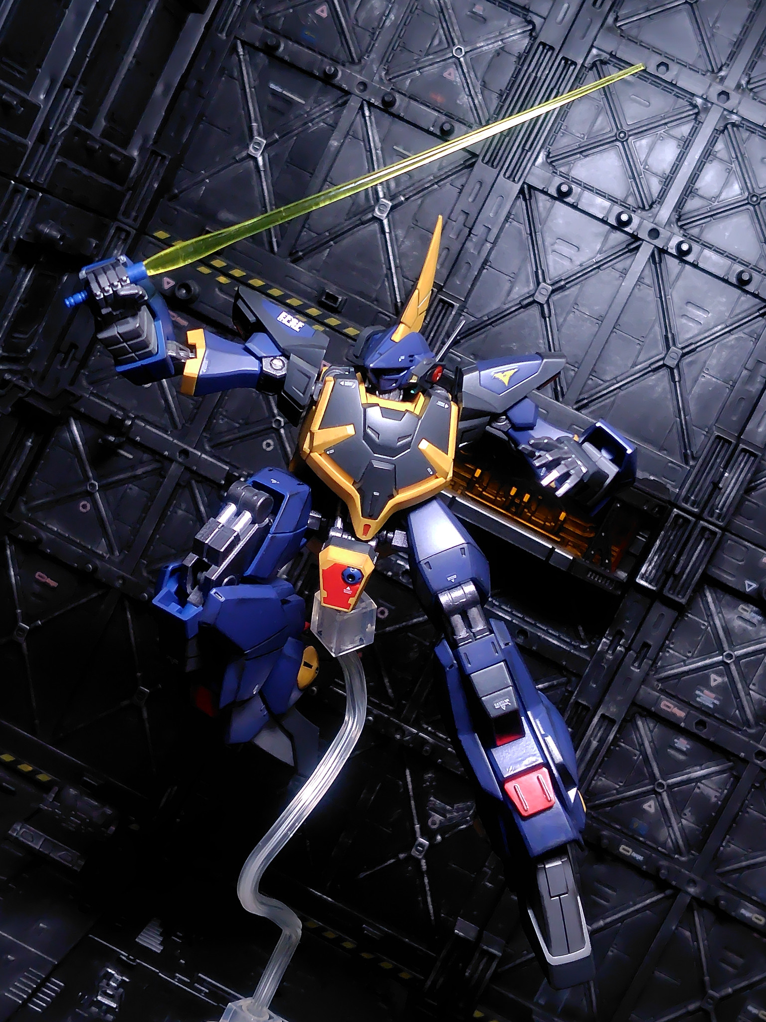 モノアイ周りの造形が素晴らしい。元々ディテール入りのクリアパーツなので墨入れと光沢クリアだけです。レール部分はガンメタル。