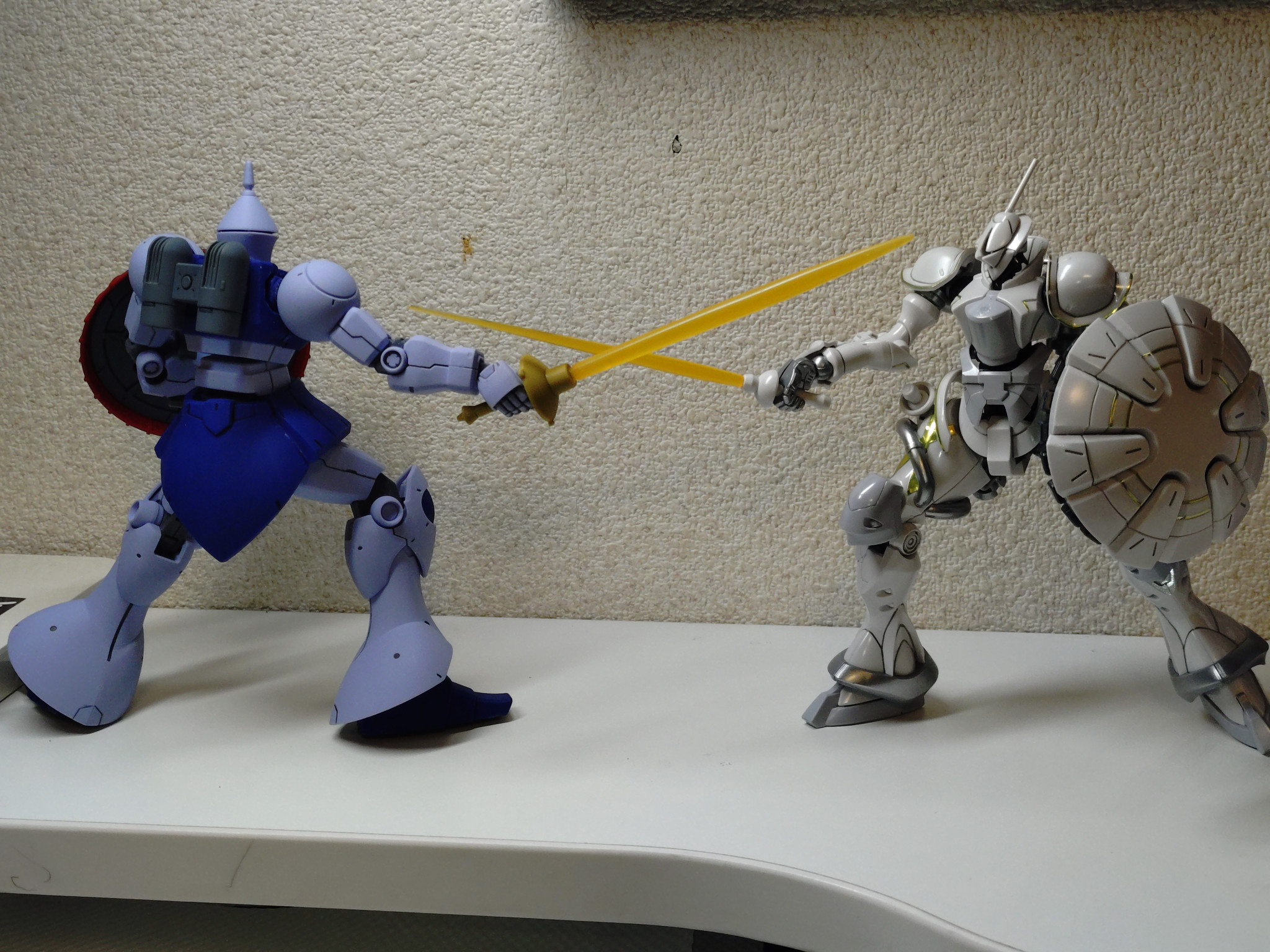 どちらも突きを表現する為に、他のキットには無い特殊な手首と、前方に押し出す向きで構えられるシールドが共通ですね。関節の可動域も勿論広い。
