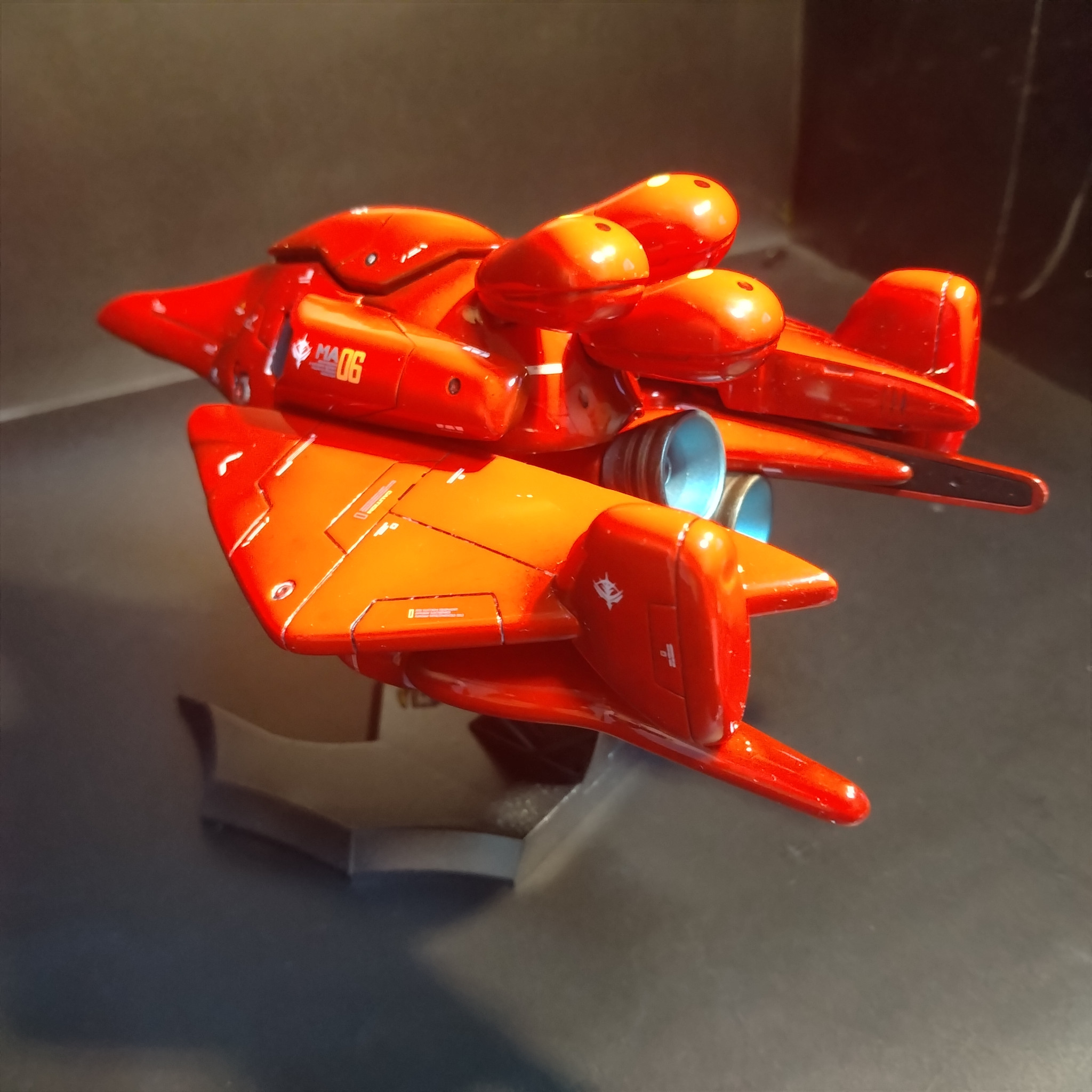 仕上げはクリアカラーで下地をオレンジにしてハイライト入れてるのでライトをあてる強さでオレンジッぽくなる様にしてます!😄箱絵が若干オレンジ系に見えたので!