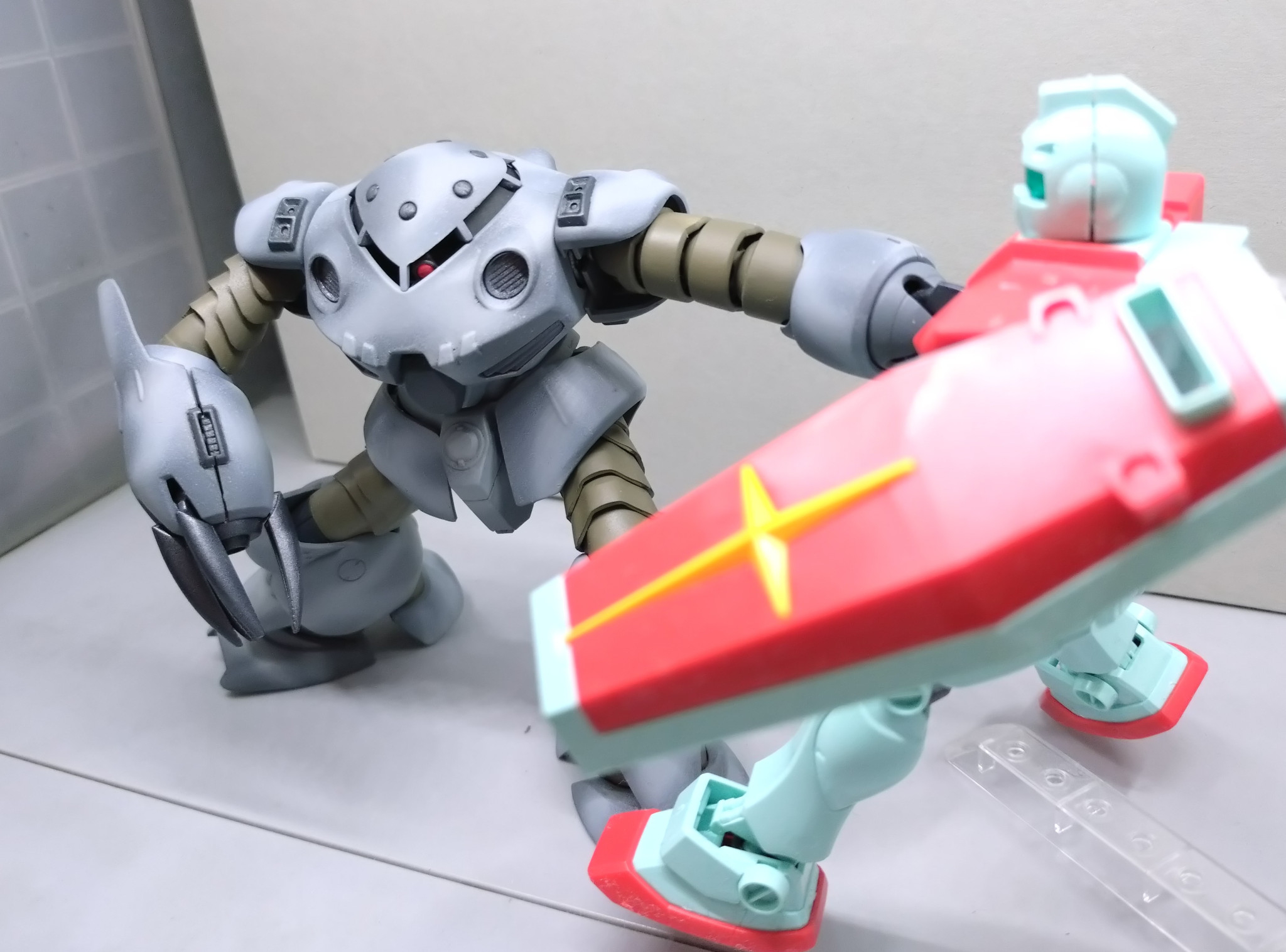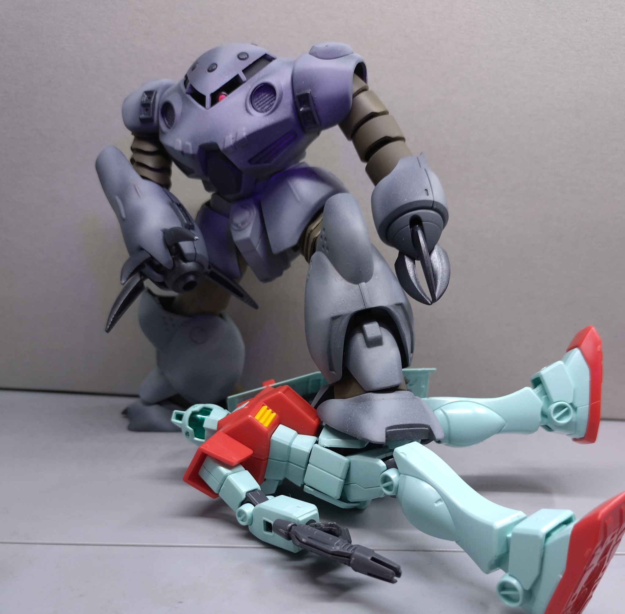 大戦末期のジオンでも、ズゴックEの補修パーツを用意できず、他の機体のパーツで代用する場面があったことでしょう。