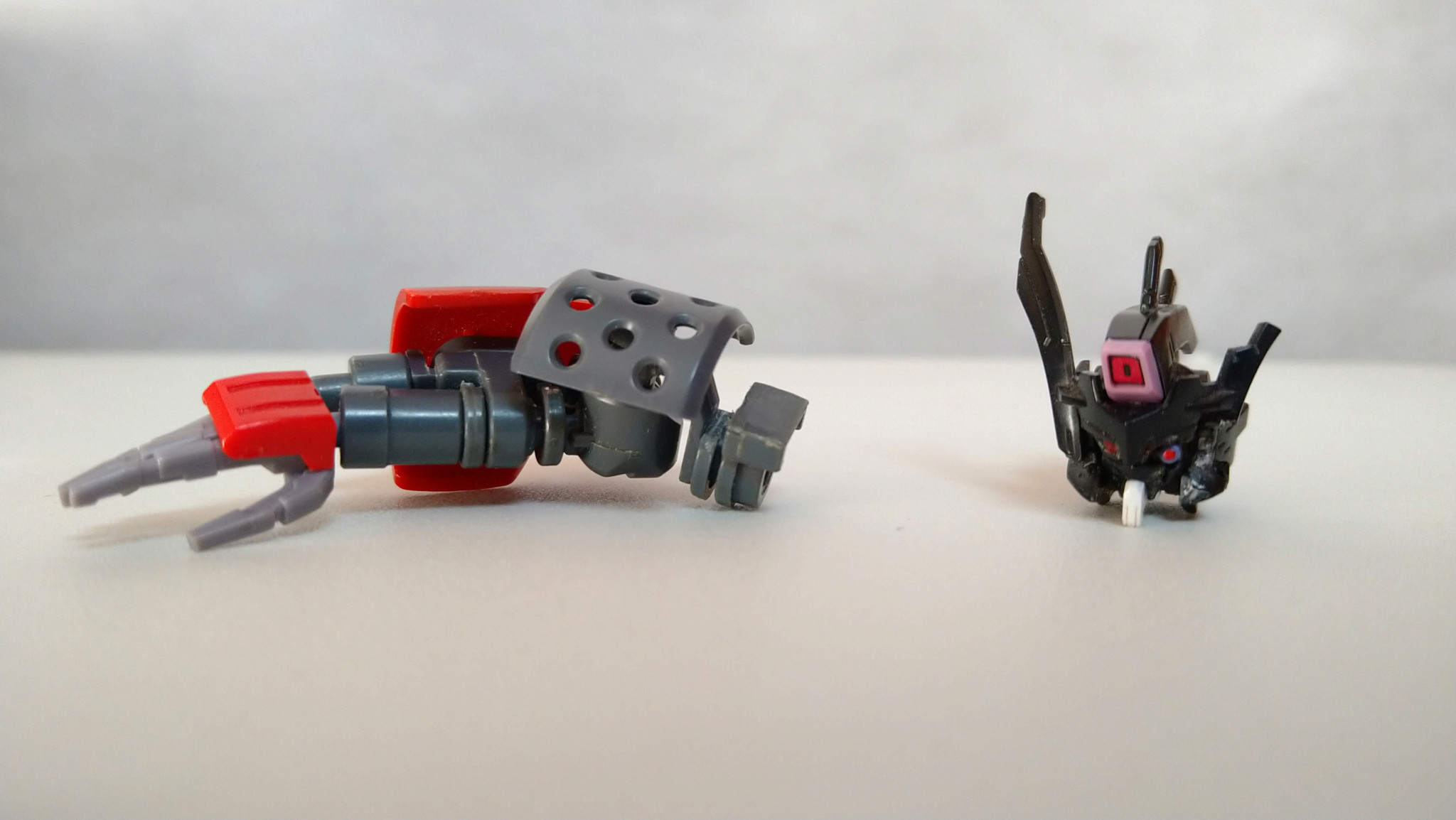 元のガンダムウヴァルと並べてみました。共通箇所はけっこうあるはずなんですが、だいぶ印象が違う。流石7年