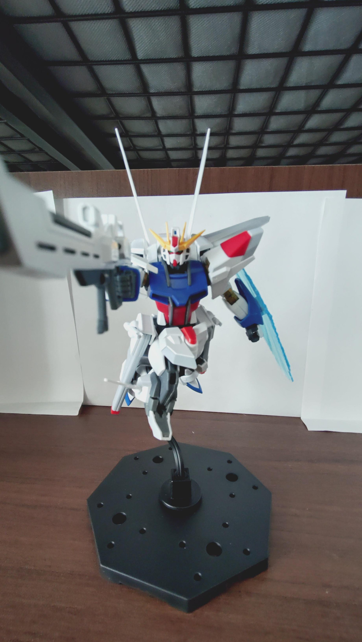 本機は第二次ヤキンドゥーエ攻防戦の後、キラ・ヤマトが大破したフリーダムに変わり運用されたドラグーンストライクガンダムをC.E.75年時点の技術によりアップデートした……という設定のガンプラバトル専用機