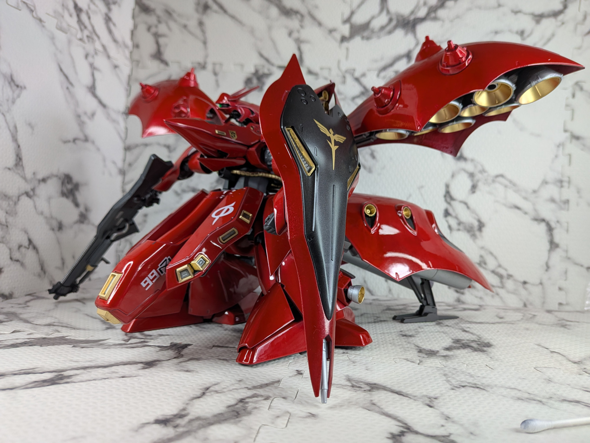 足には追加バーニアとしてバンダイMSバーニア03を取り付け、内側にはバーニアはありますが見える化しました