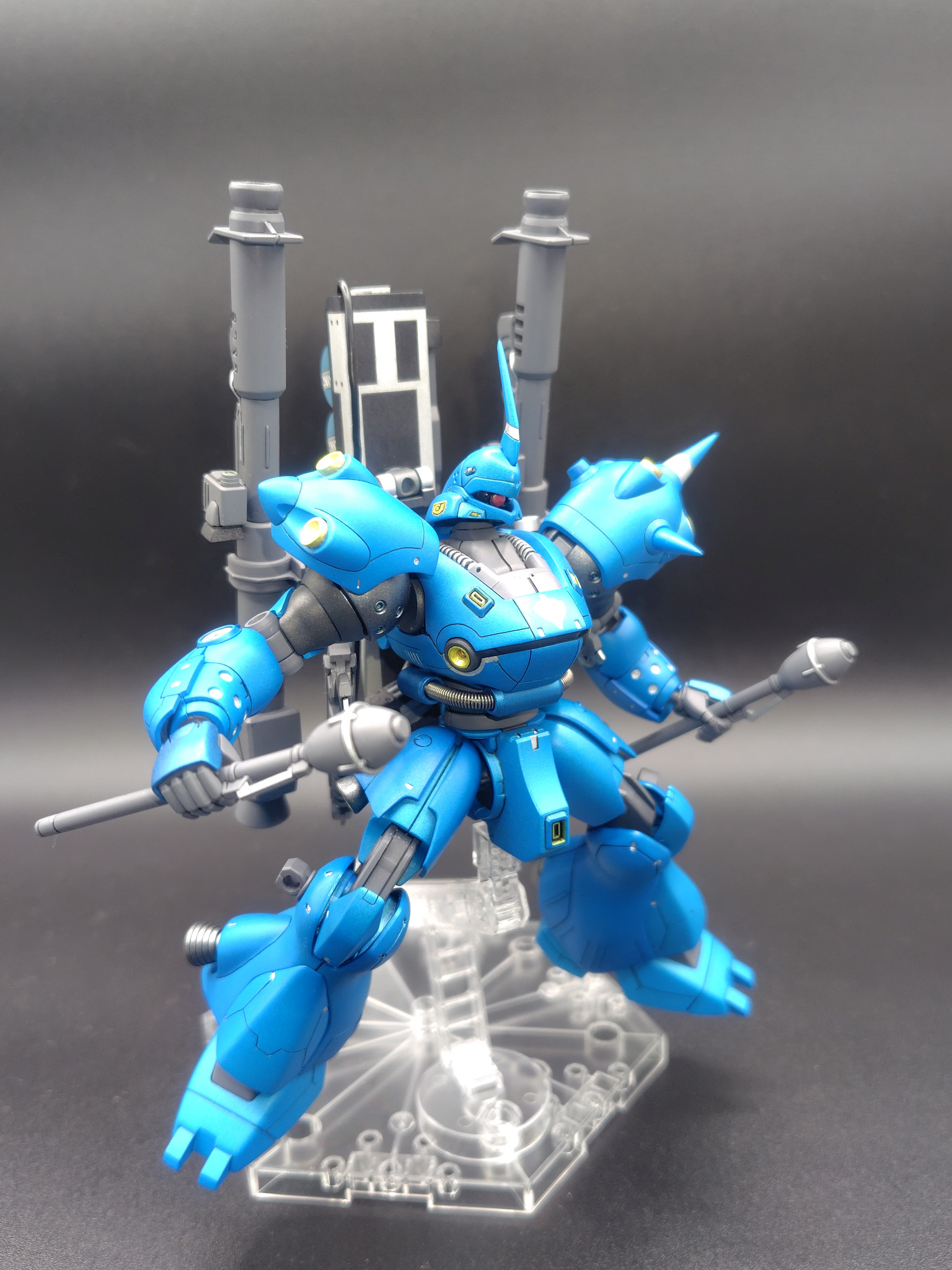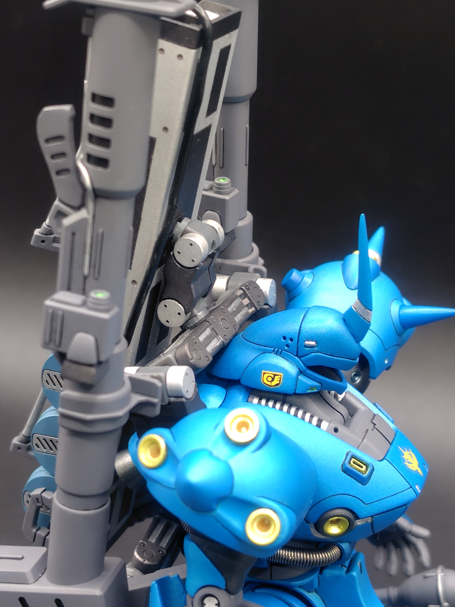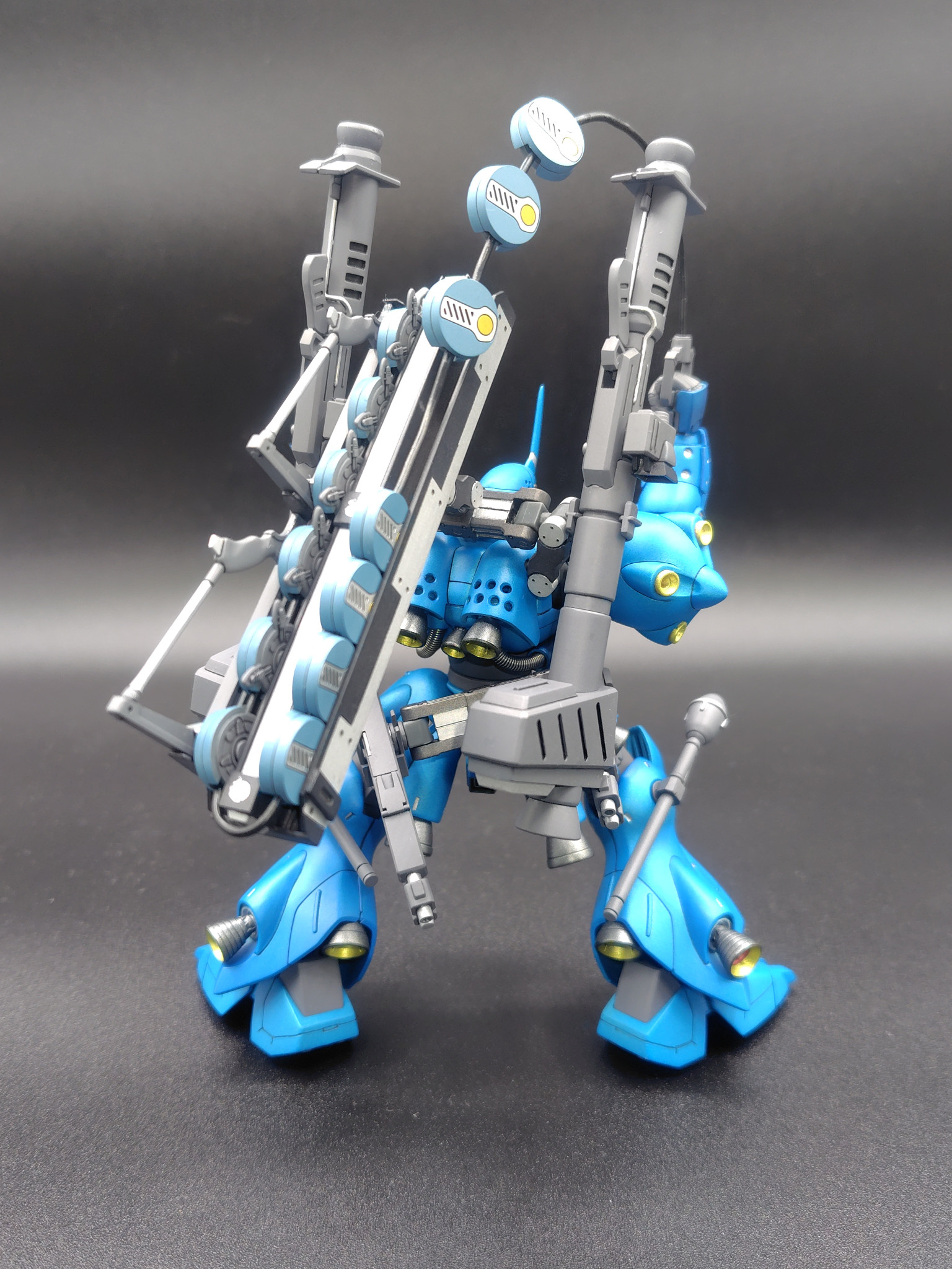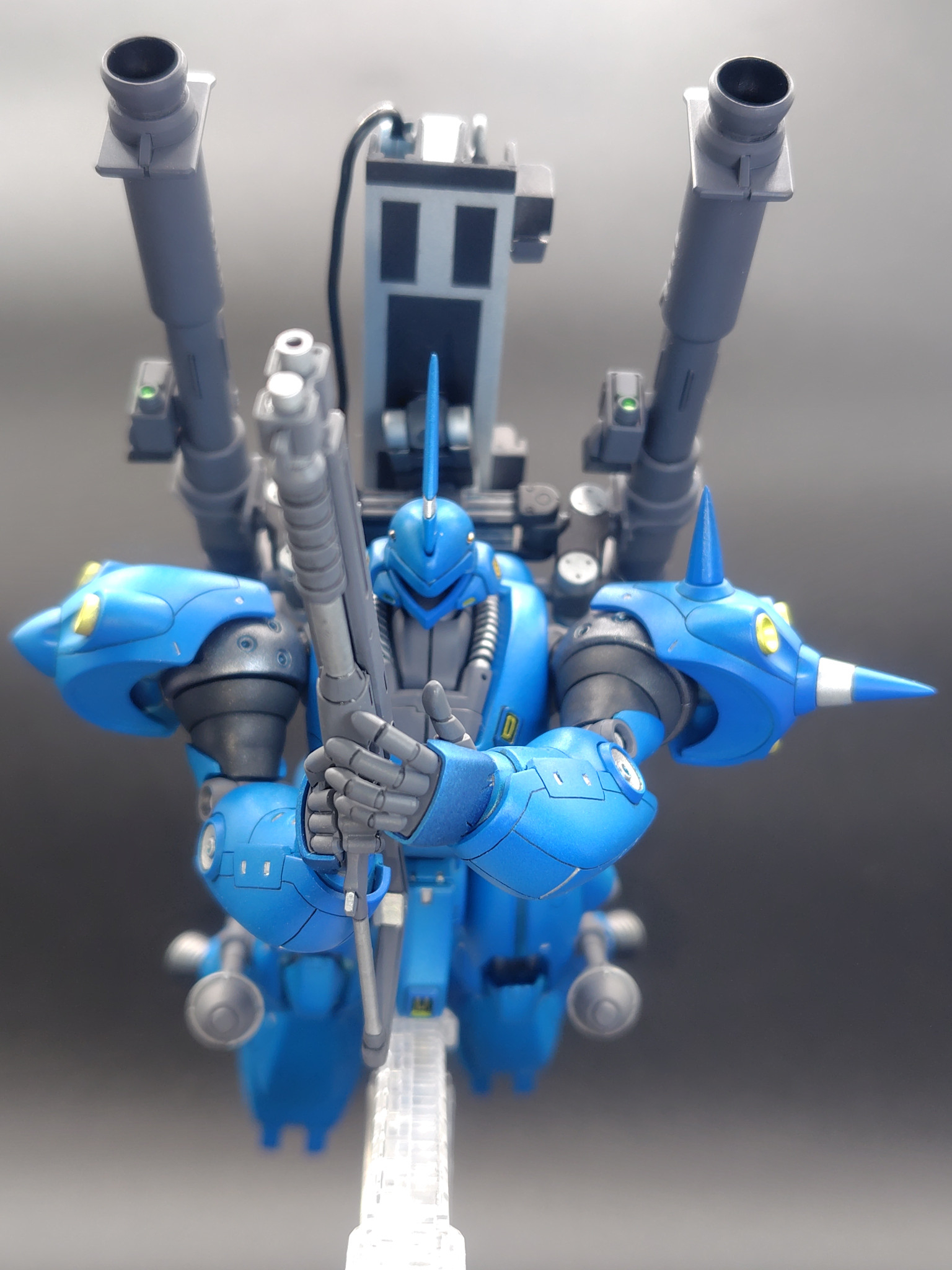 ショットガンを両脇に携帯出来るようにして、背面のチェーンマインラックの真ん中にビームサーベルを収納してるので、この素立ち状態でも付属武器を全て携行できてる状態です
