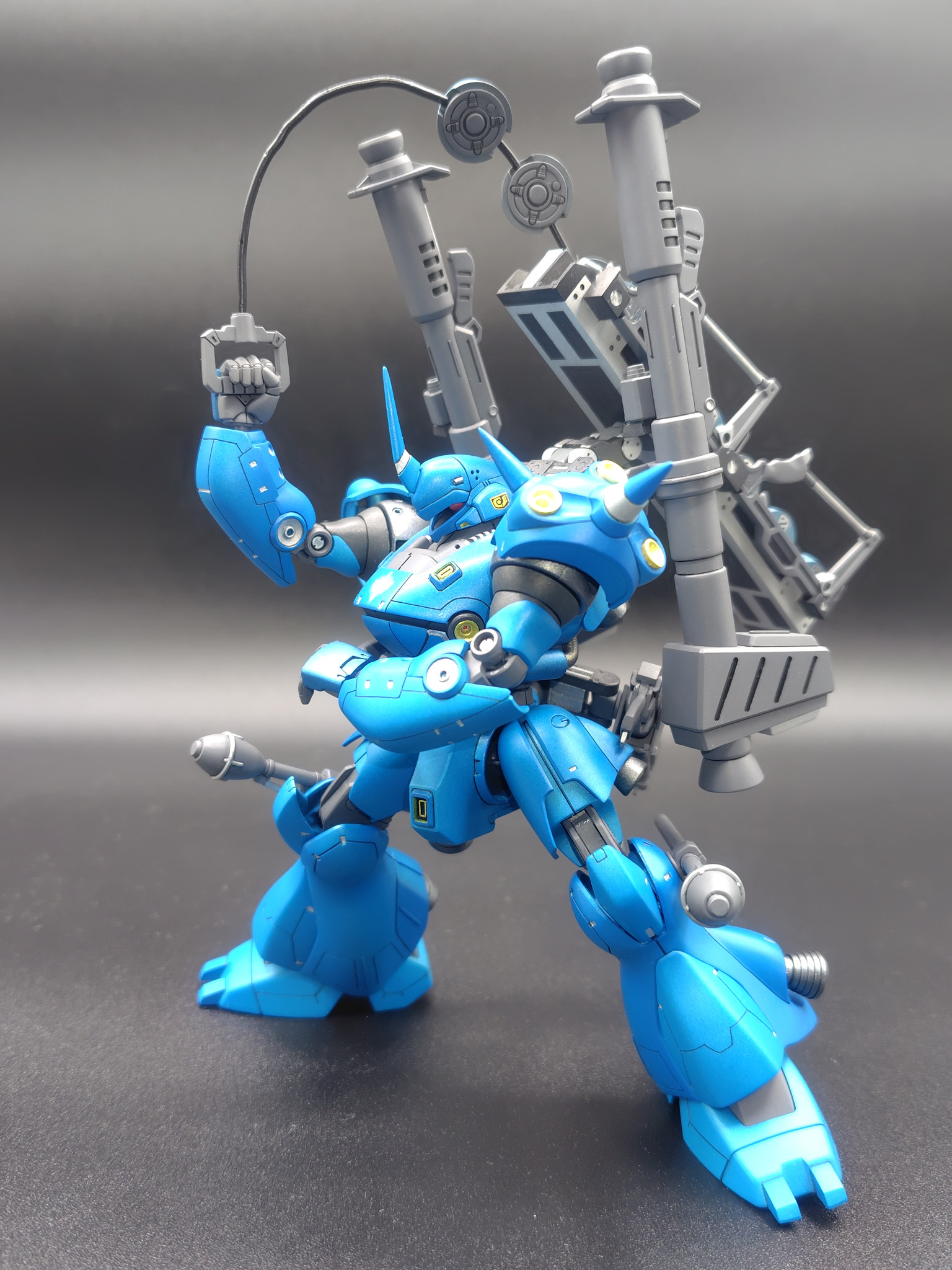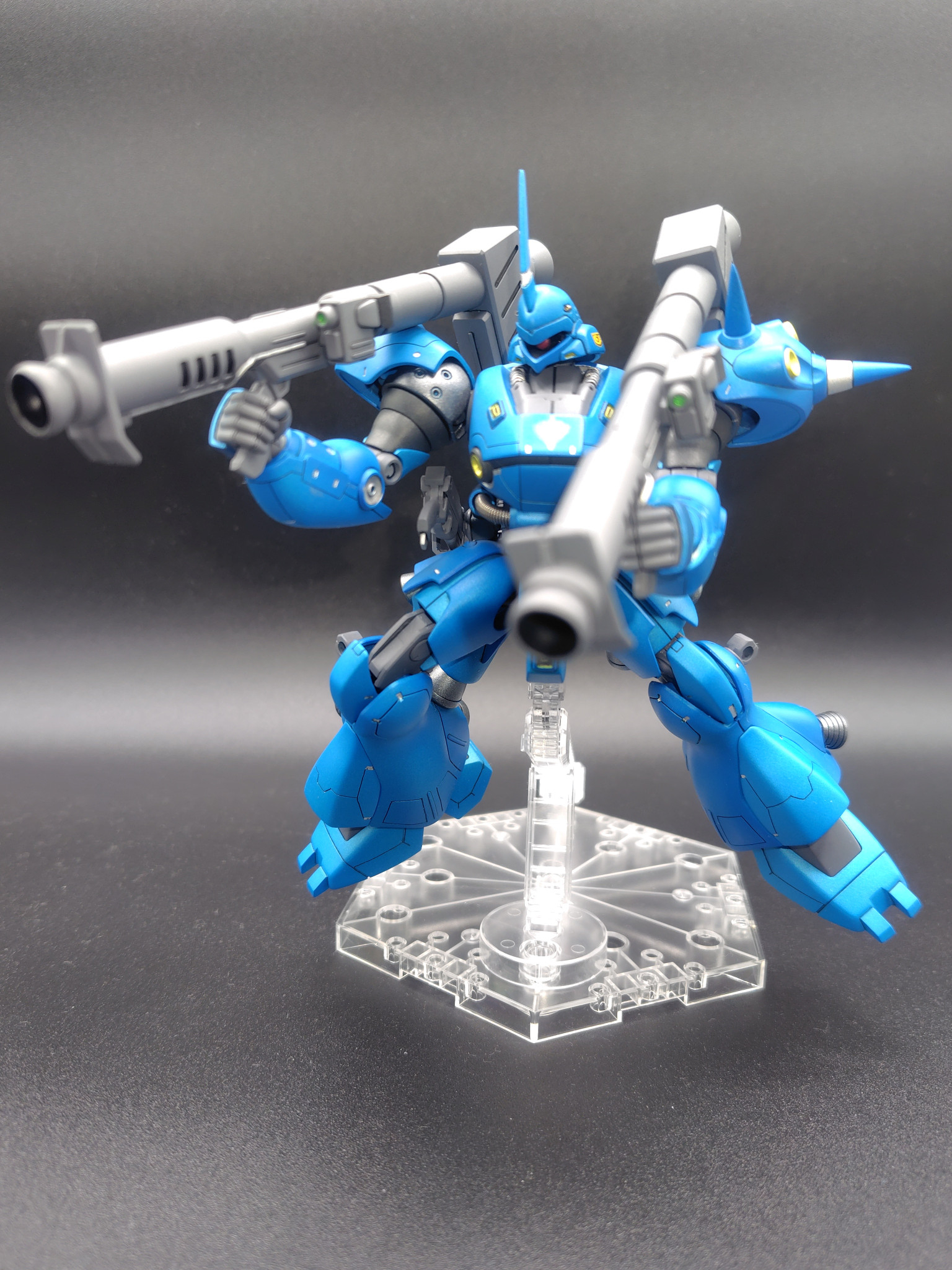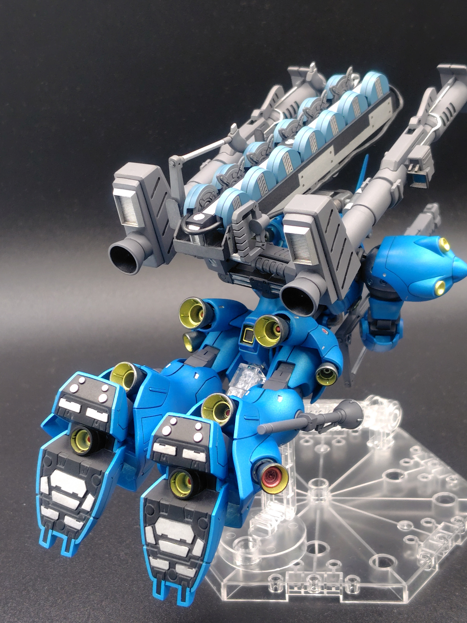 ショットガンを両脇に携帯出来るようにして、背面のチェーンマインラックの真ん中にビームサーベルを収納してるので、この素立ち状態でも付属武器を全て携行できてる状態です