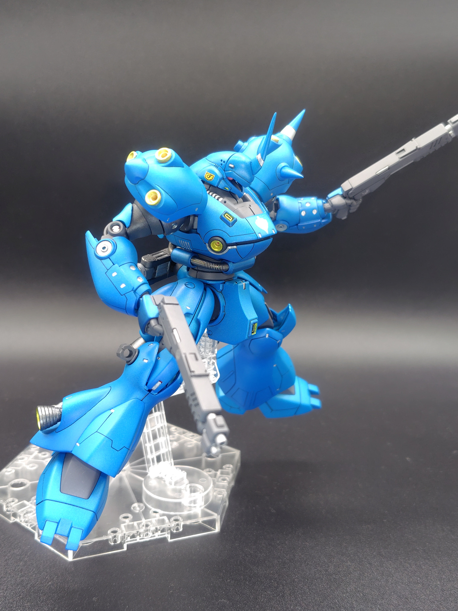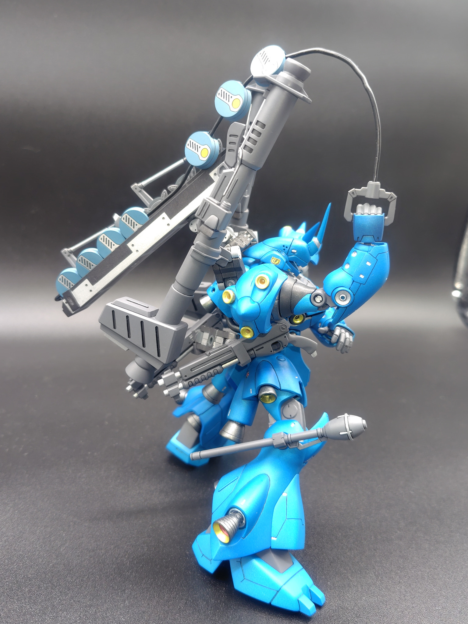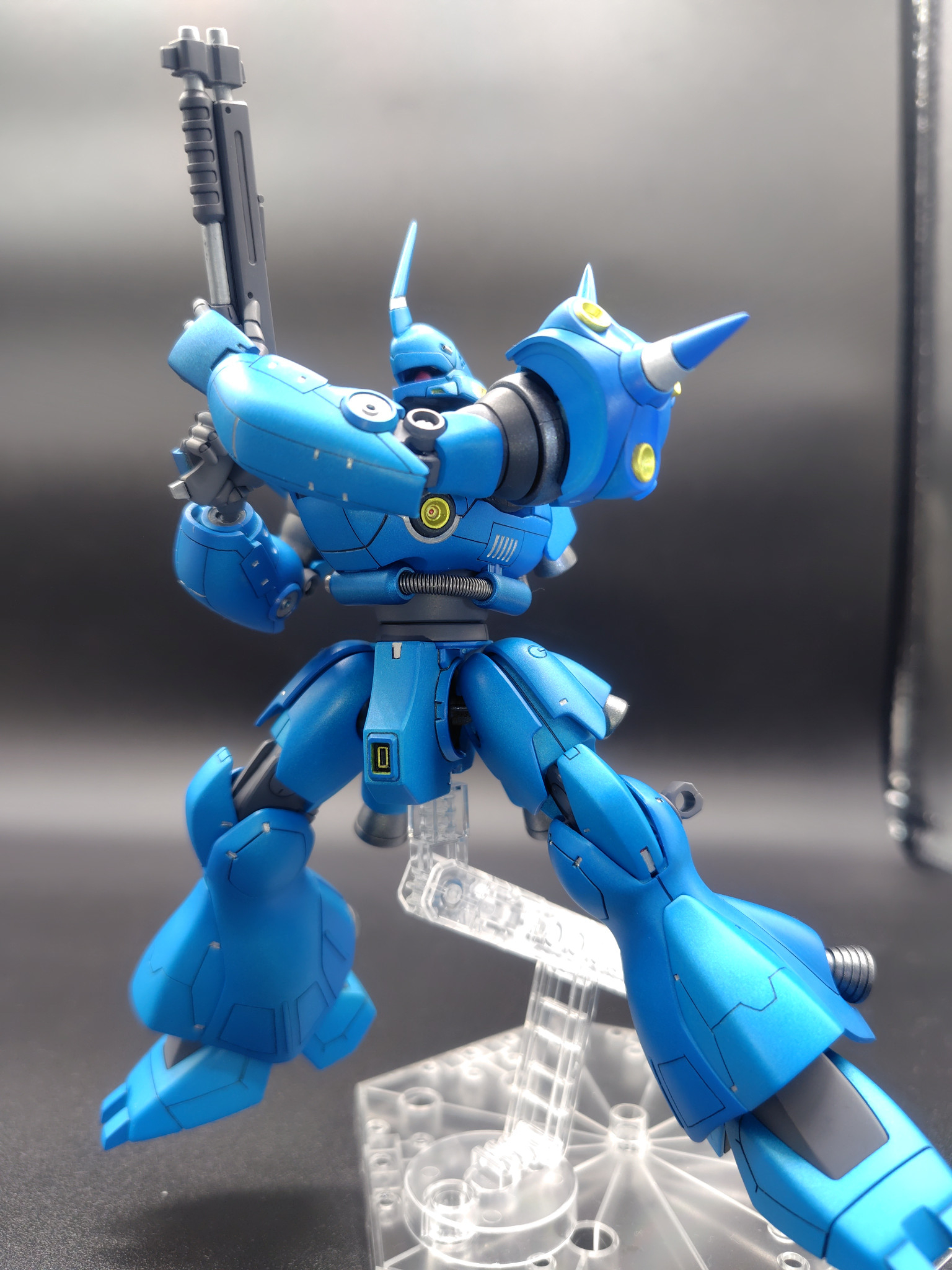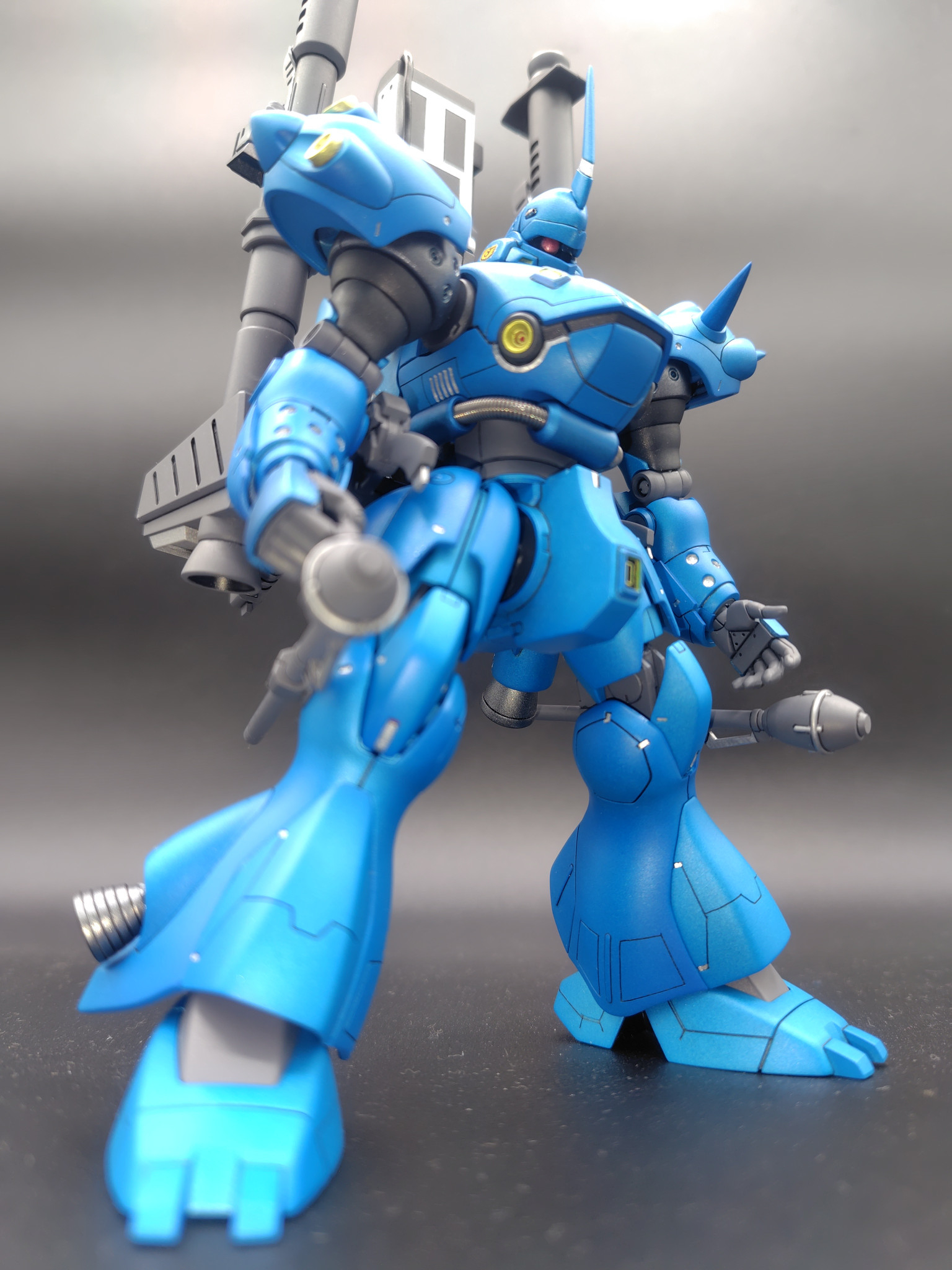 ショットガンを両脇に携帯出来るようにして、背面のチェーンマインラックの真ん中にビームサーベルを収納してるので、この素立ち状態でも付属武器を全て携行できてる状態です