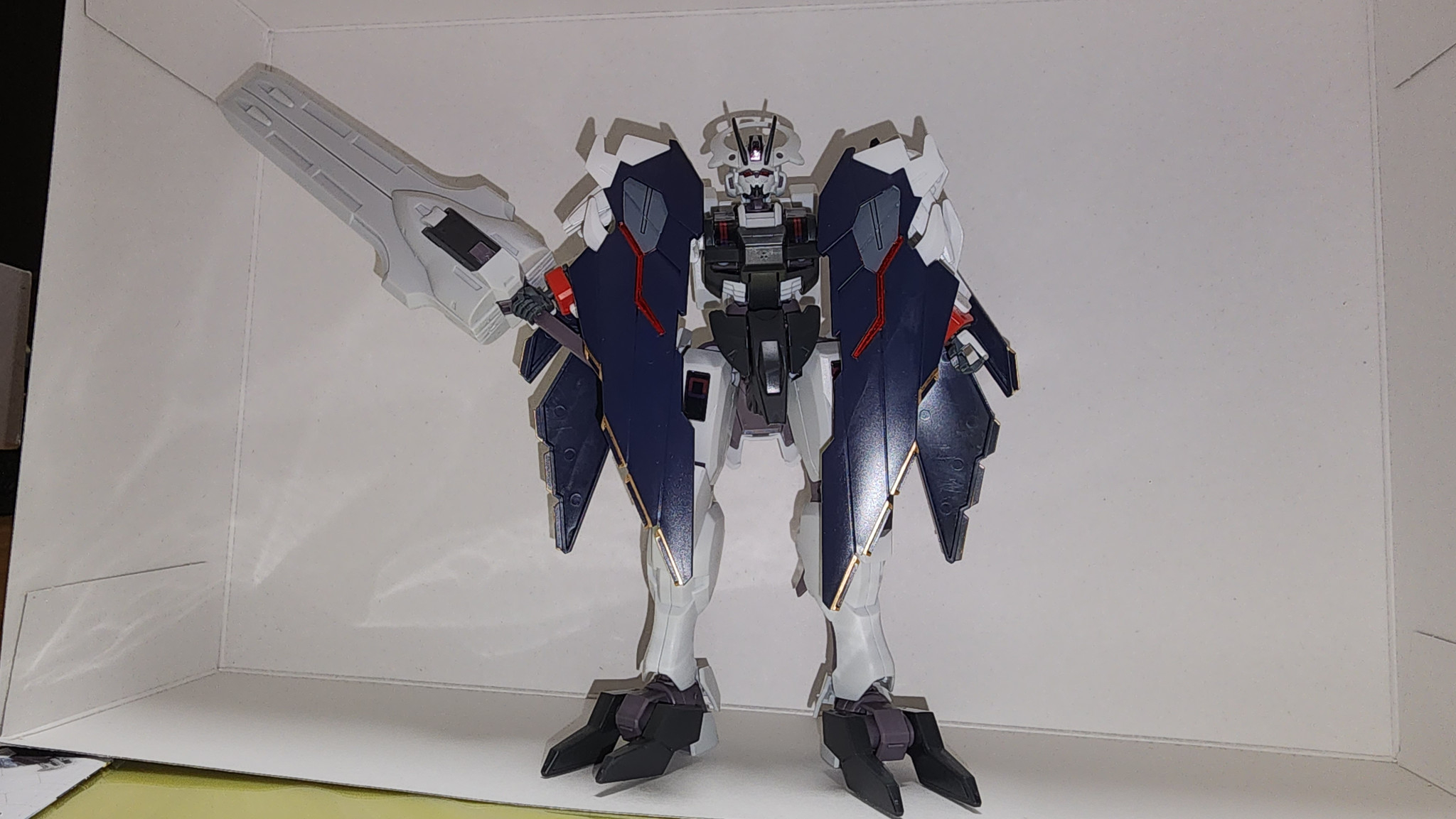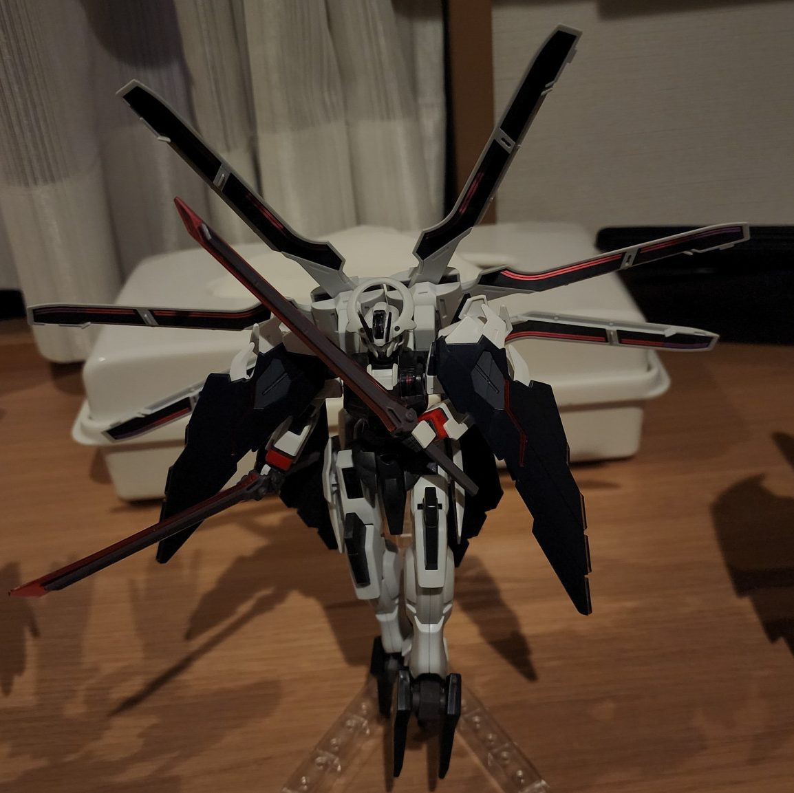 過去に夫から誕プレ出もらったフルクロスと自分で買ったシュバルゼッテを組み合わせたら「コレ絶対カッコイイ気がする…」と思い立って2機とも作ってからシュバルゼッテとフルクロスの腕と肩を組み合わせて脚を裏返してカラス感を増し増しにした作品です